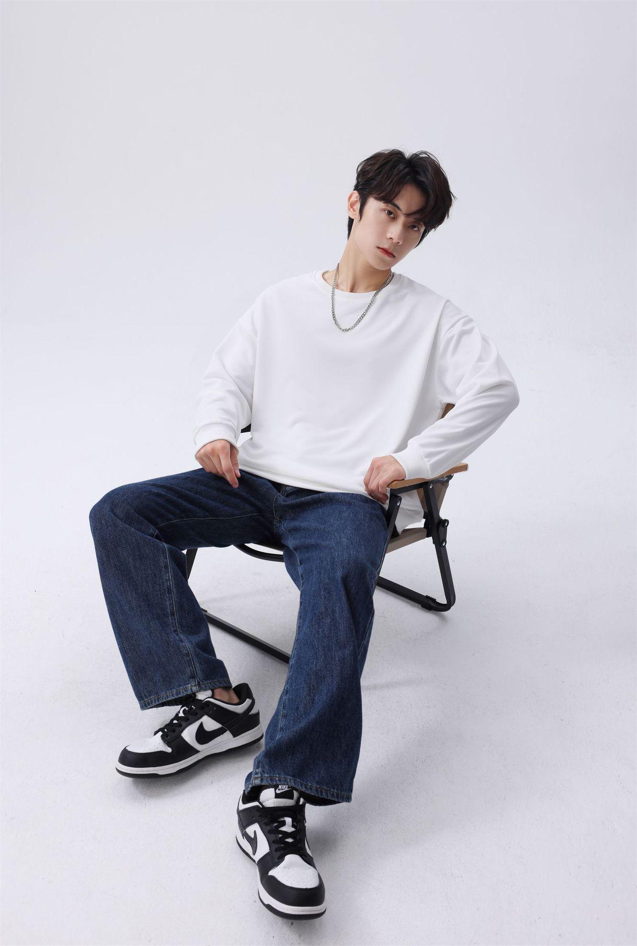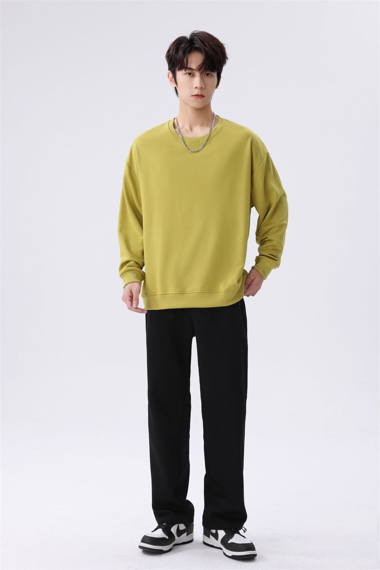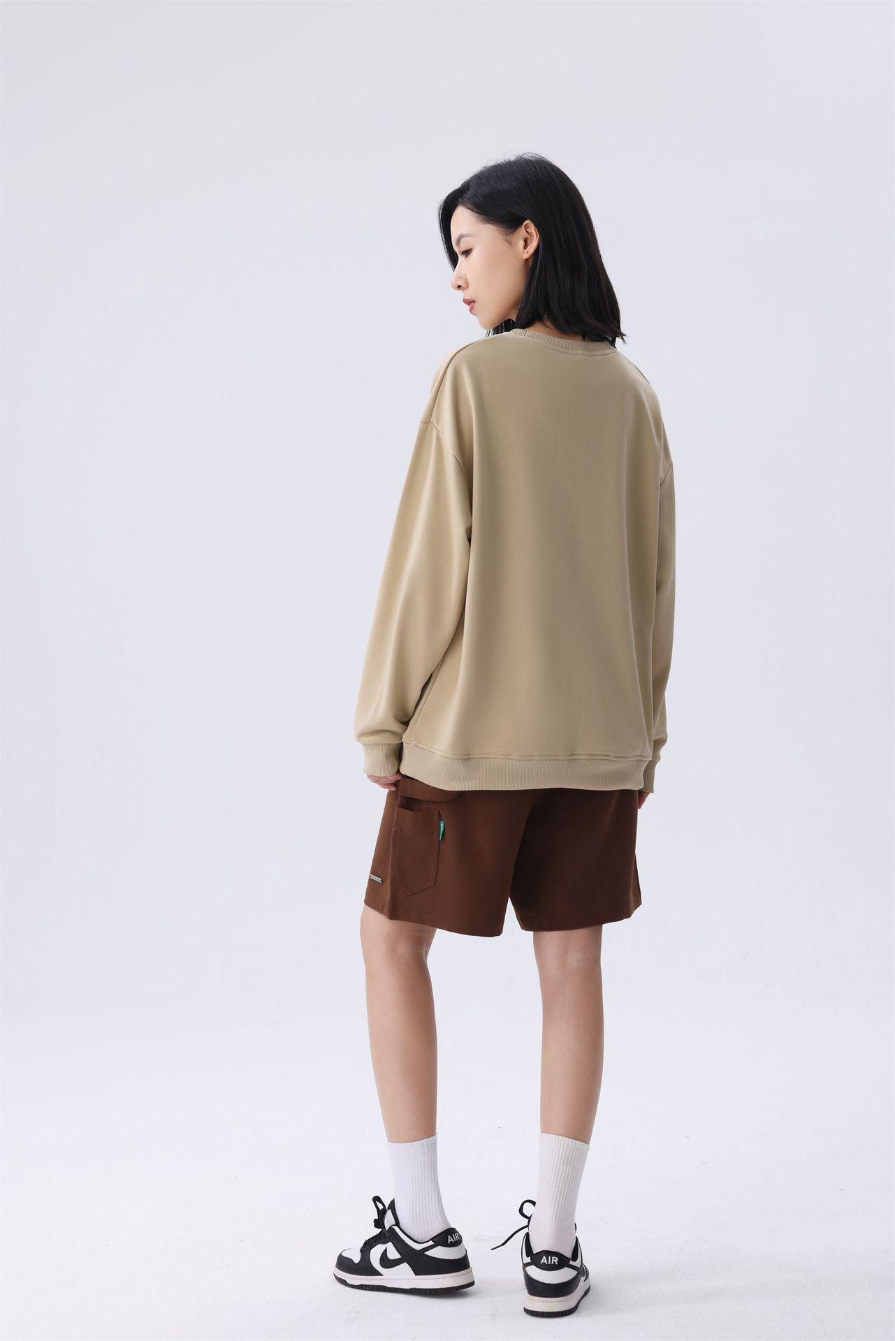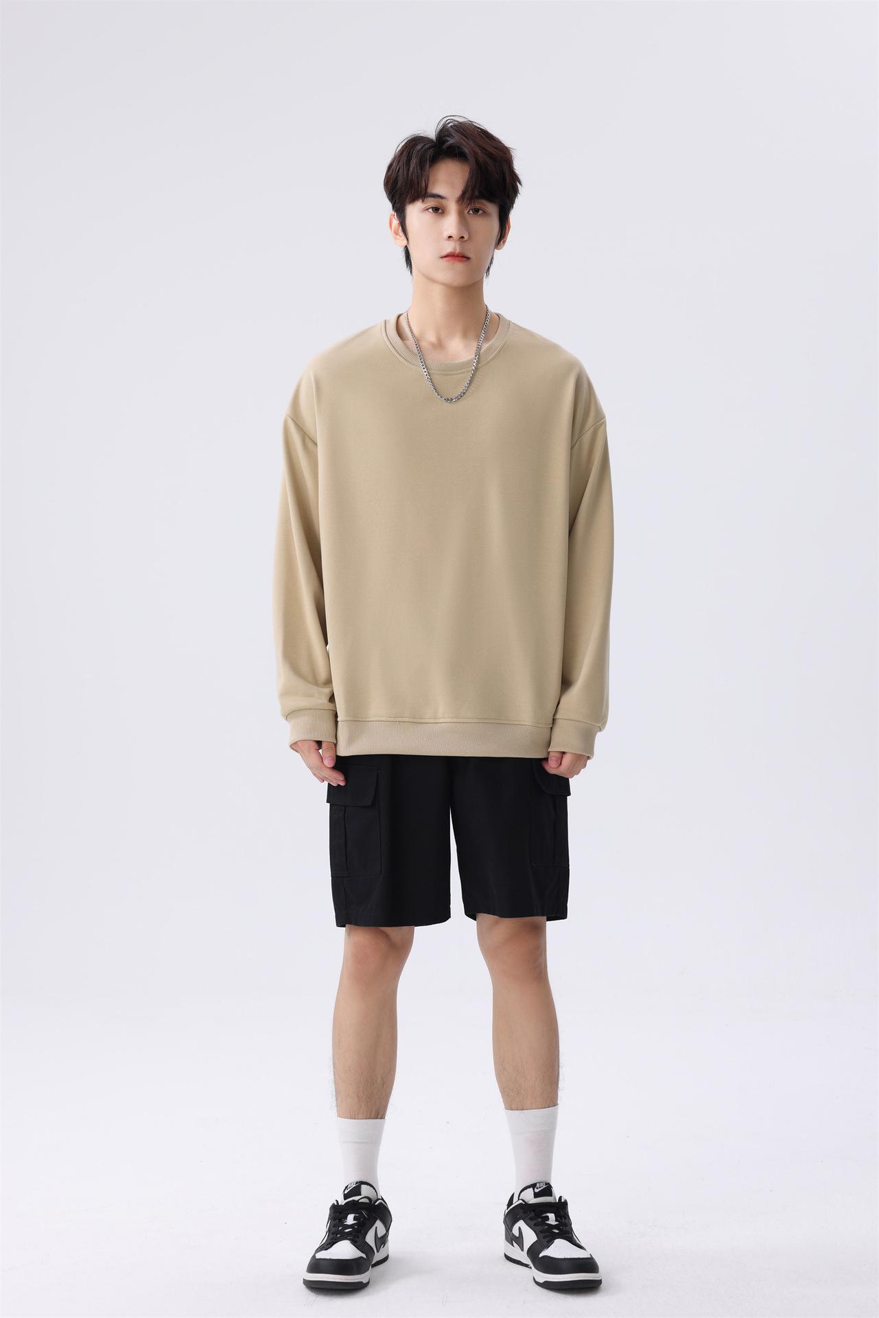 Suéter de rizo de cuello redondo hecho a medida 280g hombro suelto personalizado acolchado jersey manga larga suéter logo