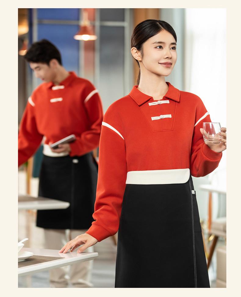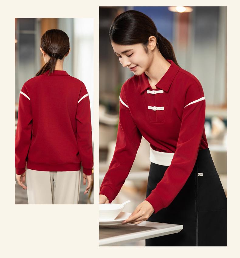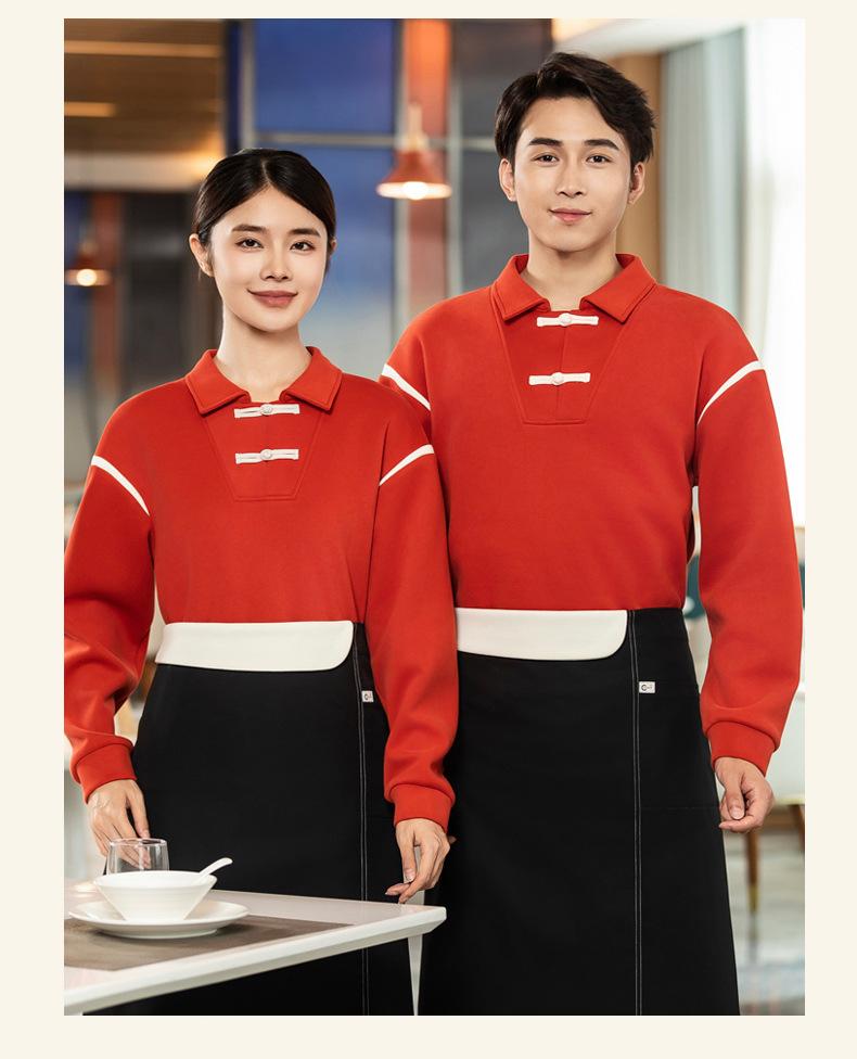 Restaurante Chino Casa de Té Camarero Ropa de Trabajo Sudadera Manga Larga Restaurante de Olla Caliente Uniformes de Trabajo de Otoño e Invierno para Hombre y Mujer Personalizados