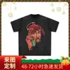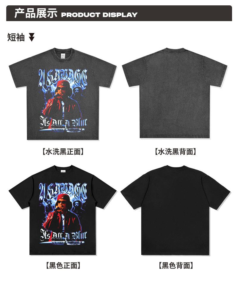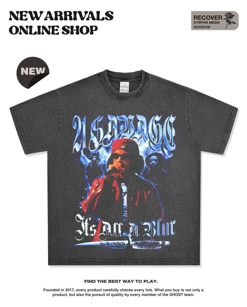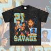 Camiseta de Manga Corta Estampada 21 Savage Hip-Hop Americano Retro Transfronterizo Versátil High Street Pesada Cuello Redondo Sudadera con Capucha