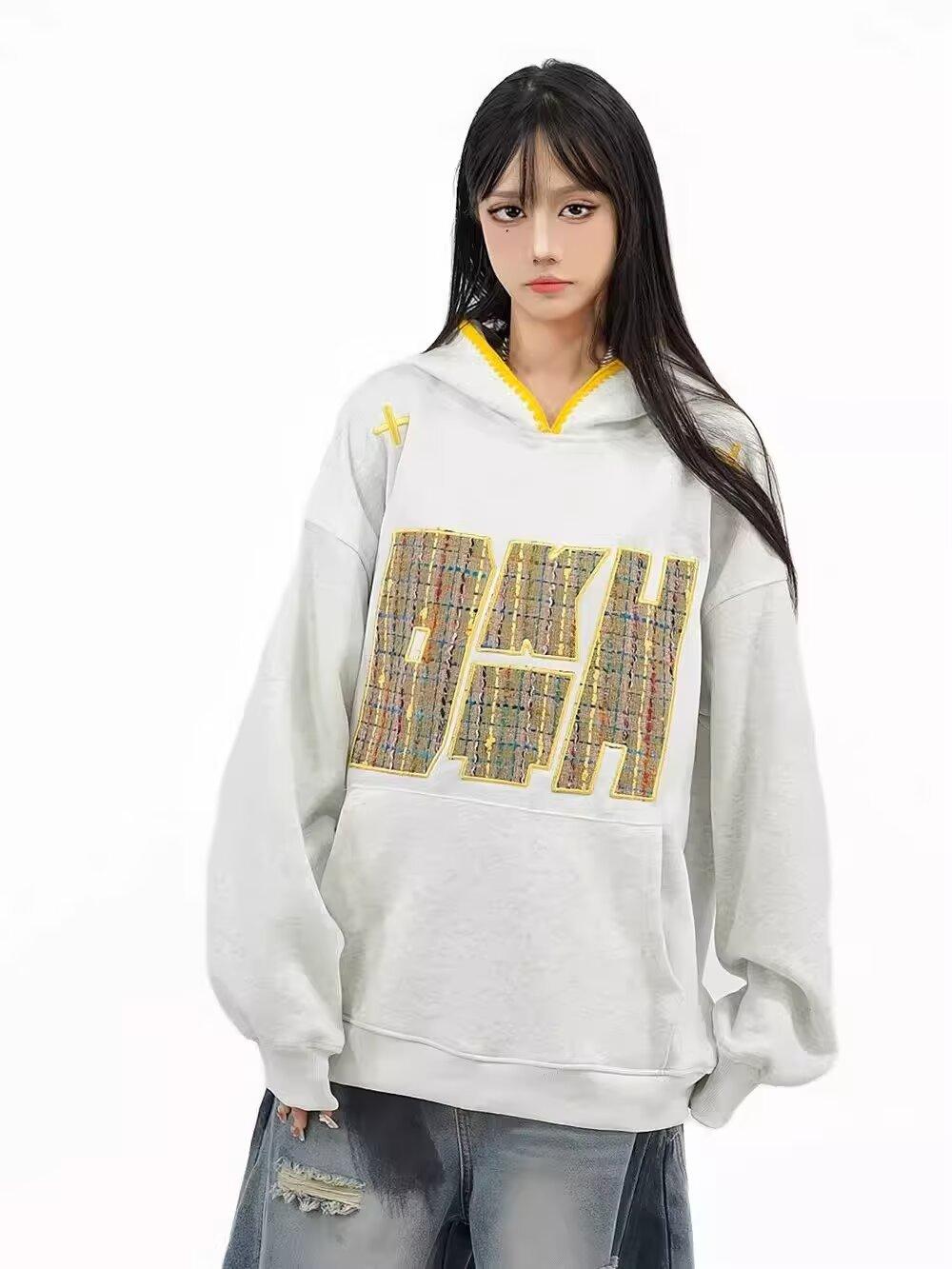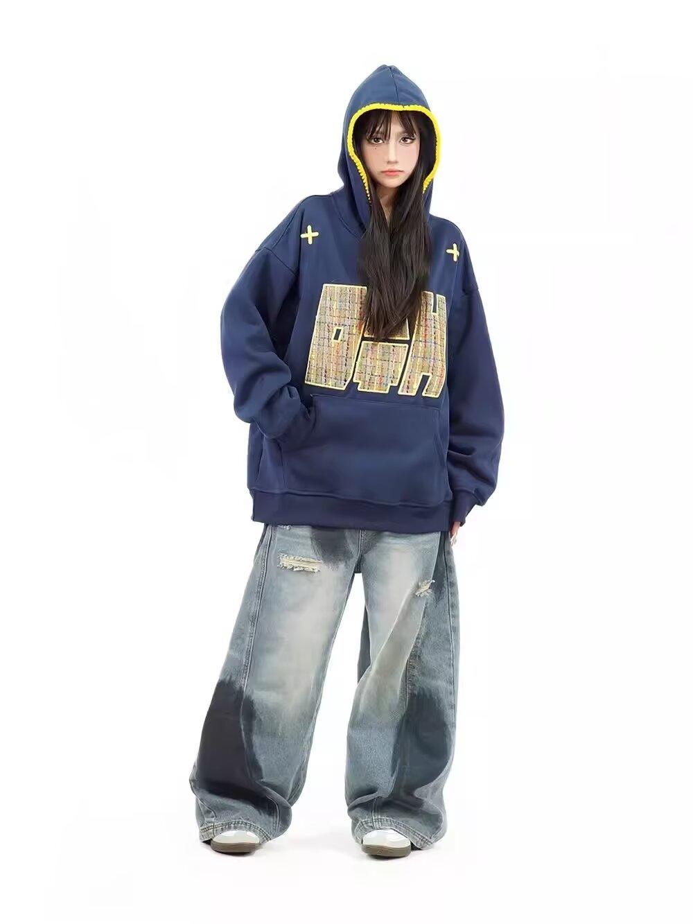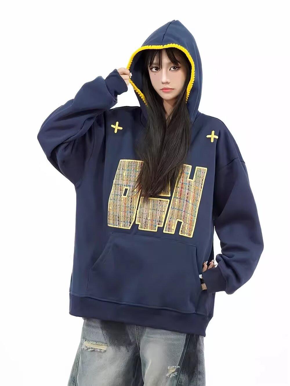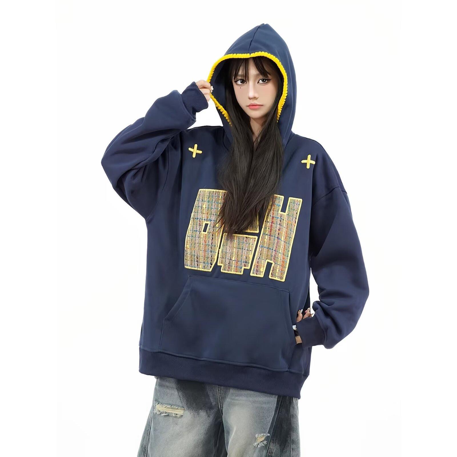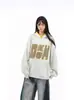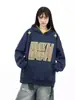 Sudadera con capucha bordada retro americana para mujer, otoño e invierno, hip-hop, holgada para pareja, versátil, top con capucha holgado y entallado