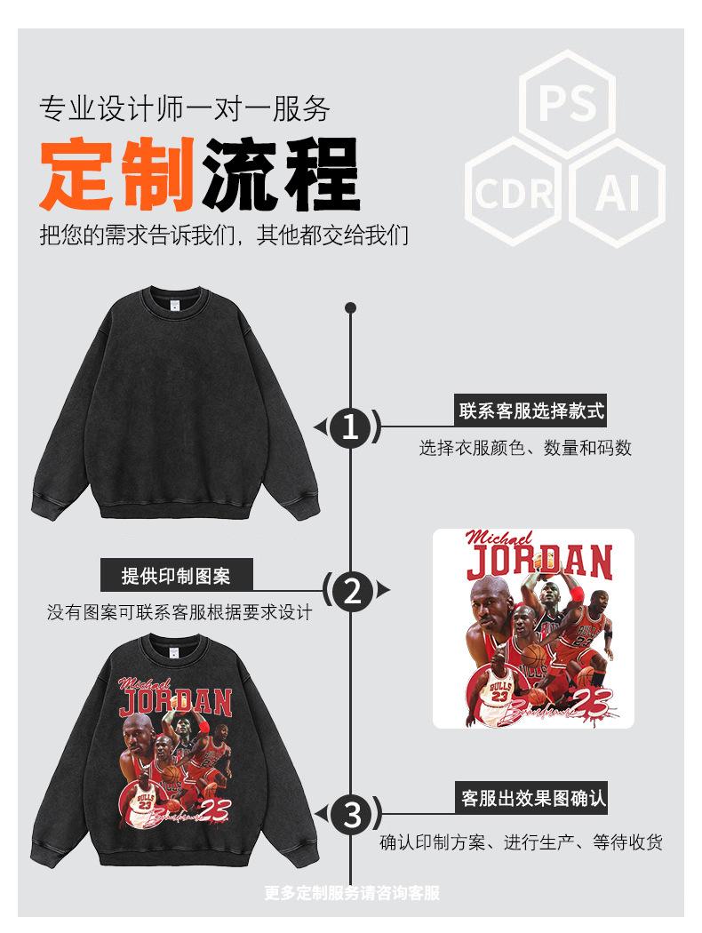 Sudaderas Vintage Transfronterizas de Alta Calidad Lavadas y Desgastadas con Estampados para Hombre y Mujer Sudaderas Casuales Americanas de Hip-Hop