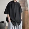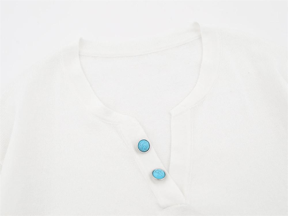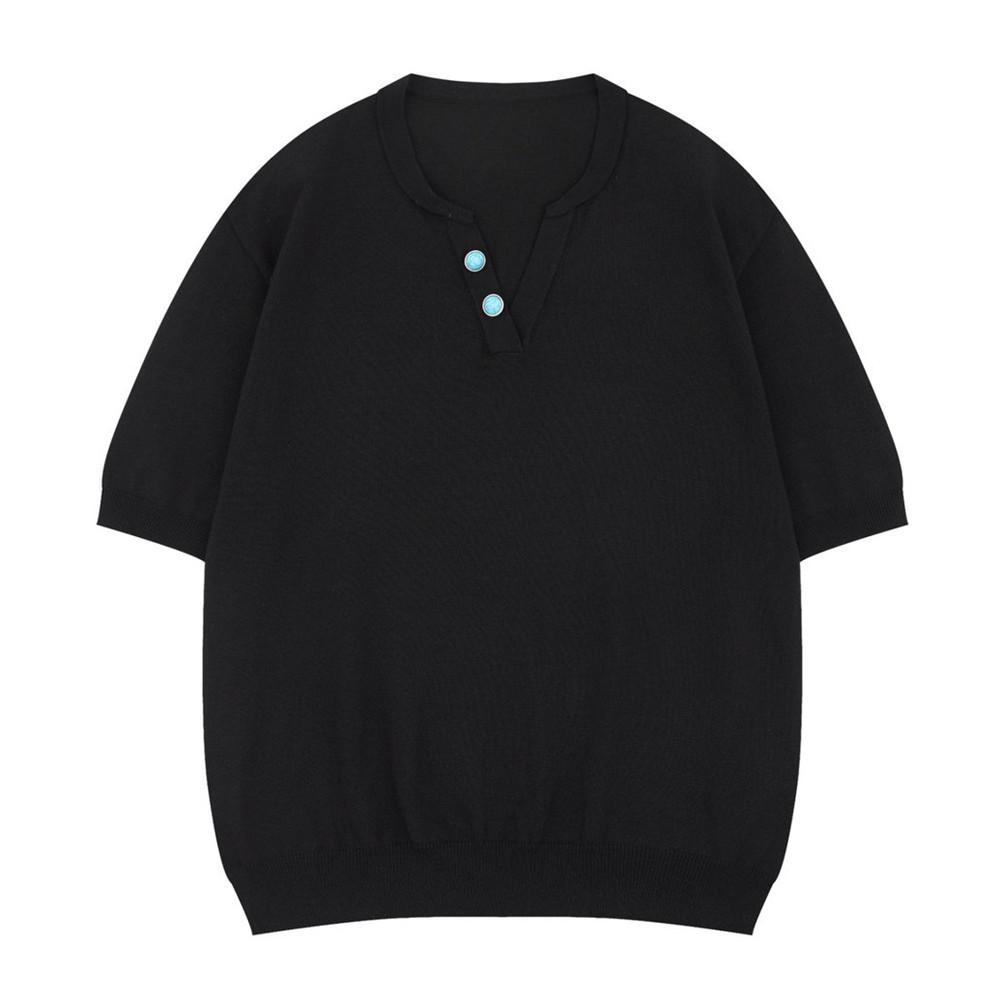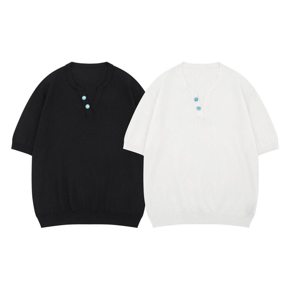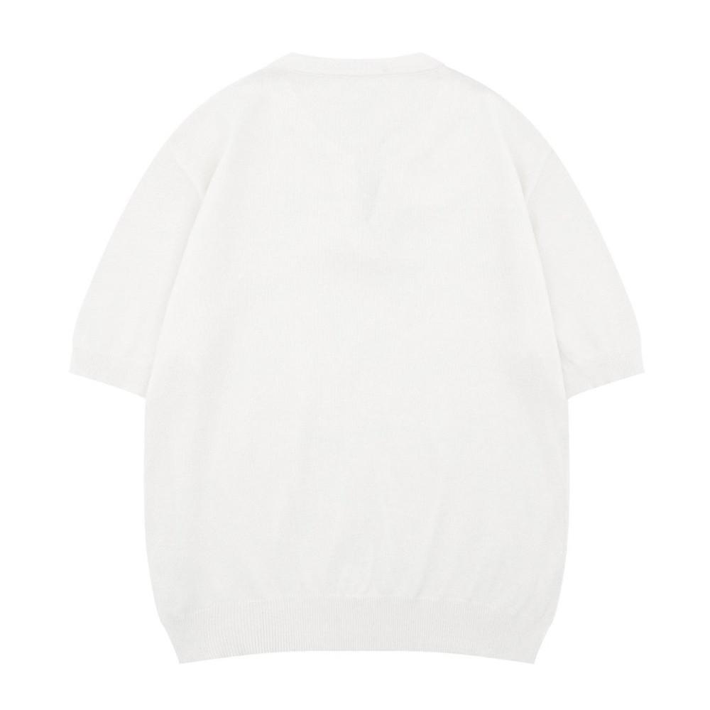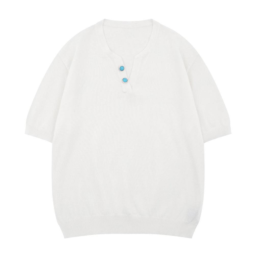 Camiseta de Punto Jacquard de Color Sólido Holgada con Cuello en V y Manga Corta Verano para Hombre Marca Trendy Europea y Americana Sencilla Versátil Top Casual