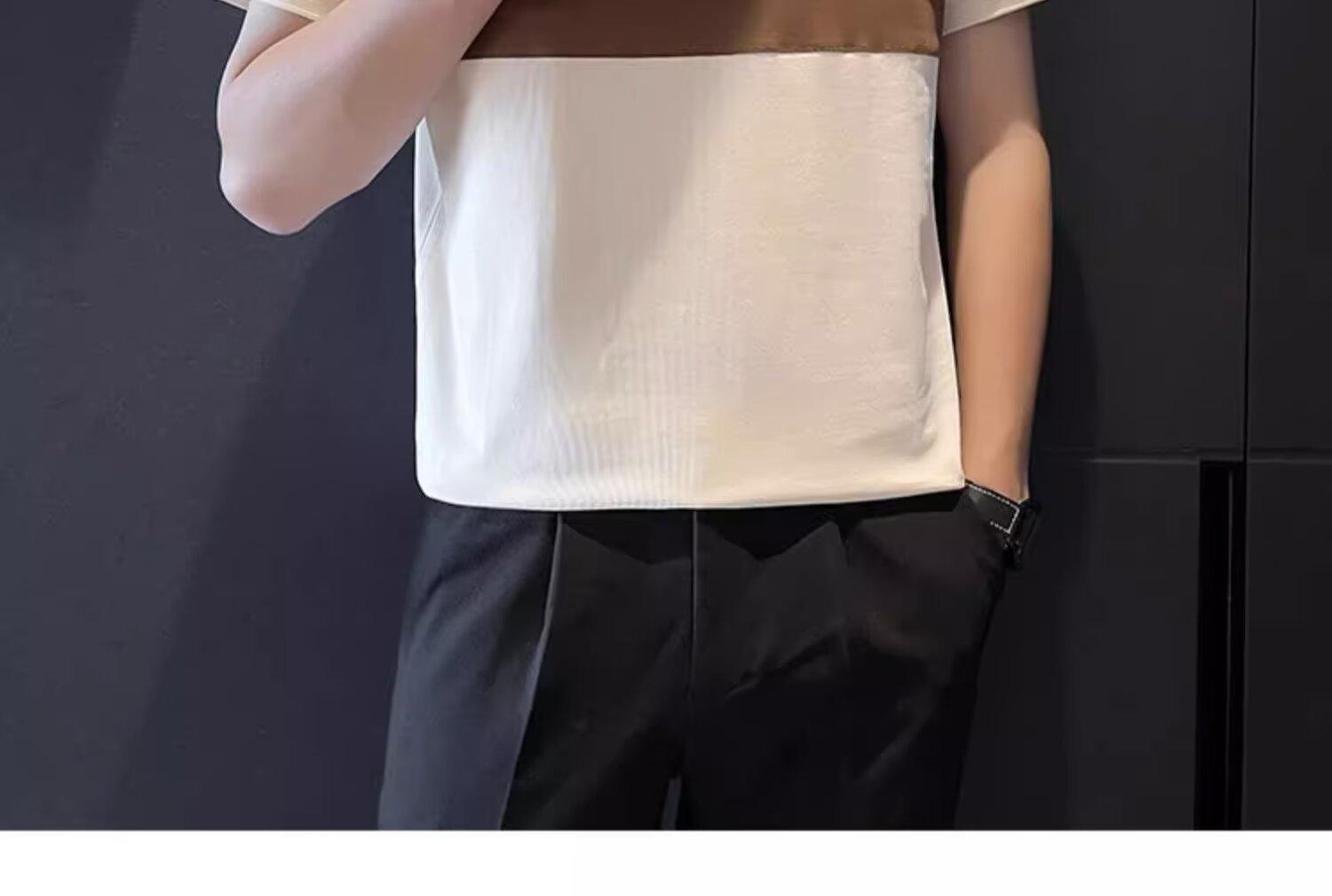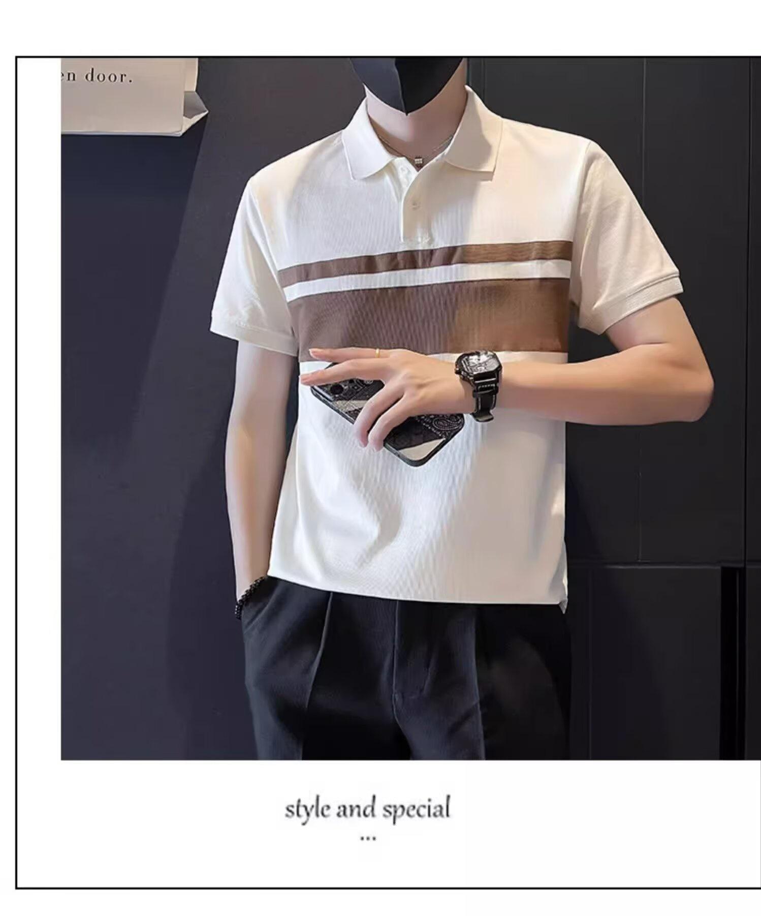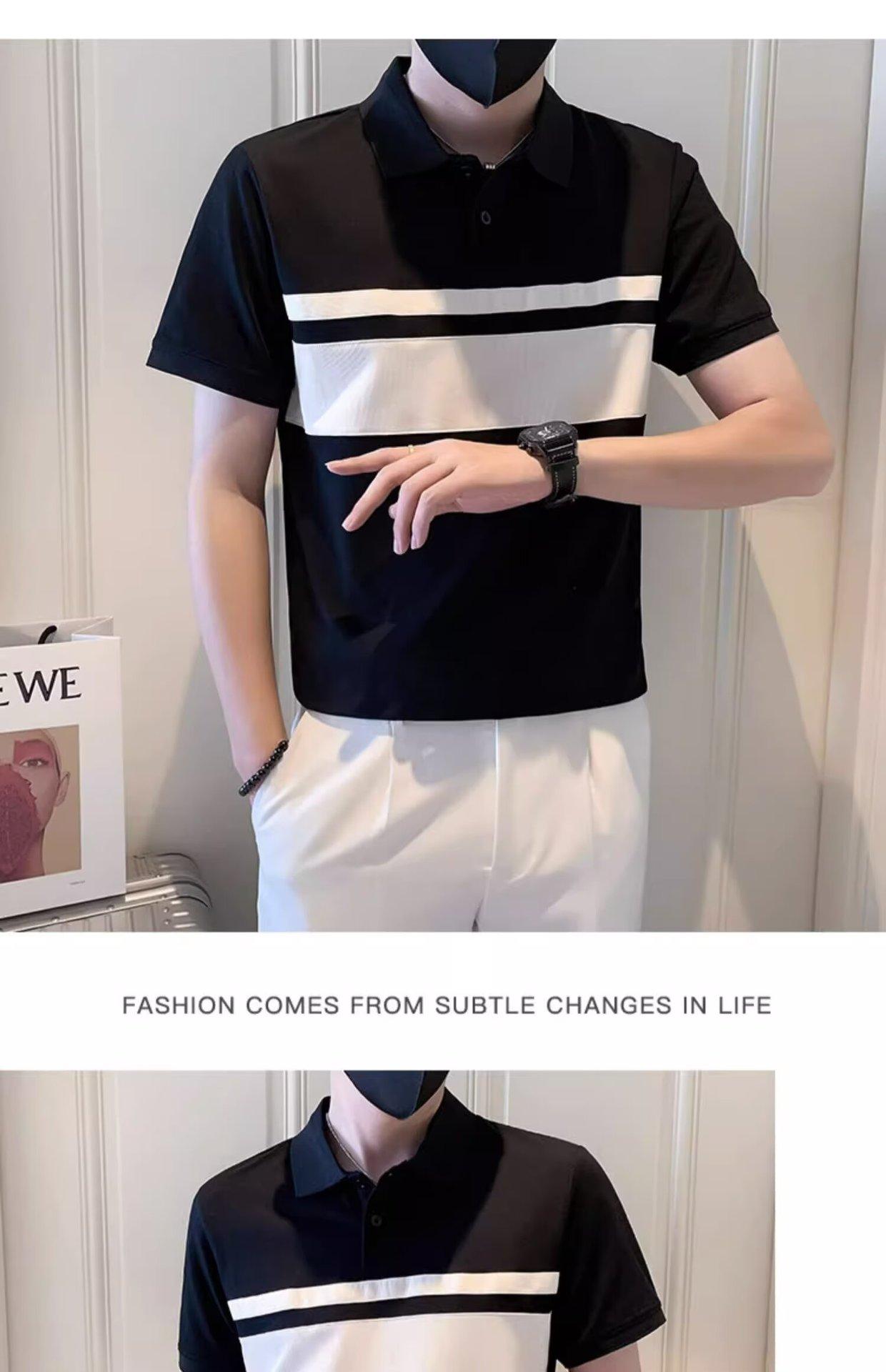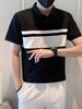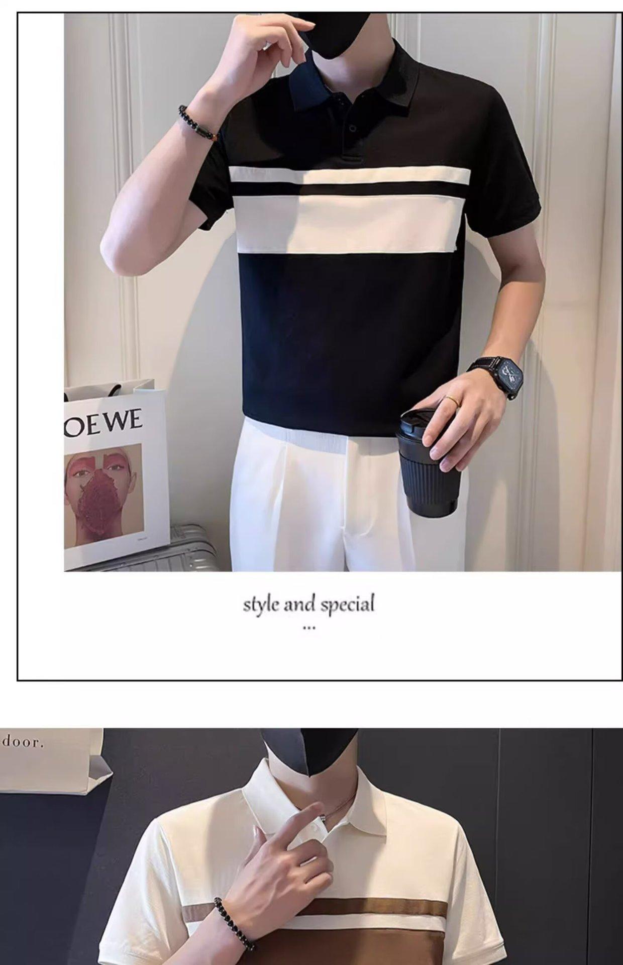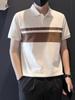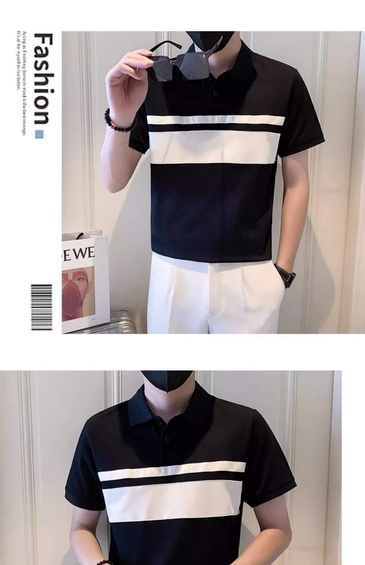 2025 Verano Camiseta Polo de Rayas con Solapa para Hombre Holgada Elástica Casual Combinación de Colores Manga Corta Juvenil Simple