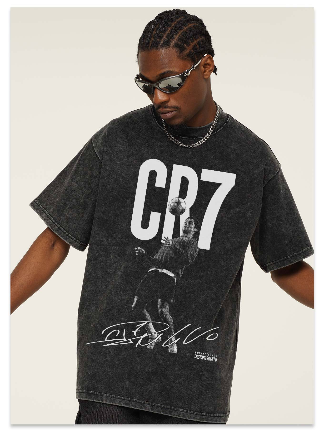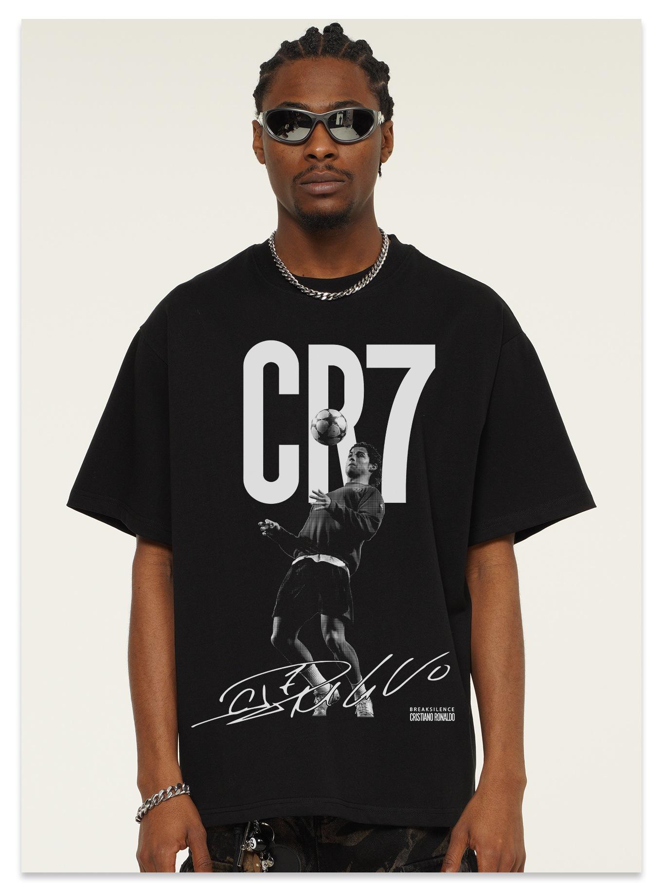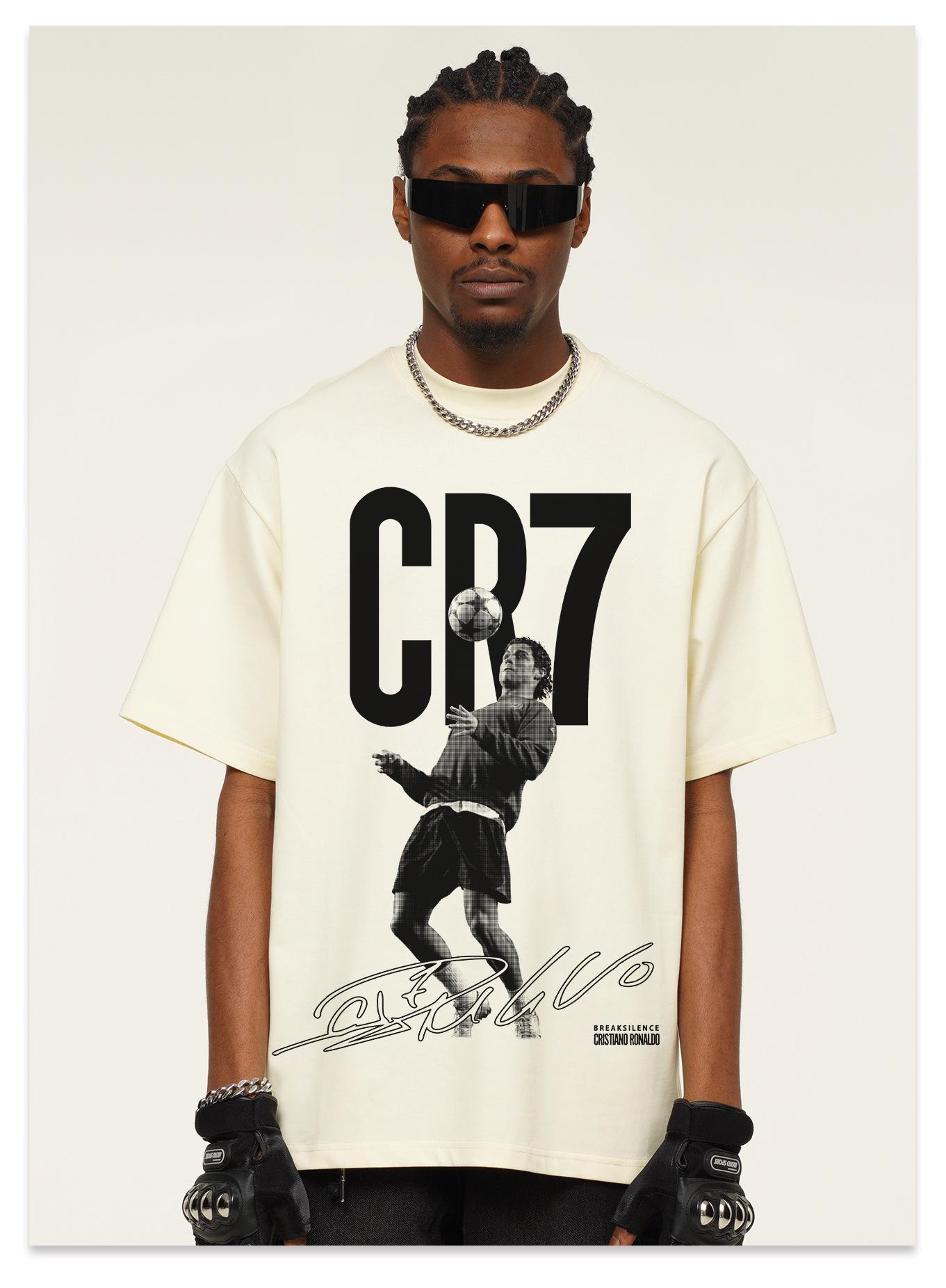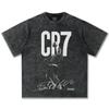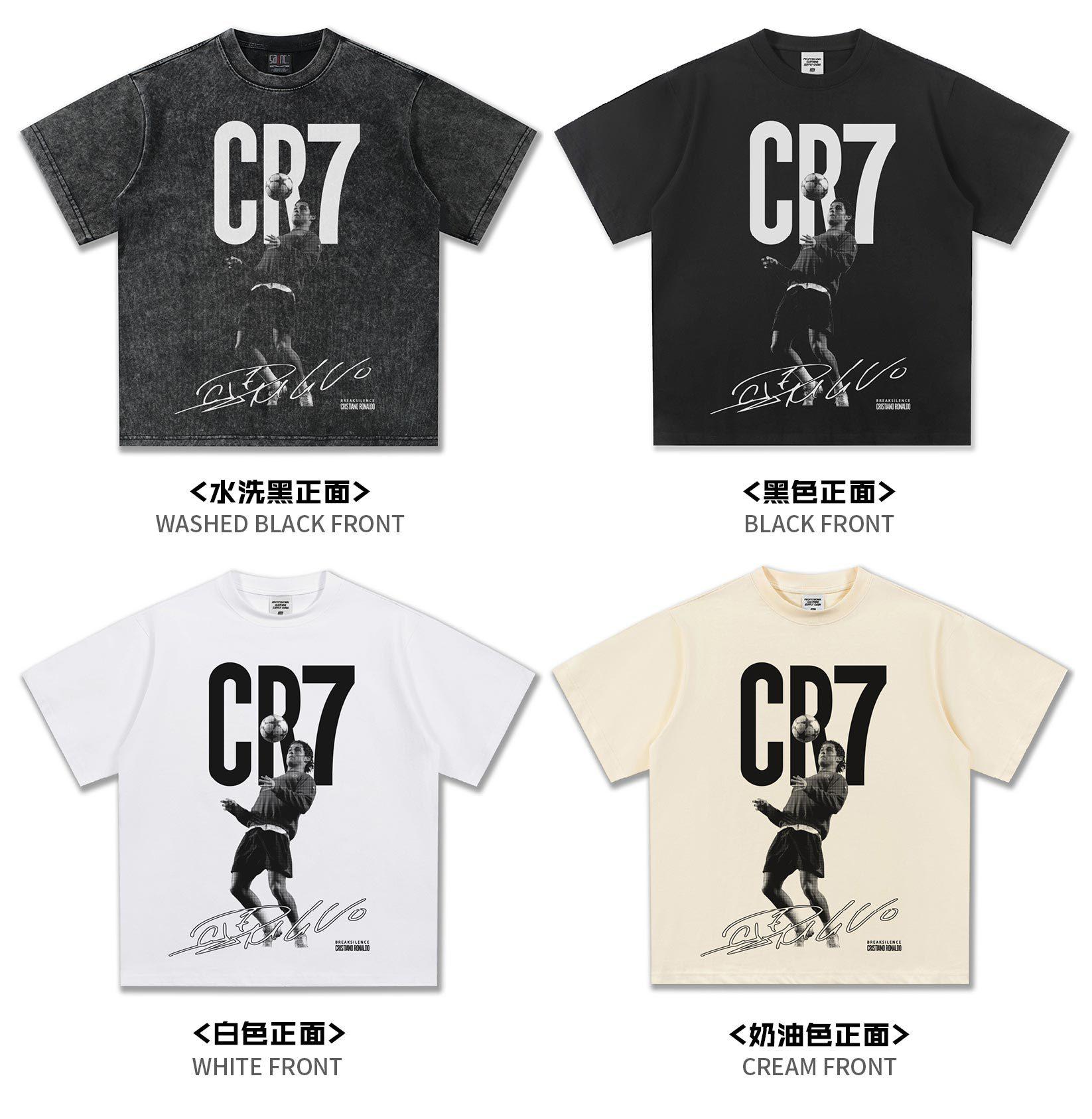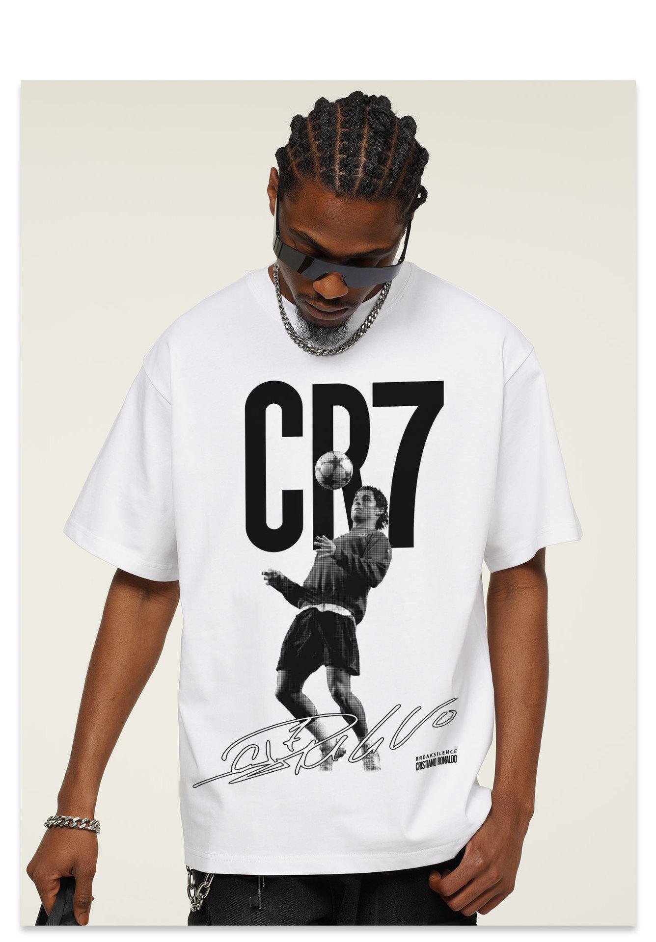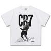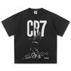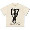 2025 Transfronterizo CR7 Sueño Fútbol vintage Americano Pesado Manga Corta Hombre Estampado Inyección Directa Algodón Puro Blanco Camiseta