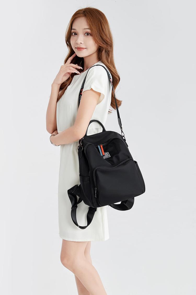 Mochila de un solo hombro y de doble hombro, Bolso de viaje para mujer, Mochila ligera de gran capacidad, Nailon de cuero genuino, Bolso escolar versátil