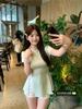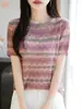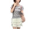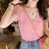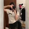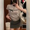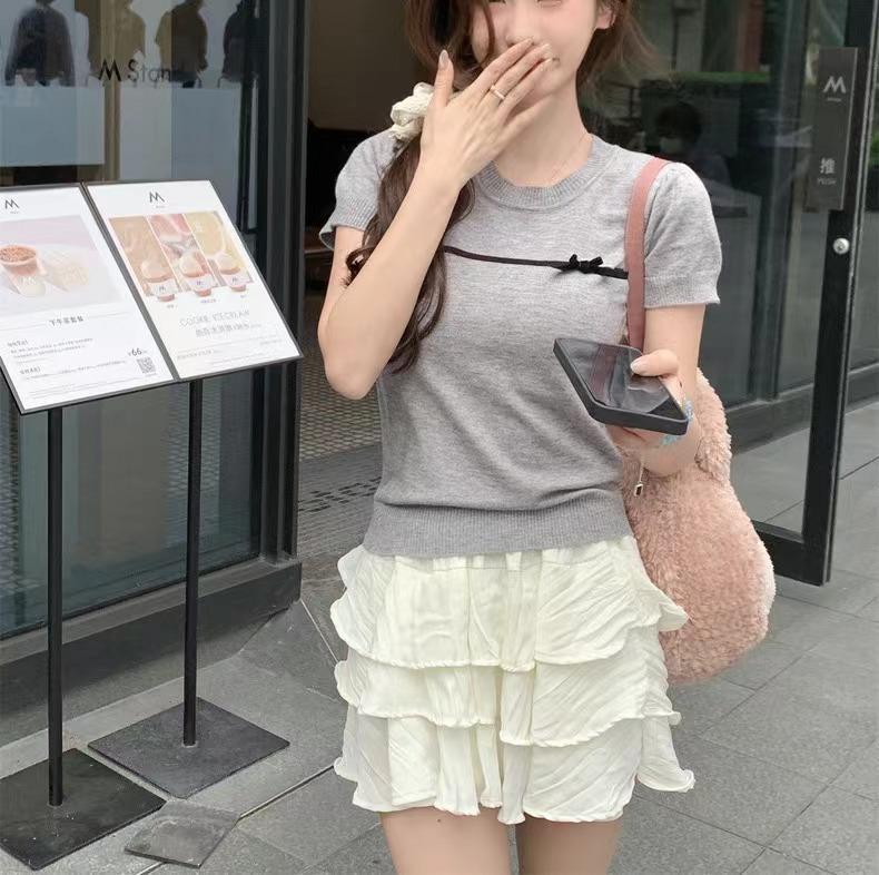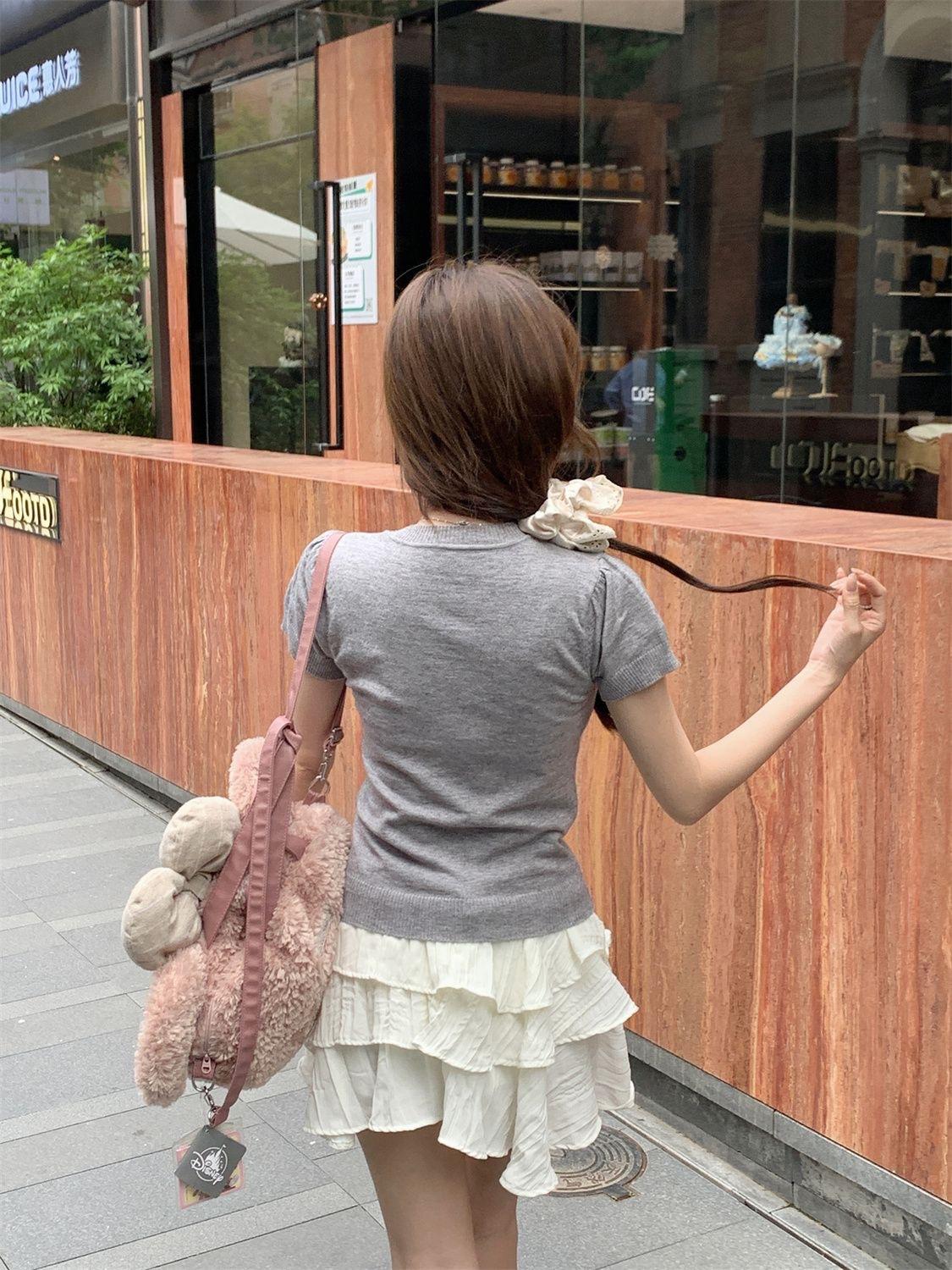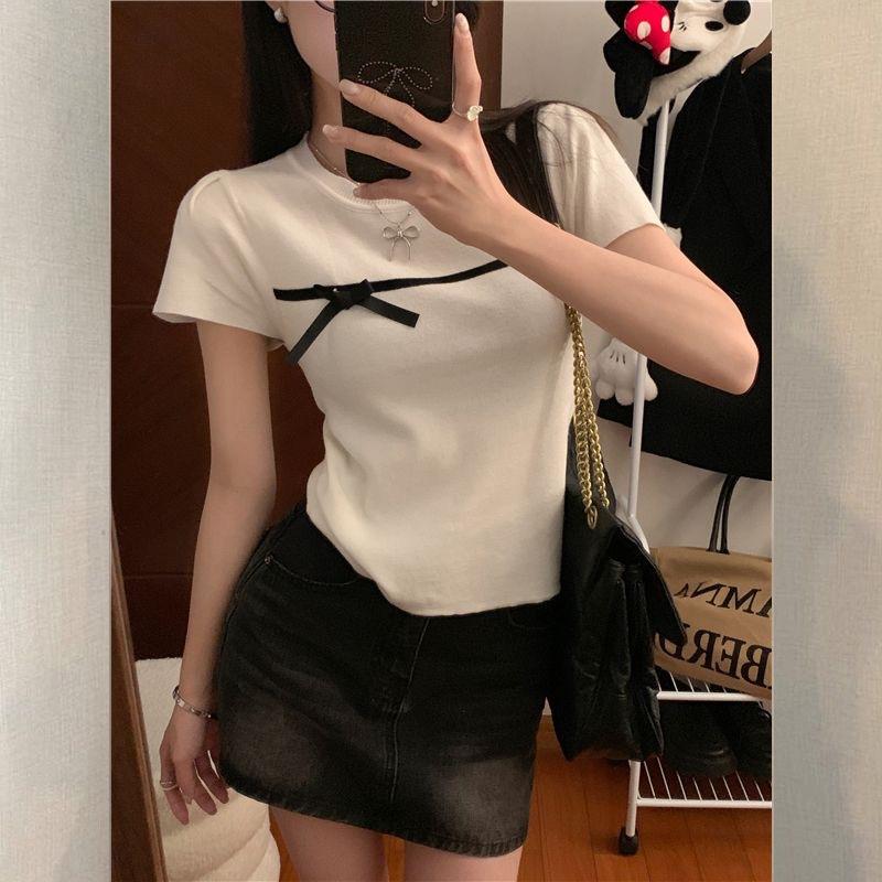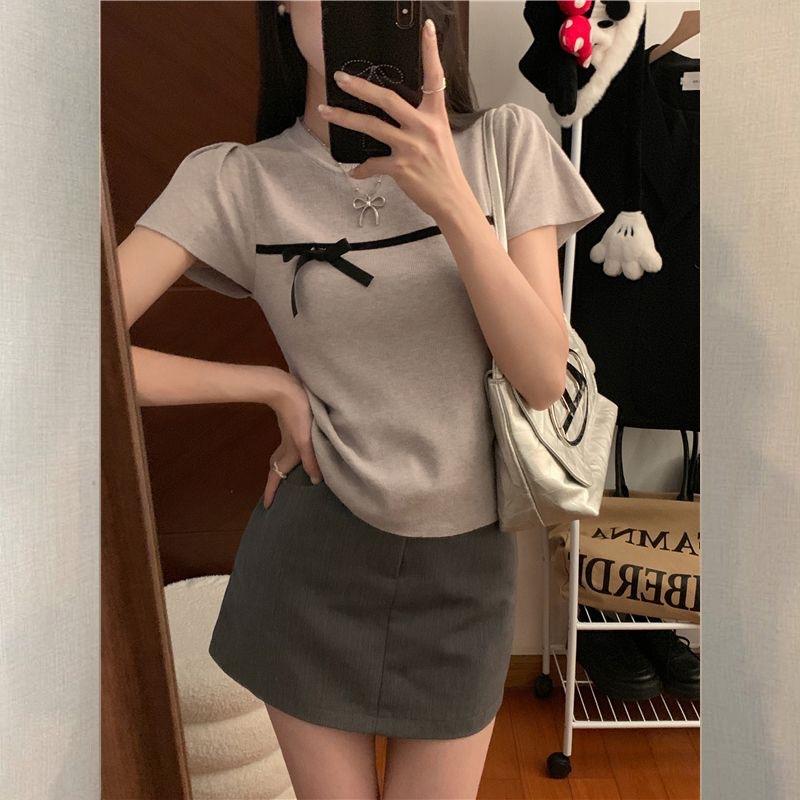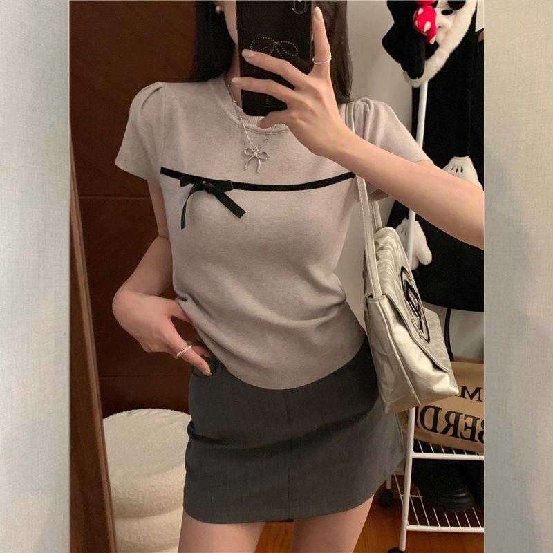 Diseño de Estilo Suave Nicho Manga Corta Abullonada Camiseta de Punto Corta Adelgazante de Otoño para Mujer