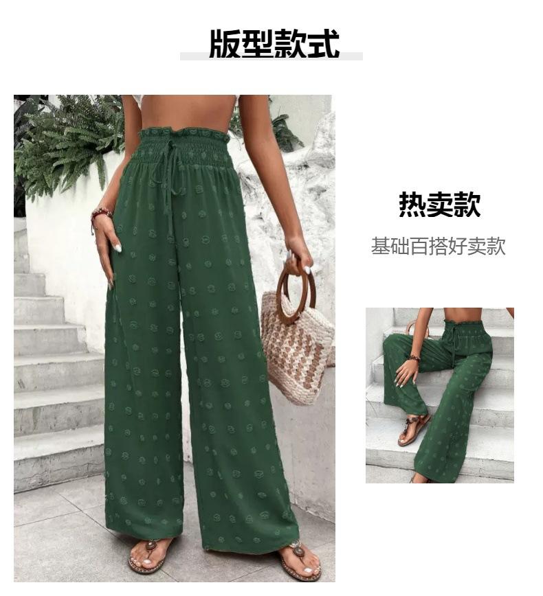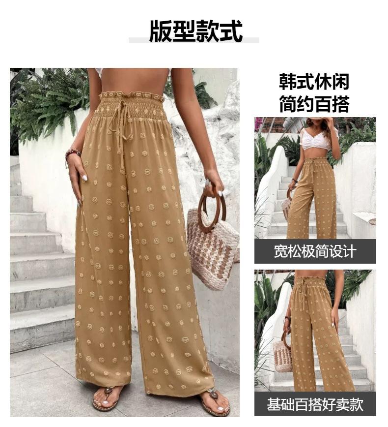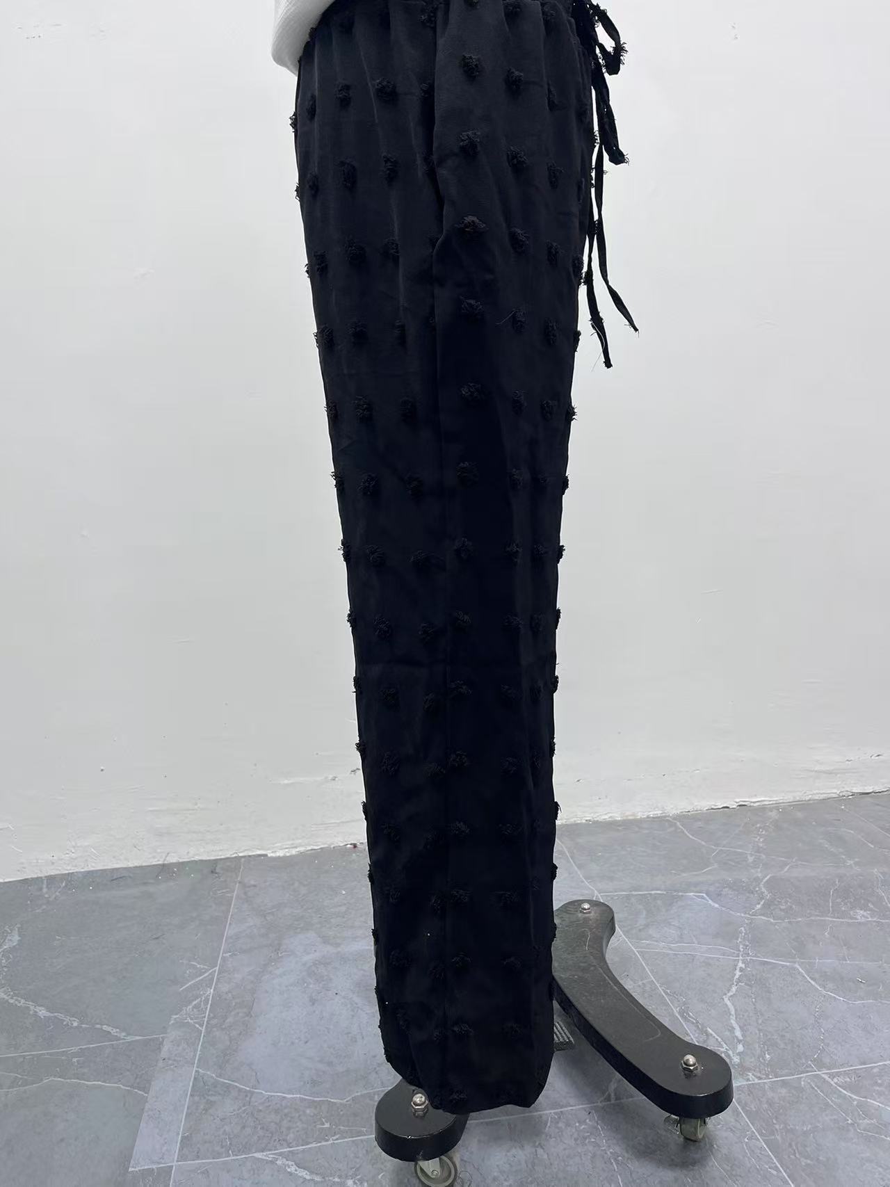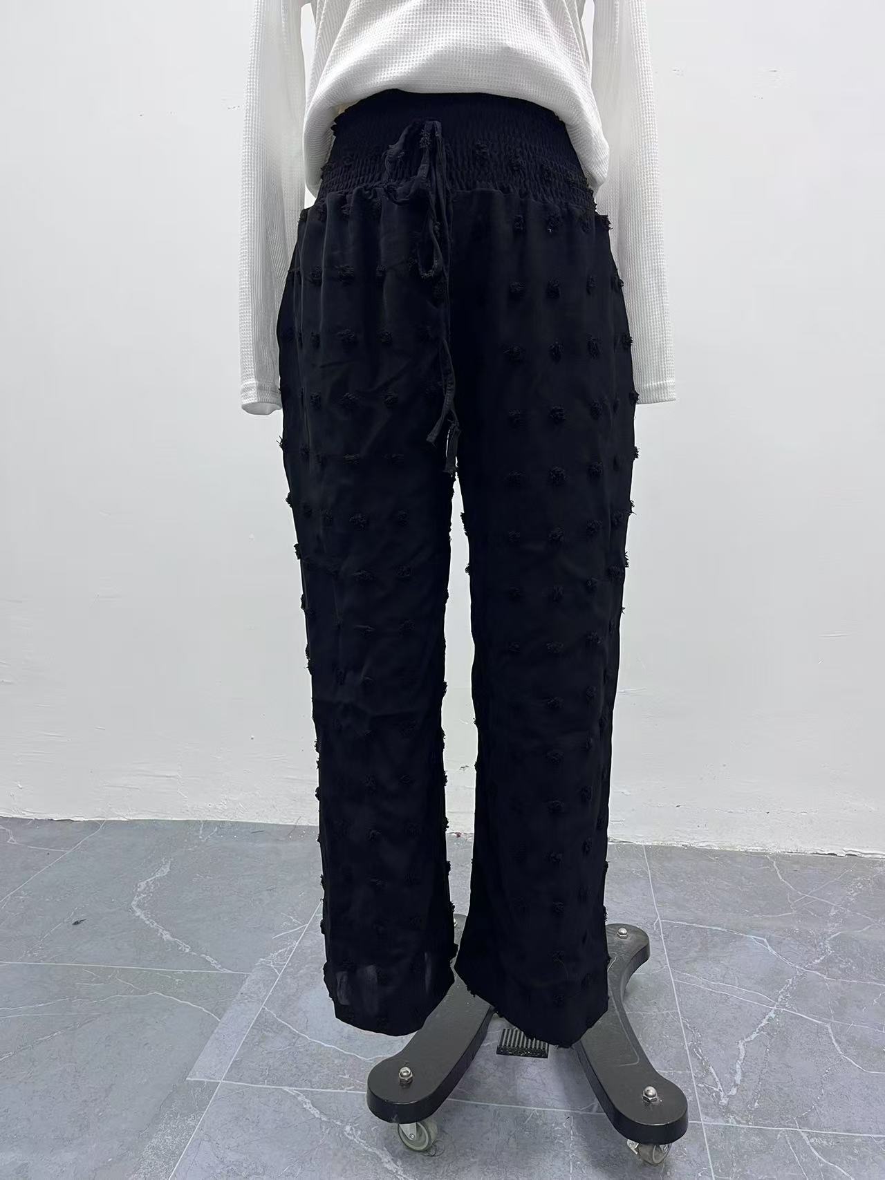2025 Europeo y Americano Transfronterizo Nuevo Pantalón Jacquard Negro de Pierna Ancha para Mujer Cintura Elástica de Tiro Alto con Cordones Pantalón Drapeado para Mujer