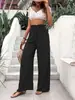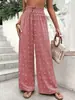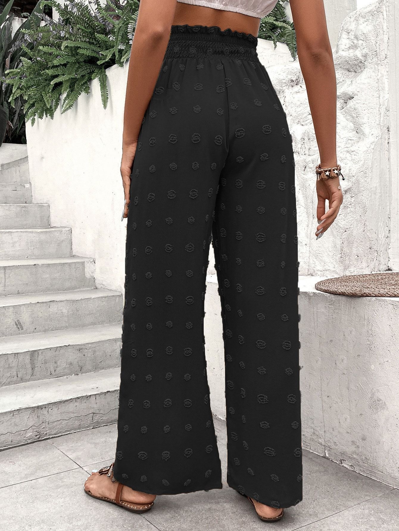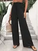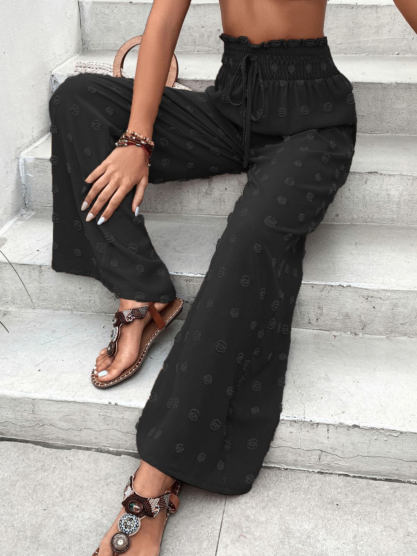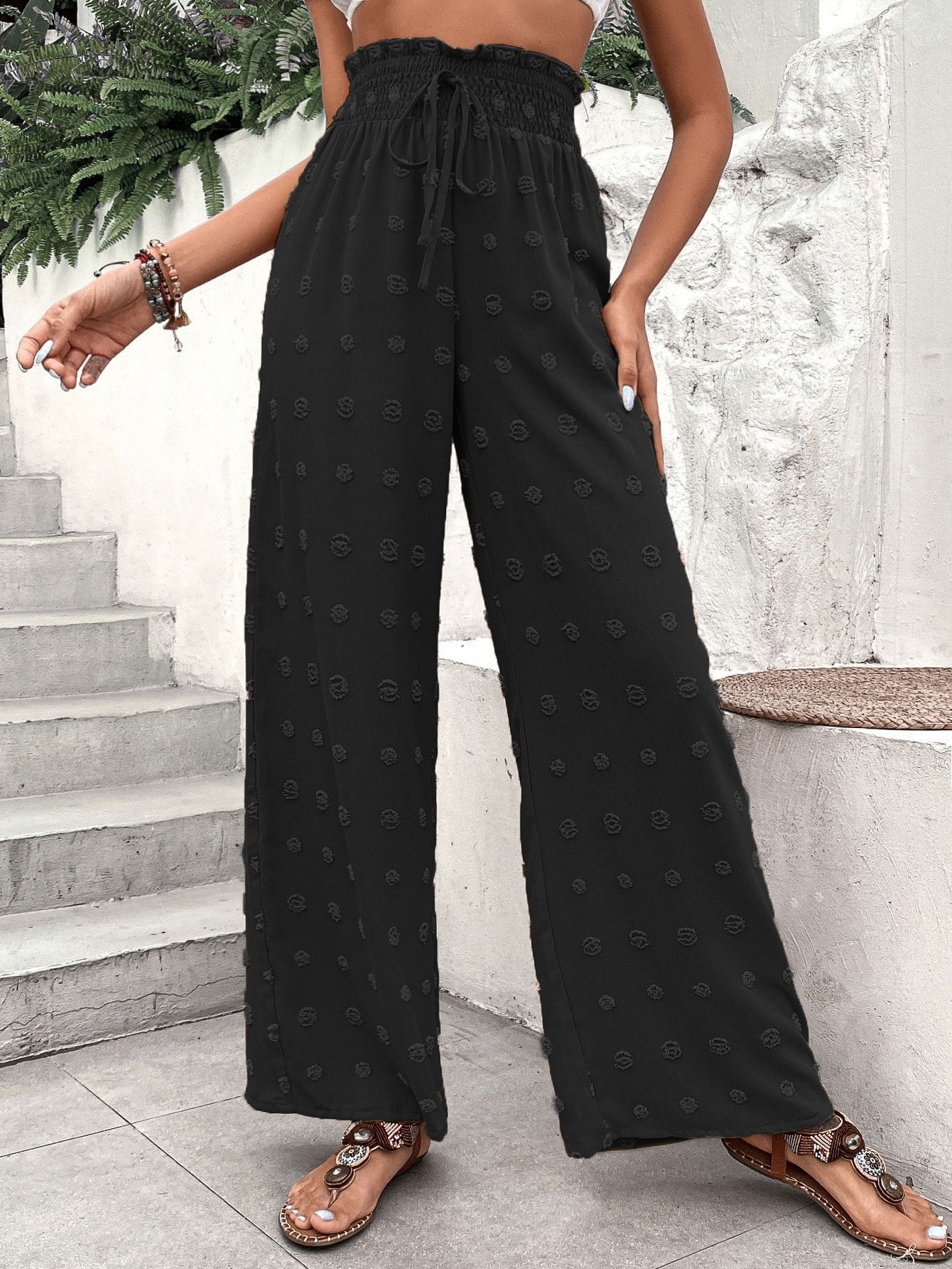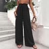 2025 Europeo y Americano Transfronterizo Nuevo Pantalón Jacquard Negro de Pierna Ancha para Mujer Cintura Elástica de Tiro Alto con Cordones Pantalón Drapeado para Mujer