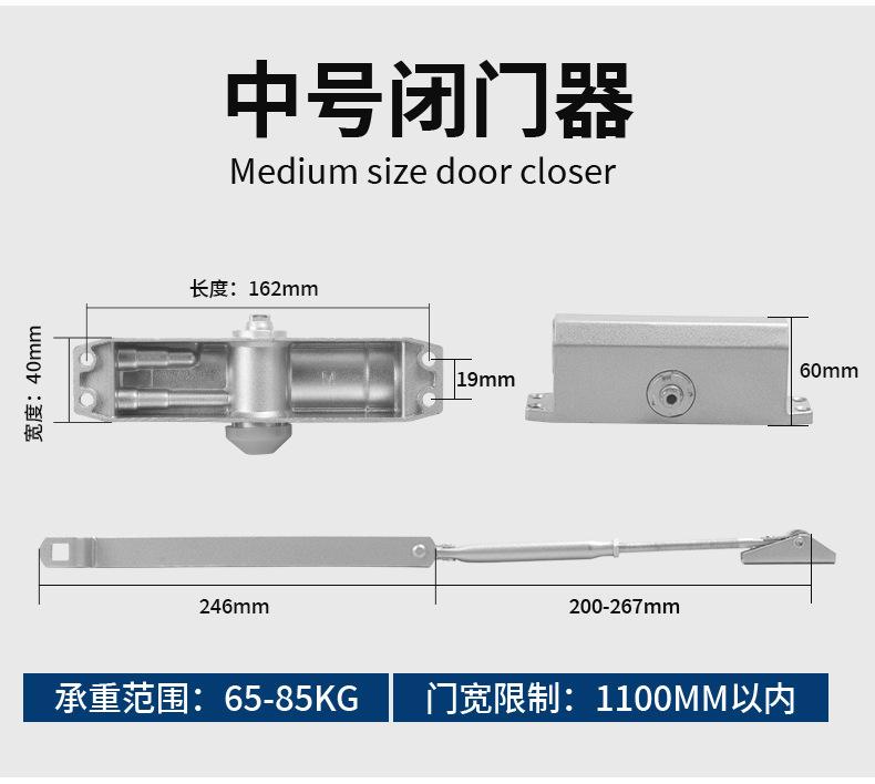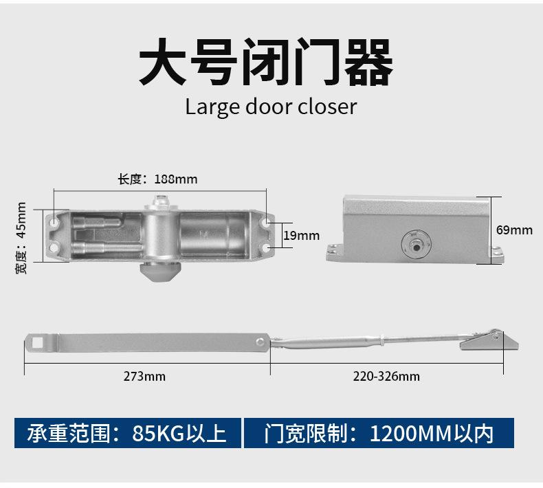 Cierrapuertas Hidráulico con Amortiguador Cierrapuertas Automático Hogar Fuego Puerta Unidad Corredera 180 Grados Sin Posicionamiento Silencioso