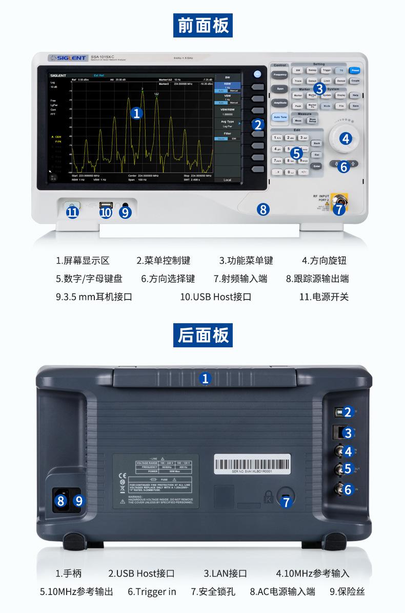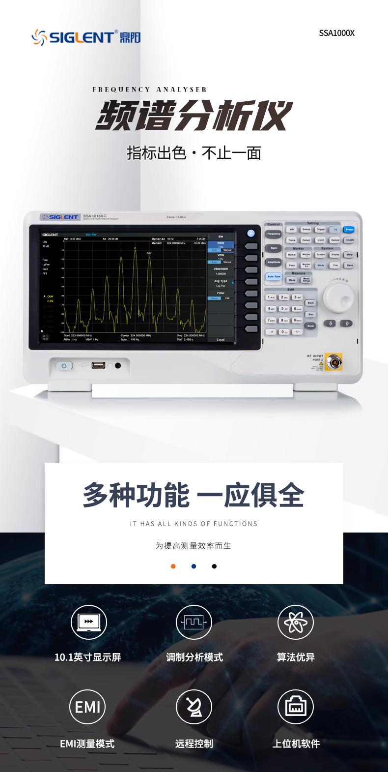 Analizador de espectro Dingyang SSA1015X-C frecuencia 9K ~ 1.5GHz pantalla táctil 10.1 pulgadas analizador de espectro