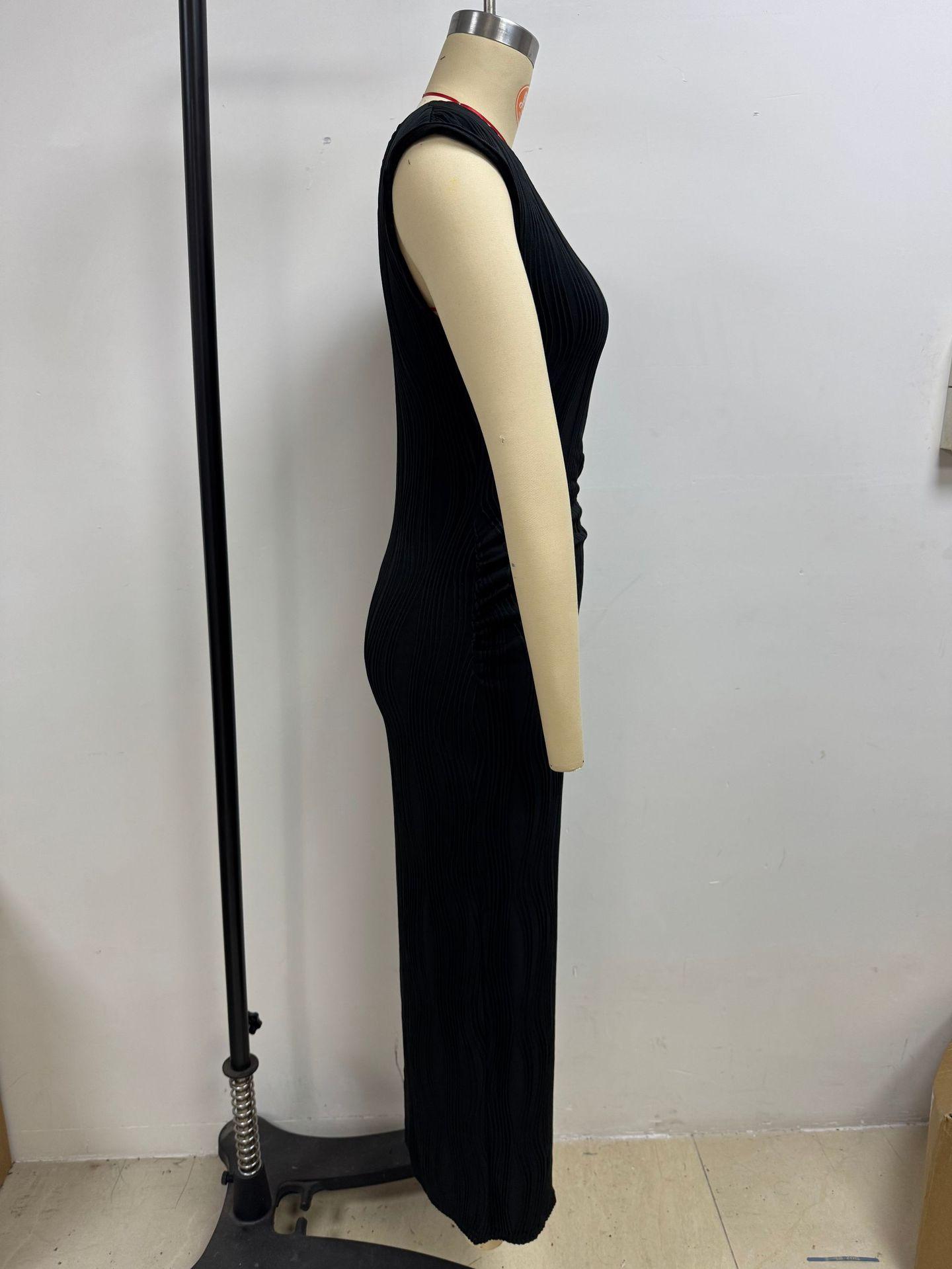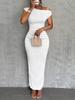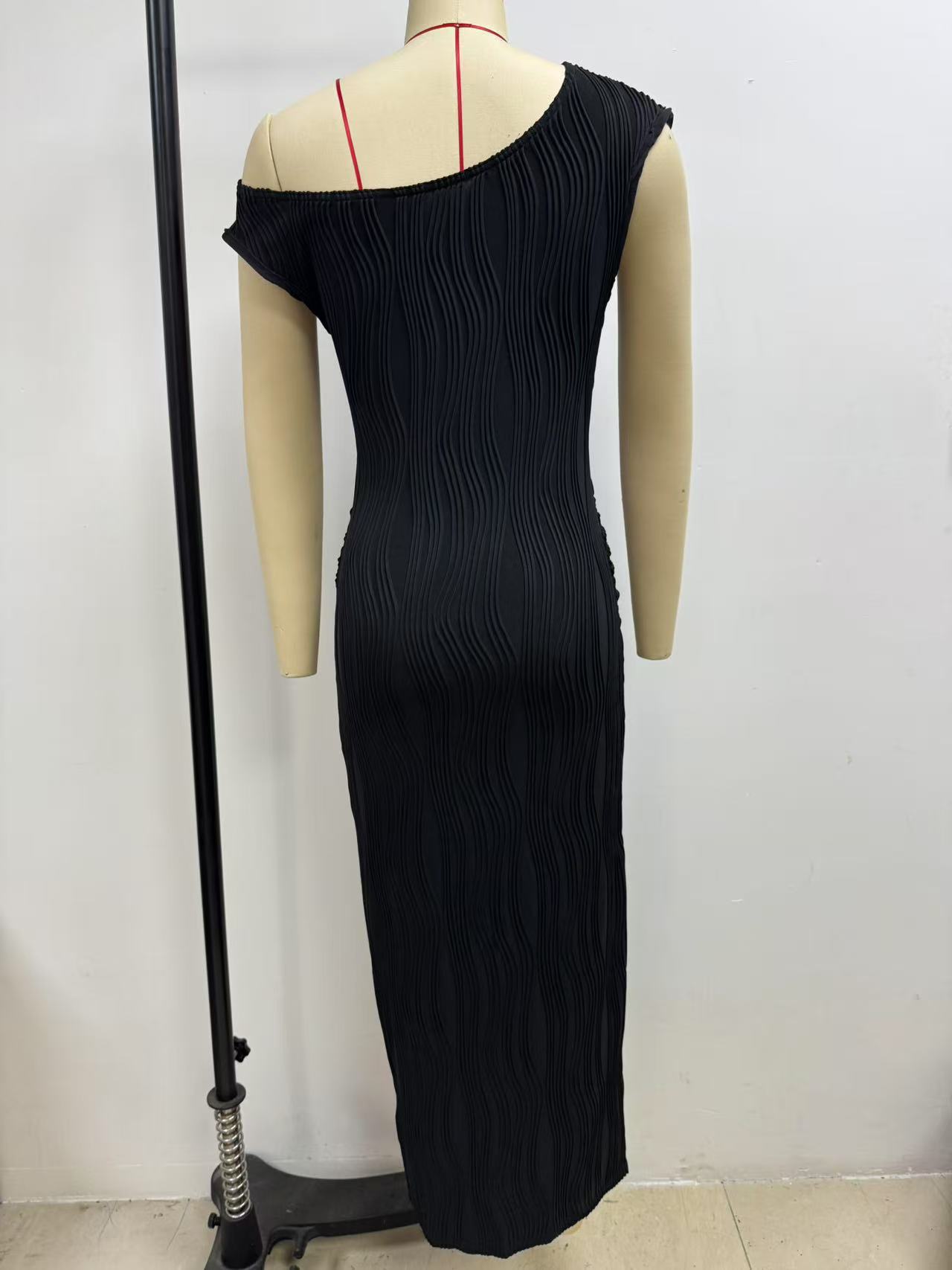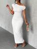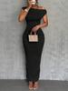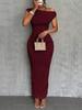 Vestido de Verano Cruzado Europeo y Americano 2025 con Hombro Descubierto y Ondas de Agua para Mujer, Moda Femenina, Lindo, Ajustado, para Cita, Fiesta