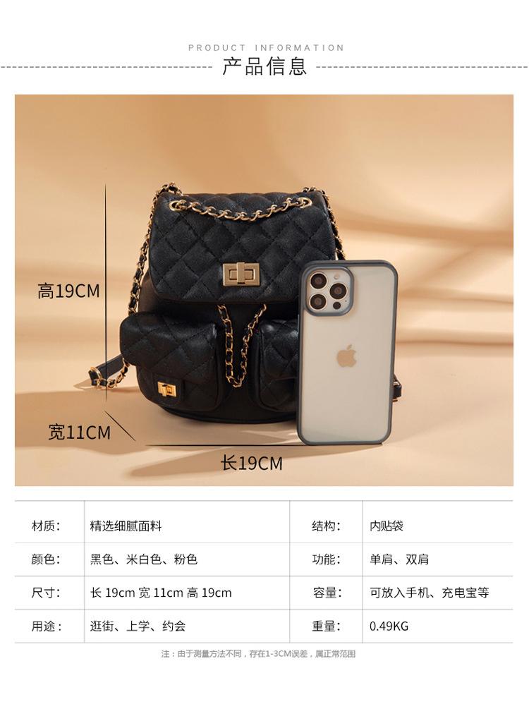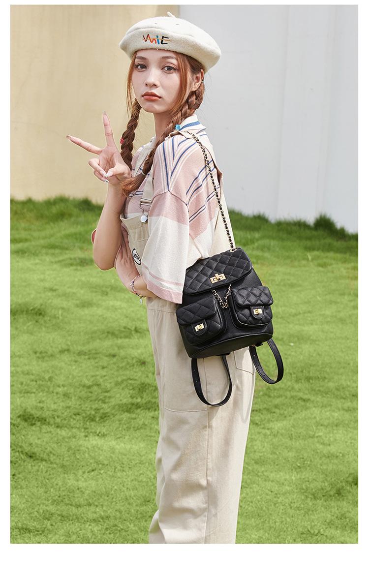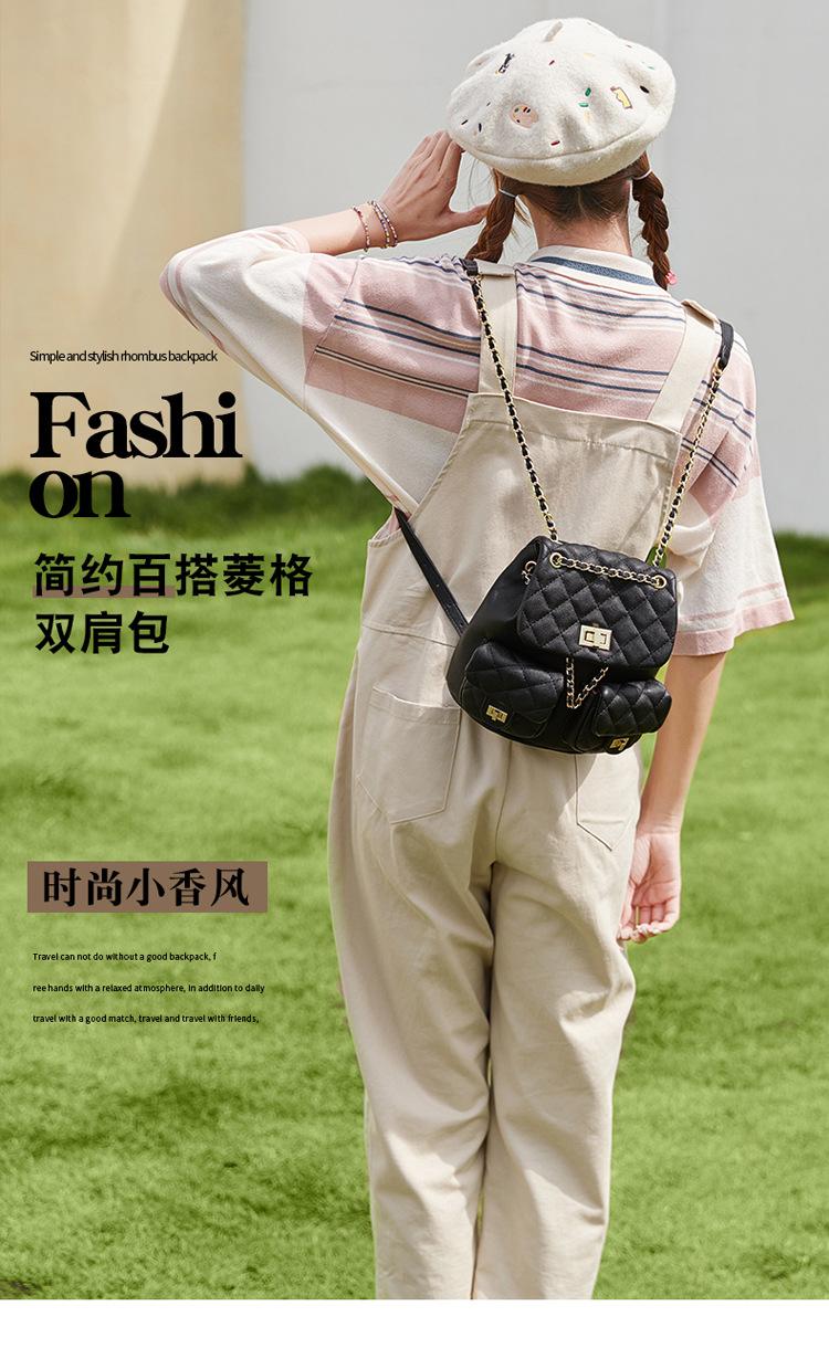 Mochila de Mujer 2025 Nueva Más Fácil de Combinar Estilo Pequeño de Fragancia Cadena de Diamantes Moda Viaje Mochila Pequeña para Desplazamiento Bolso de Hombro Escolar