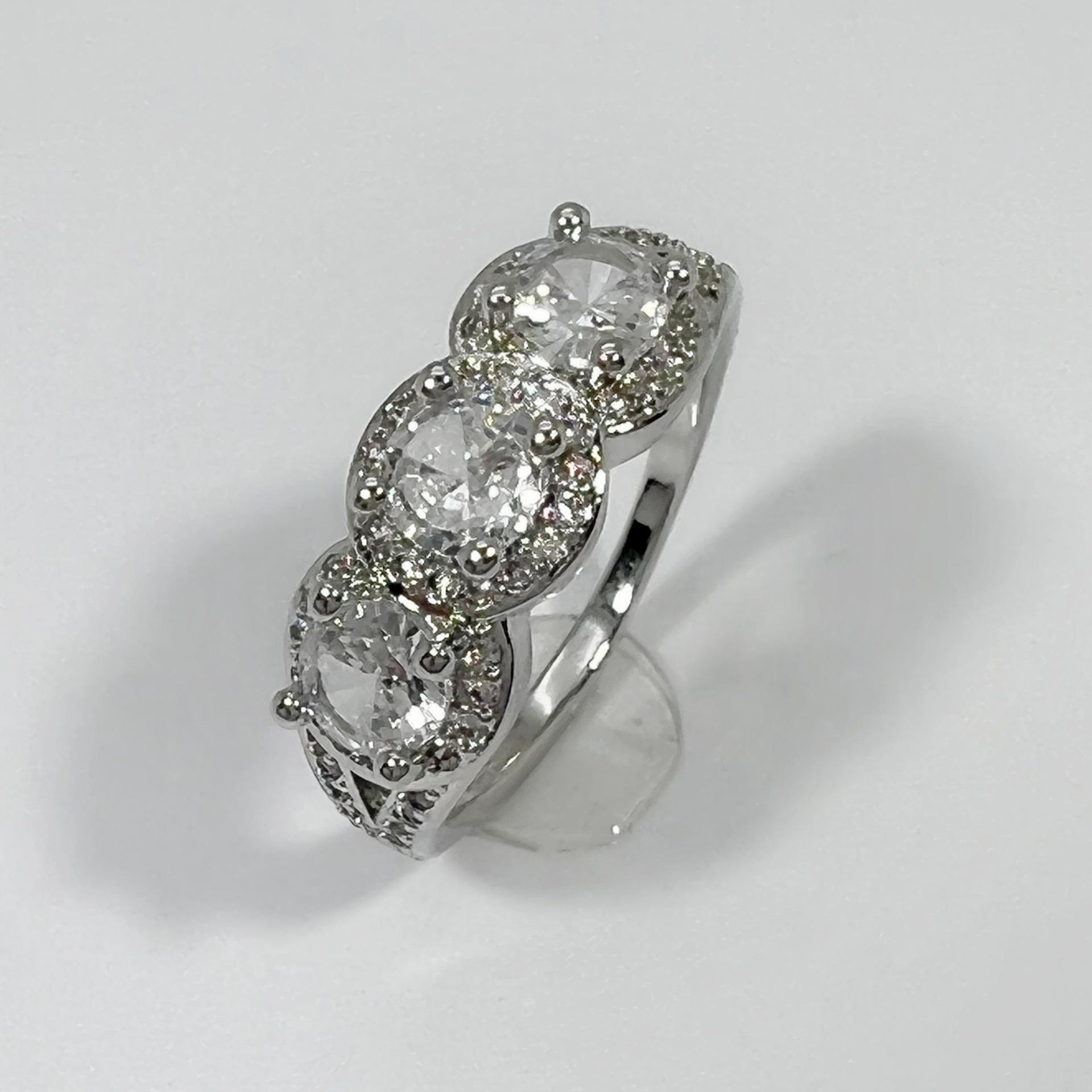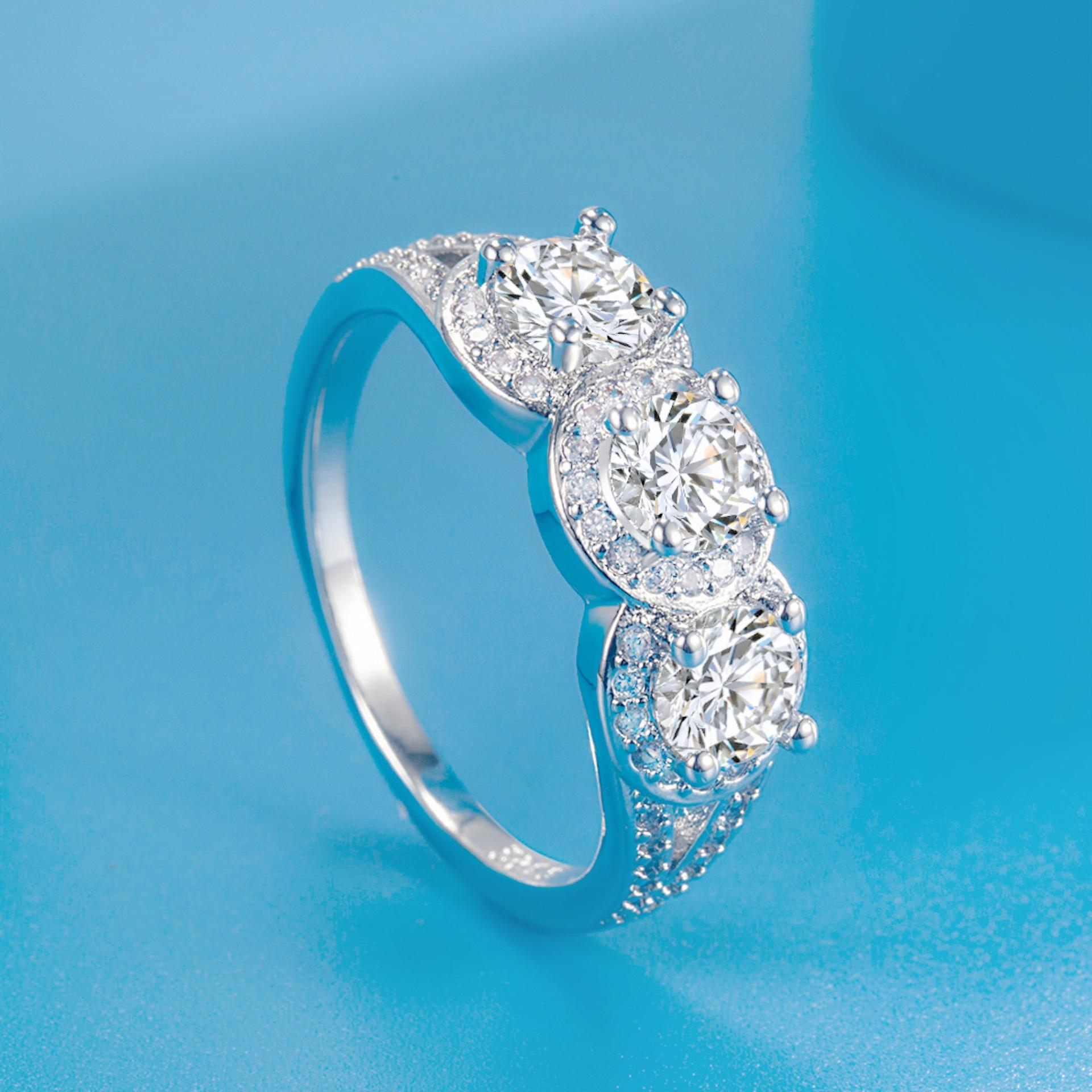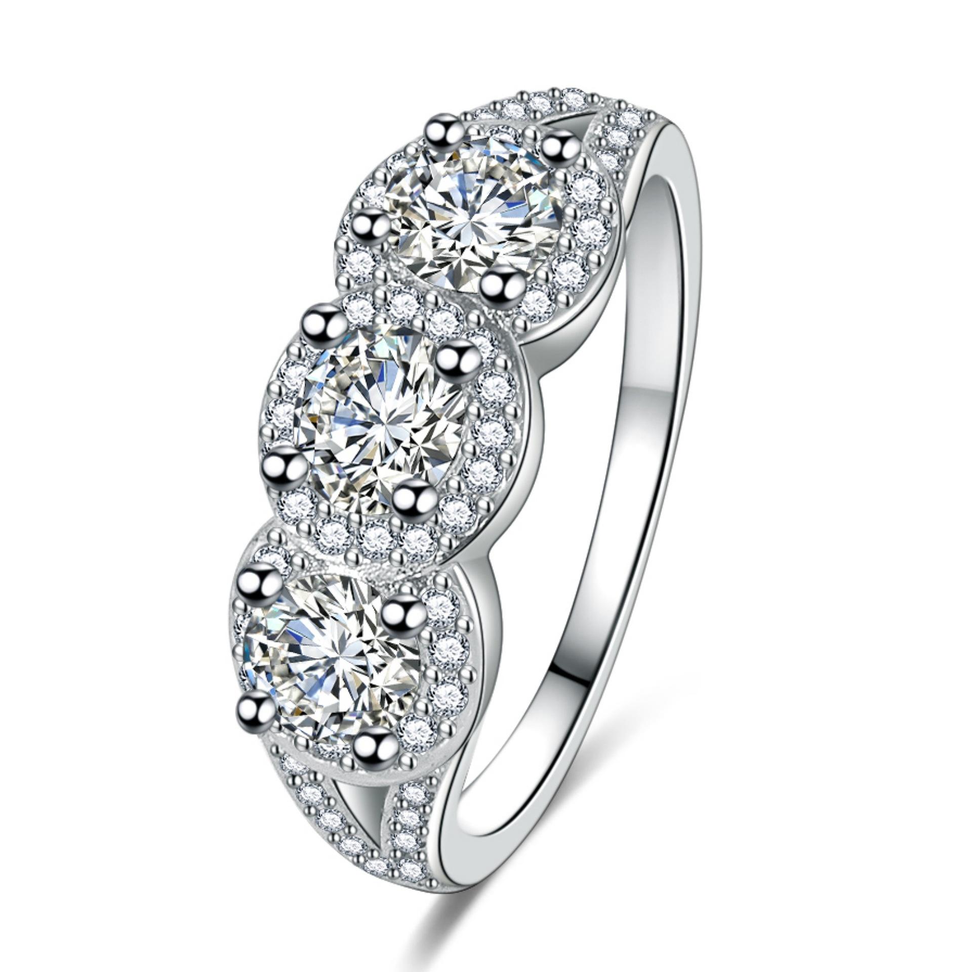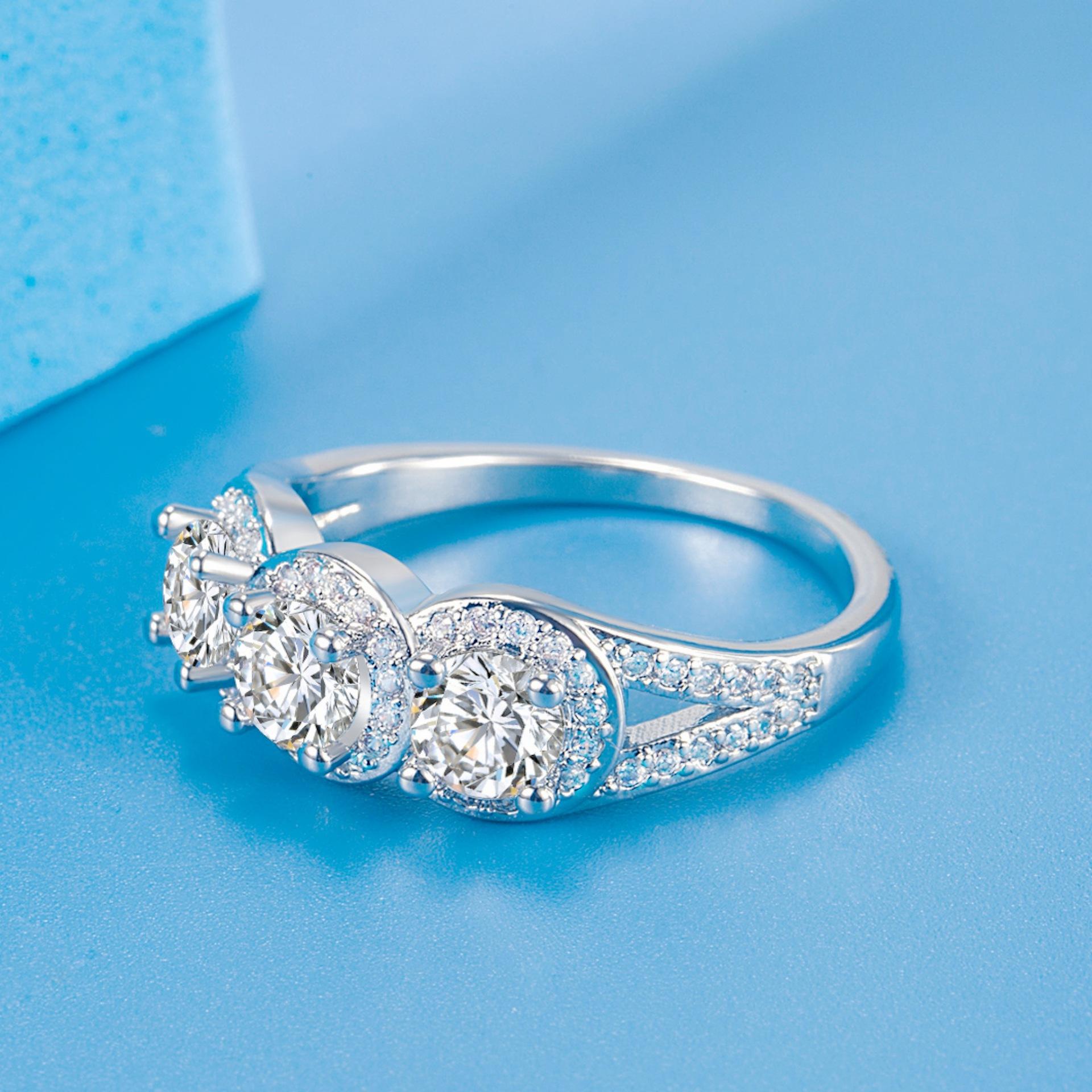 Europa y Estados Unidos anillo de tres diamantes más vendido micro incrustado circón anillo de diamantes completo moda fiesta de cumpleaños anillo de tres piedras