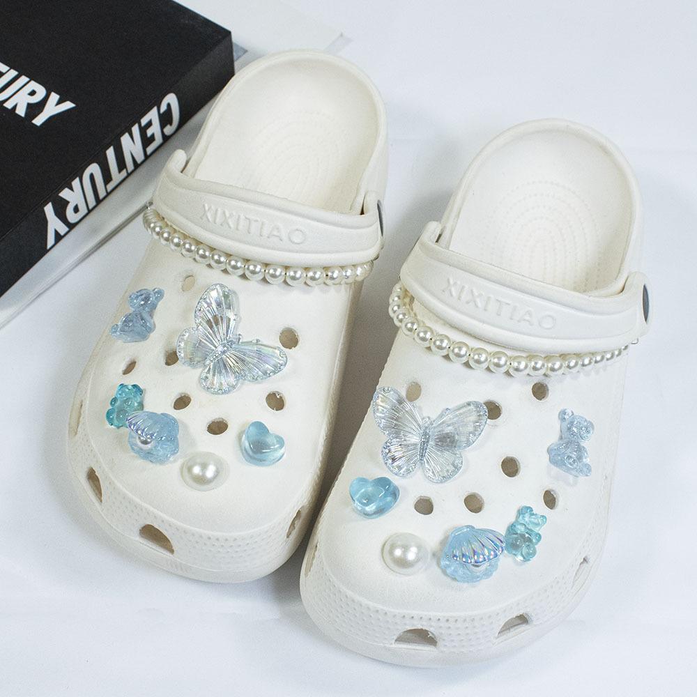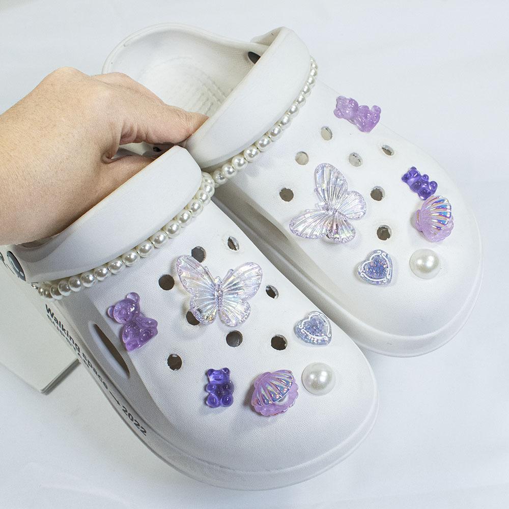 Nuevos Zapatos Croc Accesorios DIY Lindo Color AB Mariposa Concha Perla Flor para Zapato Accesorios de Decoración Hebilla Desmontable