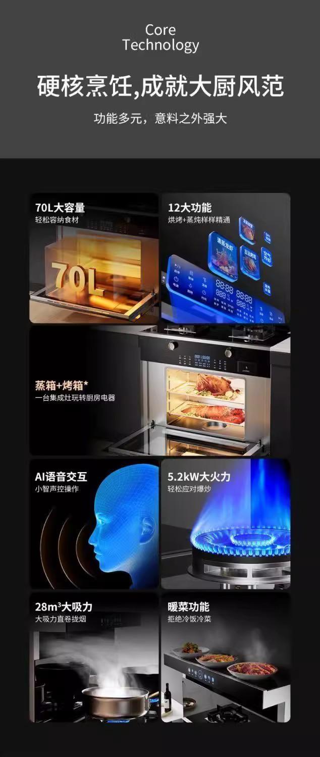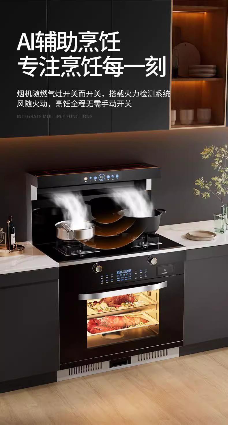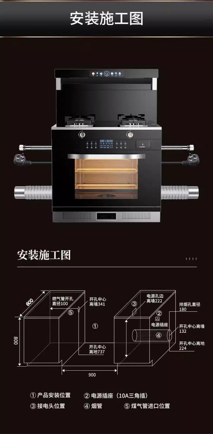 ▲Canned liquefied gas---door-to-door installation of 900 color screen somatosensory switch smoke stove, steam, bake, warm dishes, self-cleaning