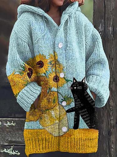 Comercio exterior 24 años nuevo suéter imitación cárdigan abrigo suelto jacquard con capucha otoño e invierno transfronterizo más vendido D mayoreo