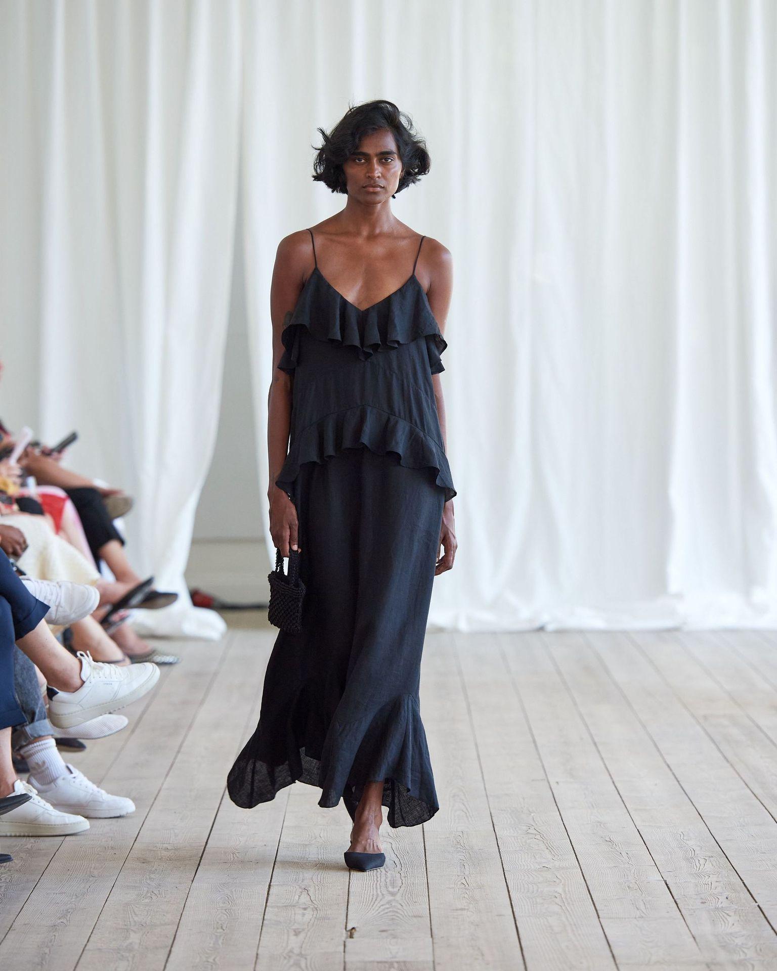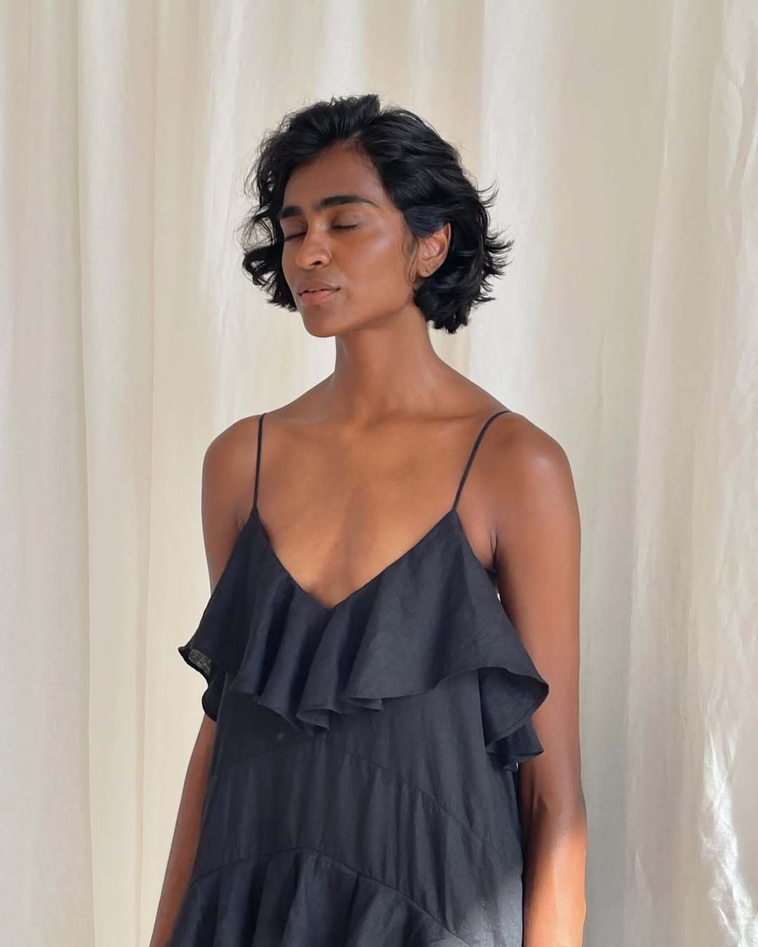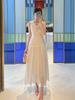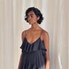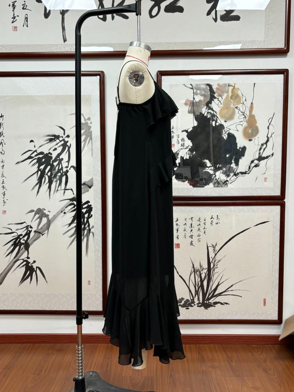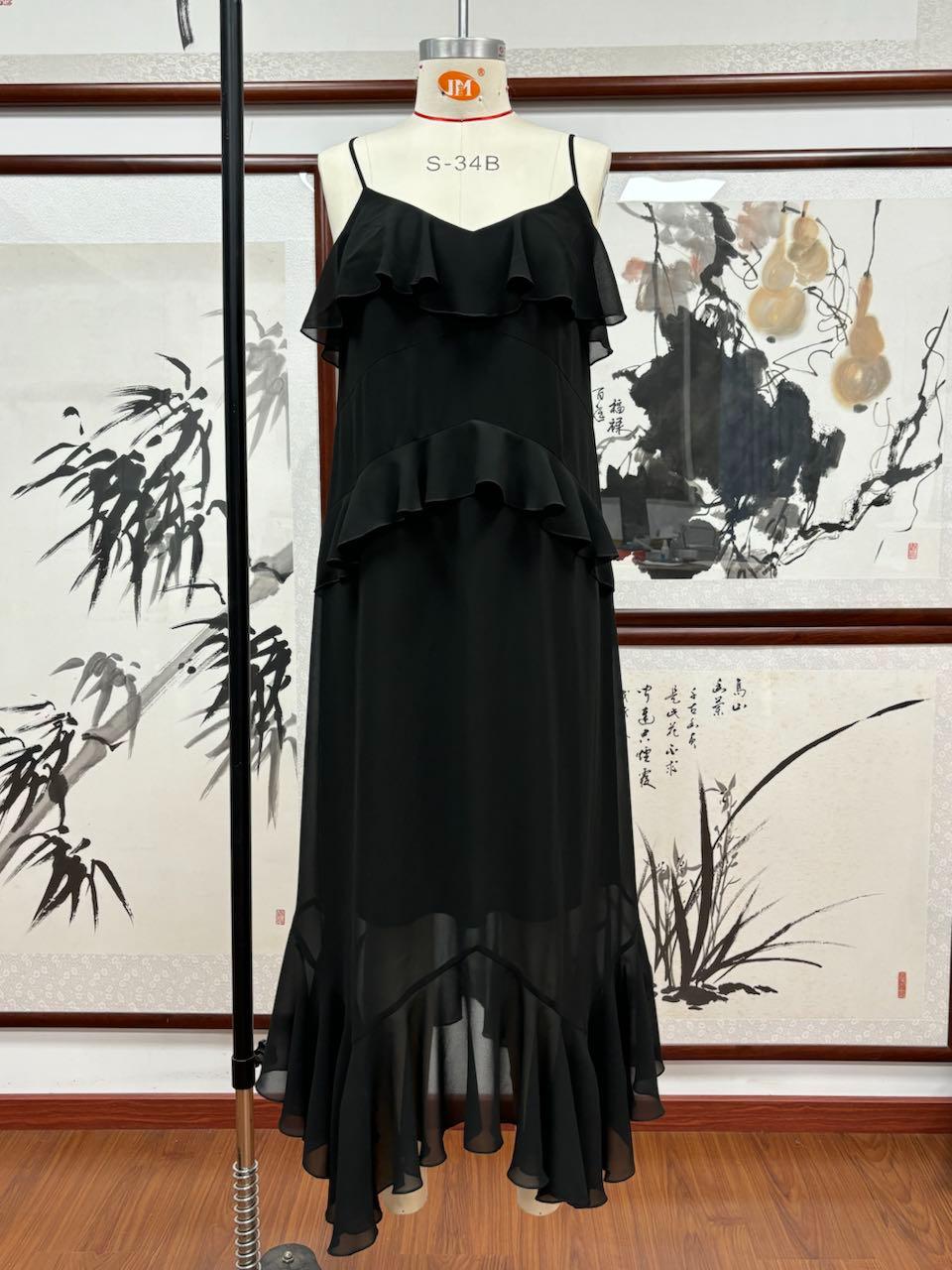 Venta al por Mayor Transfronteriza para Mujer Elegante Elegante Vestido Largo con Tirantes Cuello en V Empalme de Volantes de Chifón