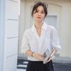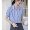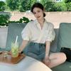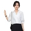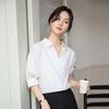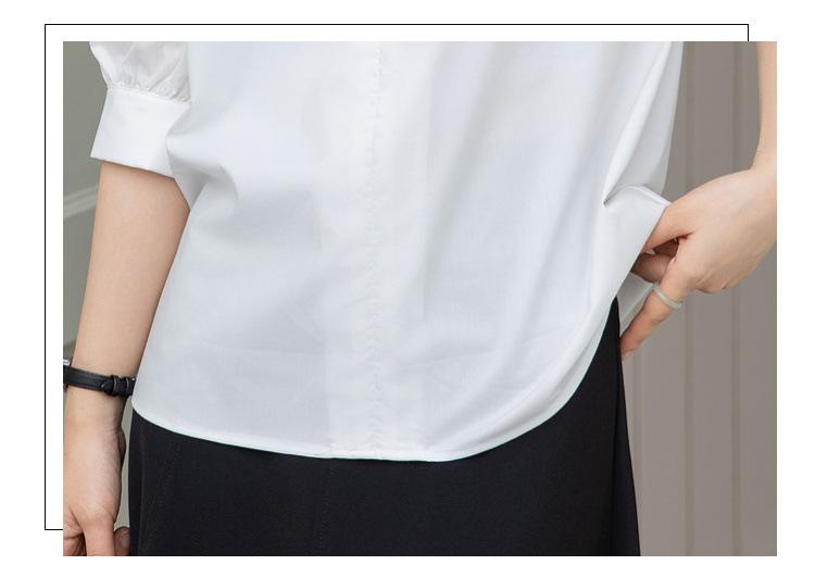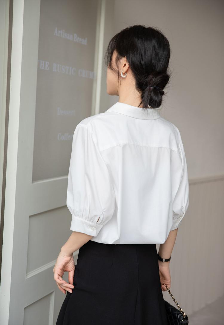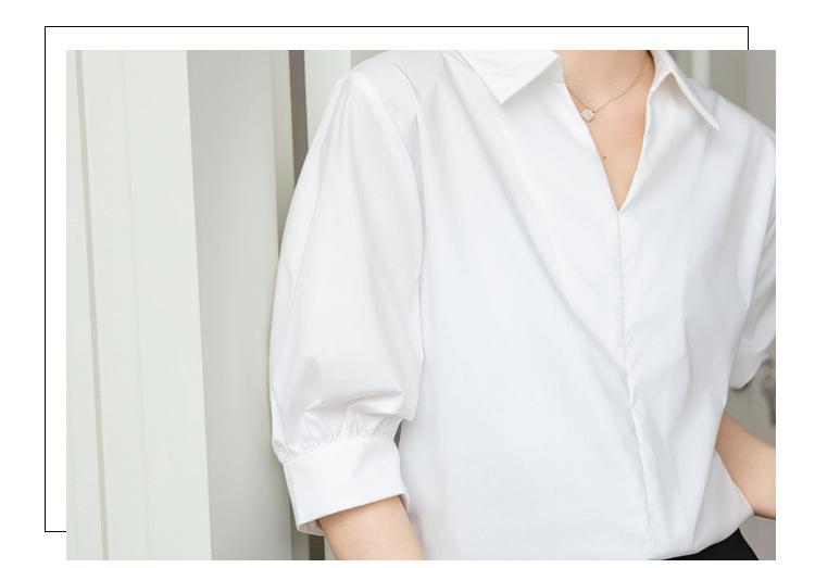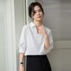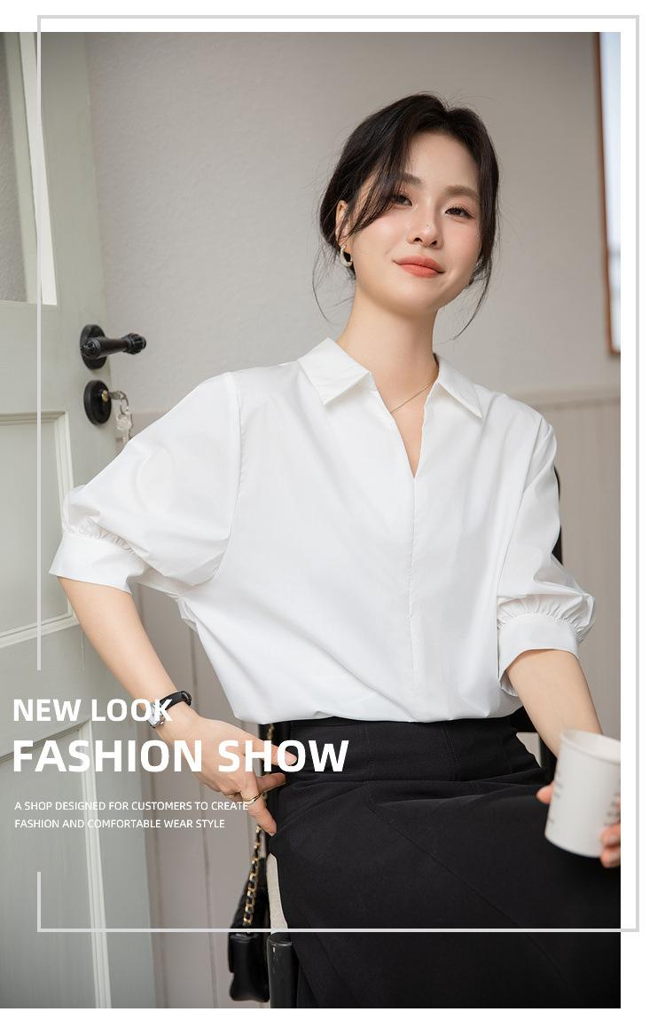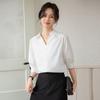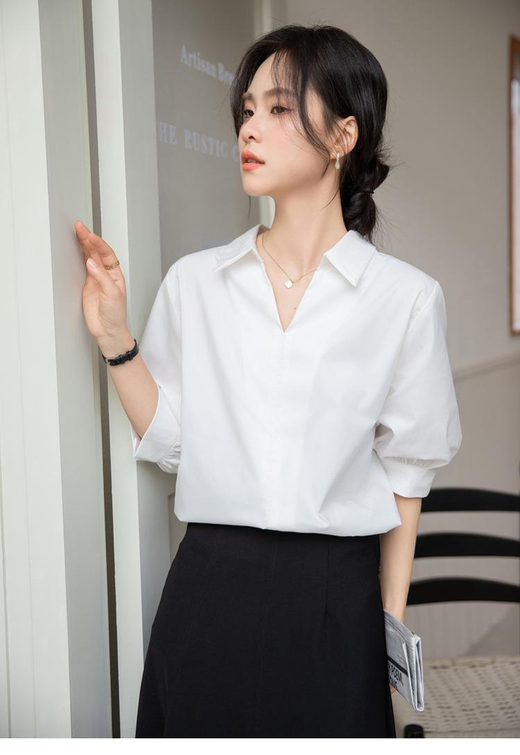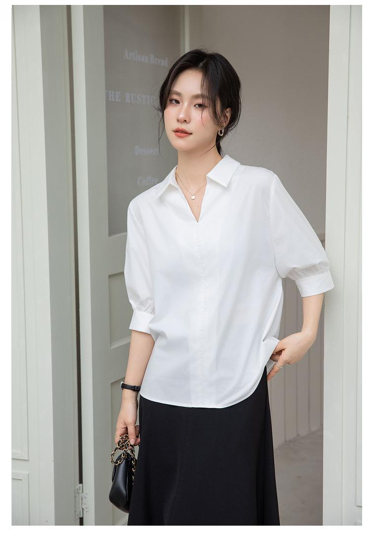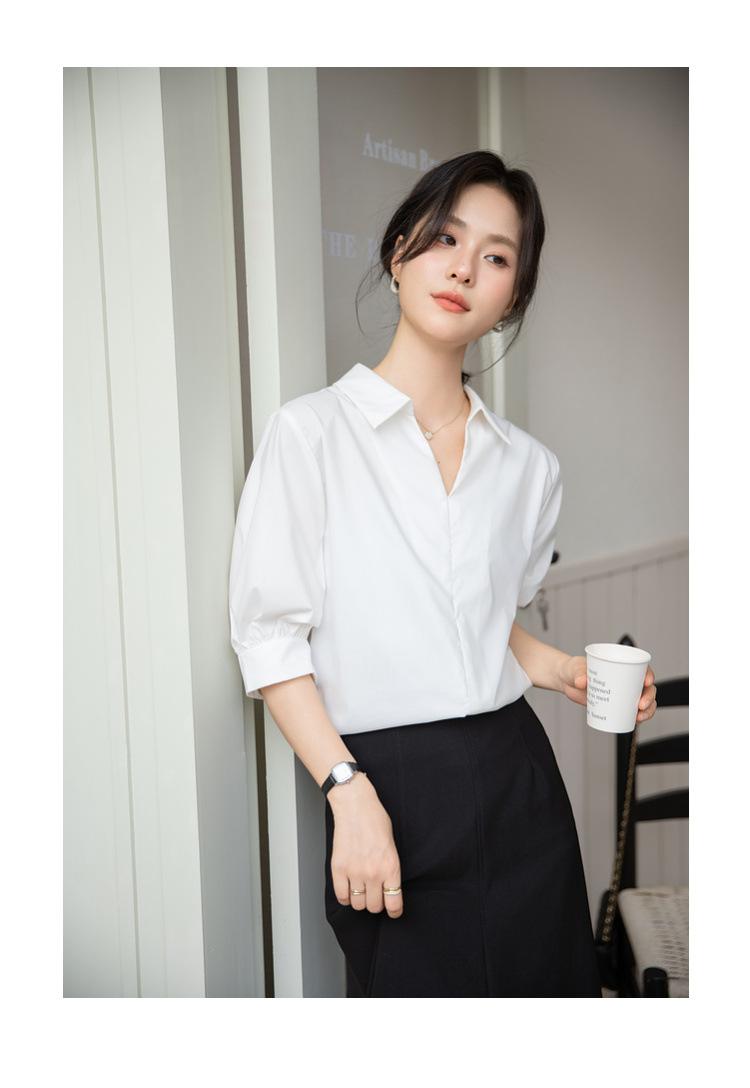 Camisa Blanca de Verano para Mujer con Cuello en V Francés y Manga Corta 2025 Ropa de Trabajo Profesional de Alta Gama Casual Holgada