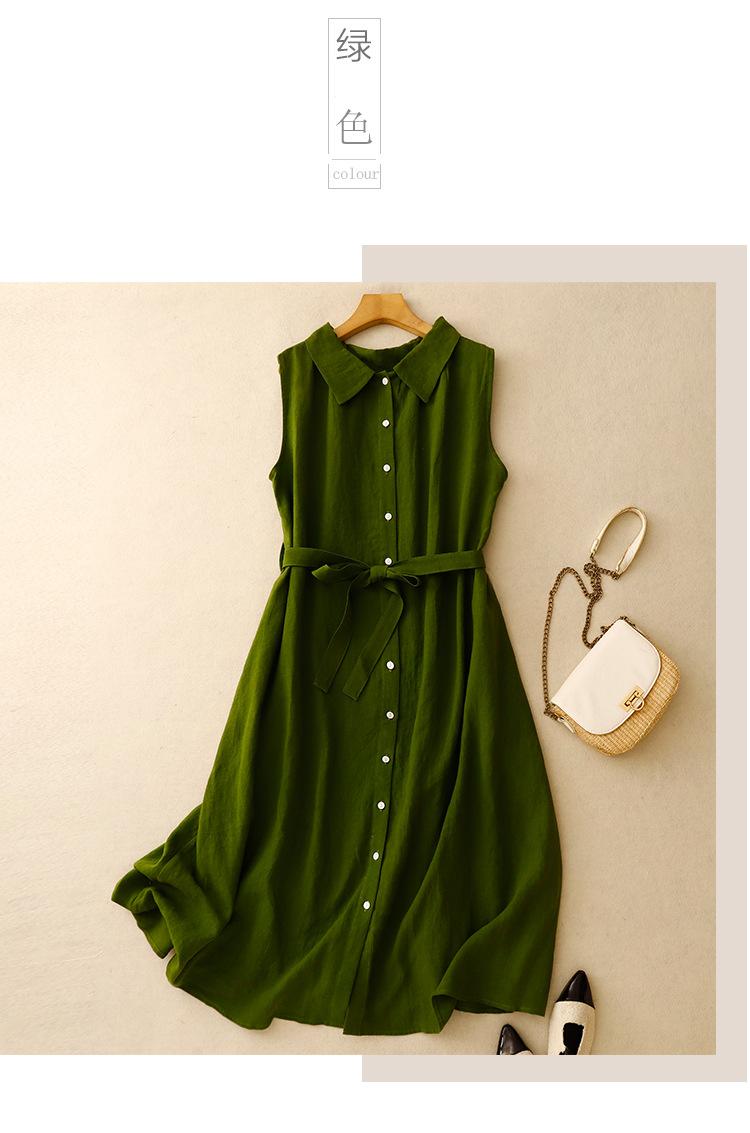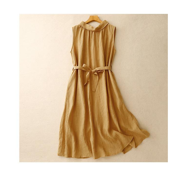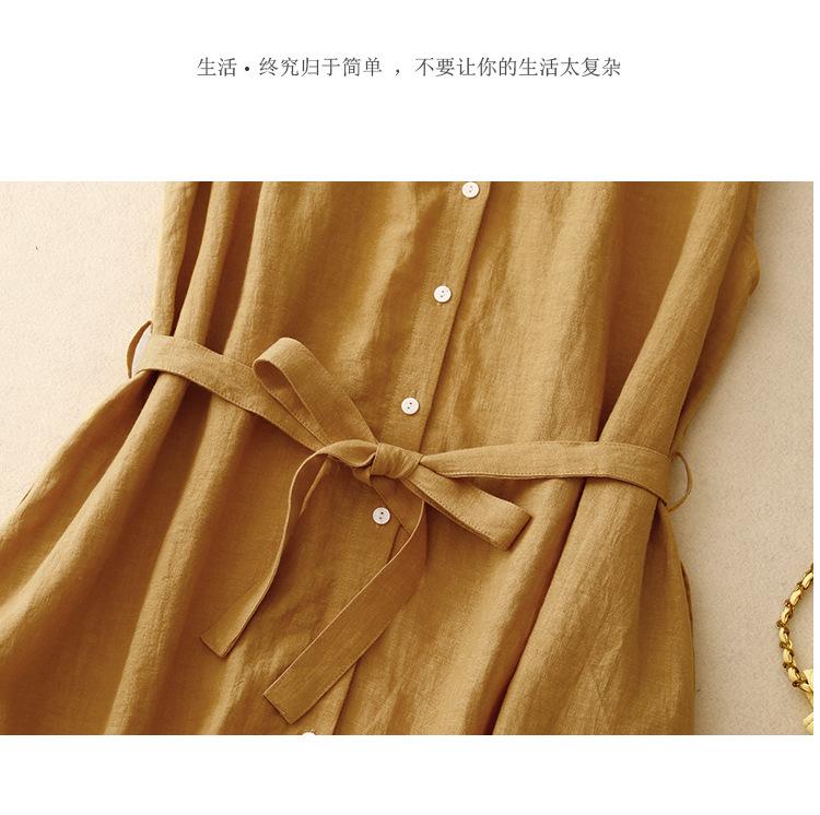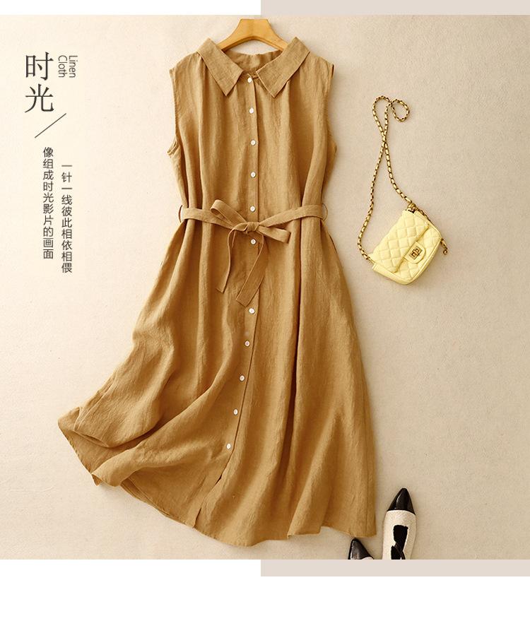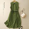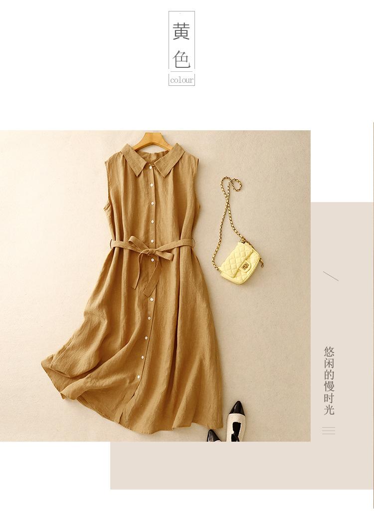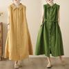 Vestido Camisero 2025 sin Mangas para Mujer Verano Nuevo Diseño Holgado Adelgazante con Cordones Temperamento Falda Larga para Mujer