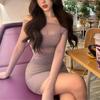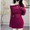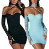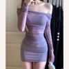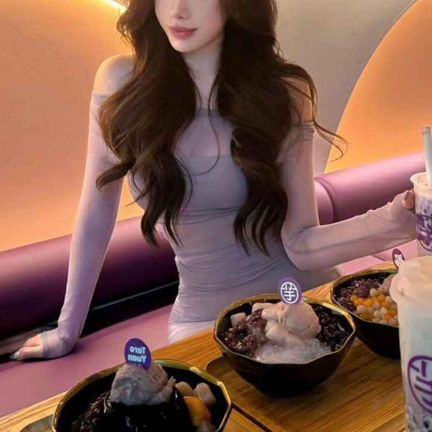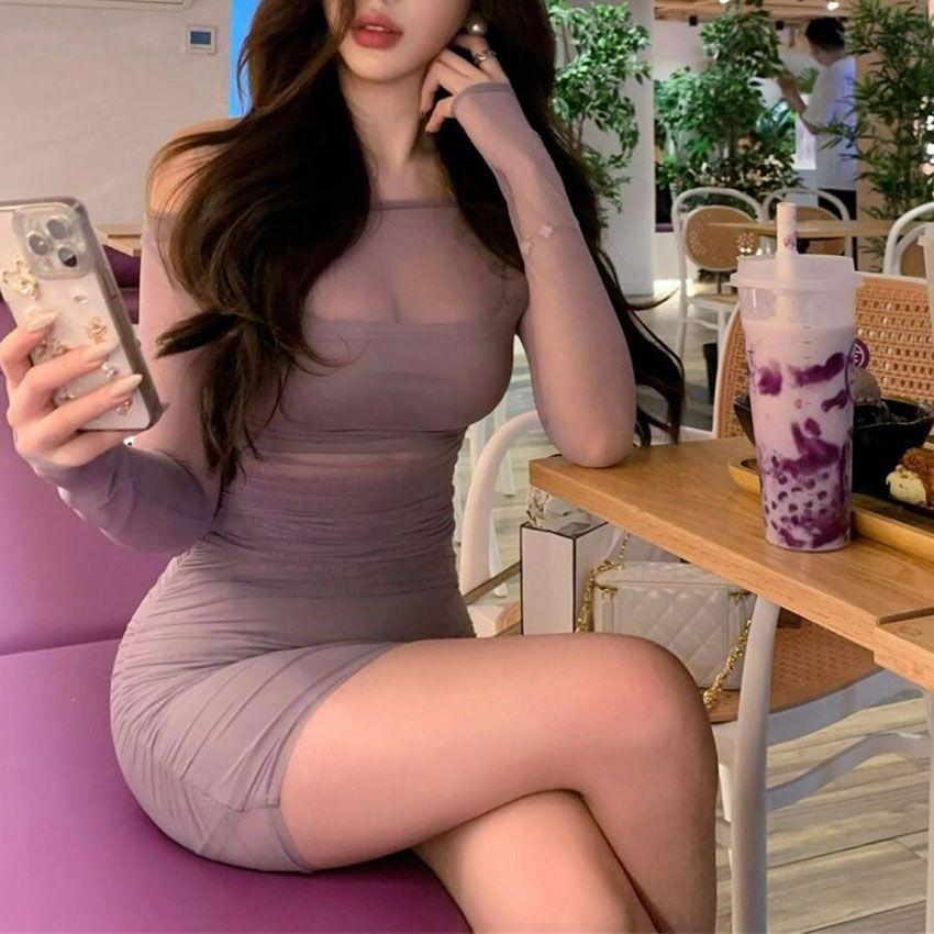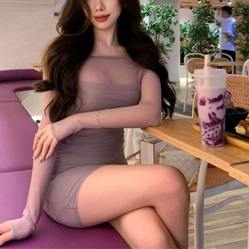 2025 Lujuria Pura Elegante Top de un Hombro de Manga Larga Look Adelgazante Malla Sexy Falda Ajustada a las Caderas Top de Verano + Falda Corta