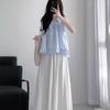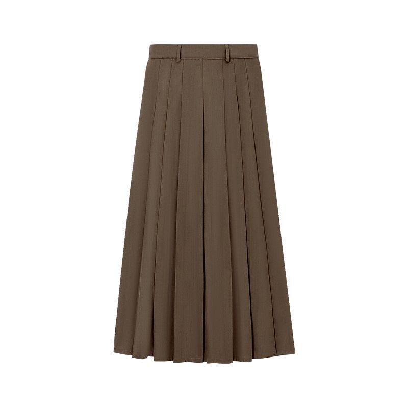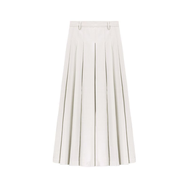 Moda Vintage Diseño Gris Falda Plisada de Cintura Alta para Mujer Principios de Primavera Pequeña Suelta Grande Falda Acampanada Falda Línea A