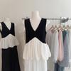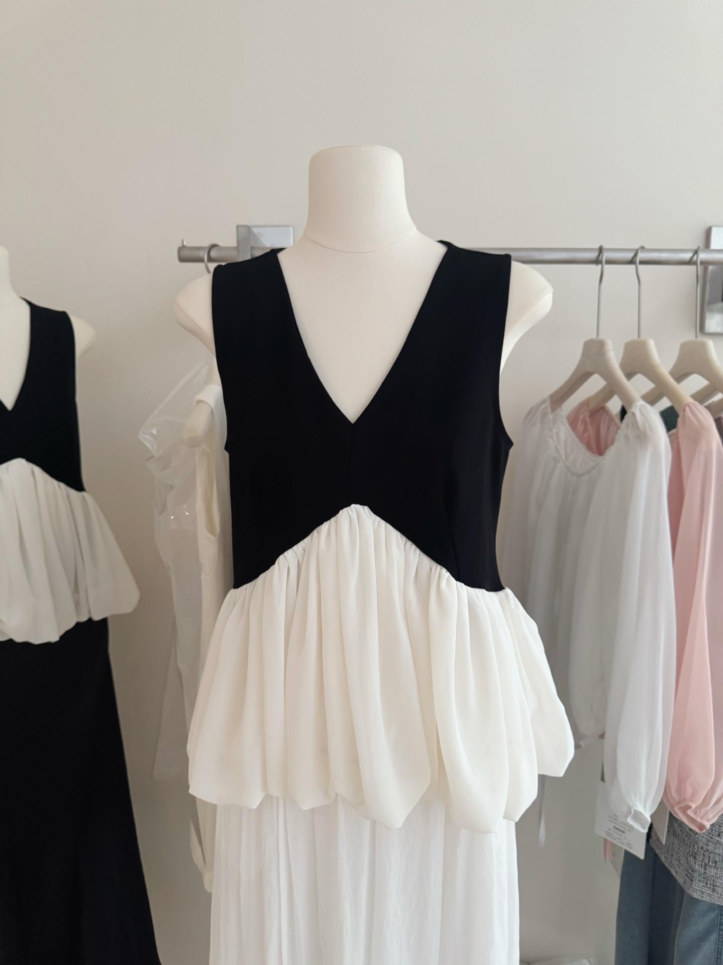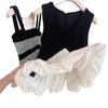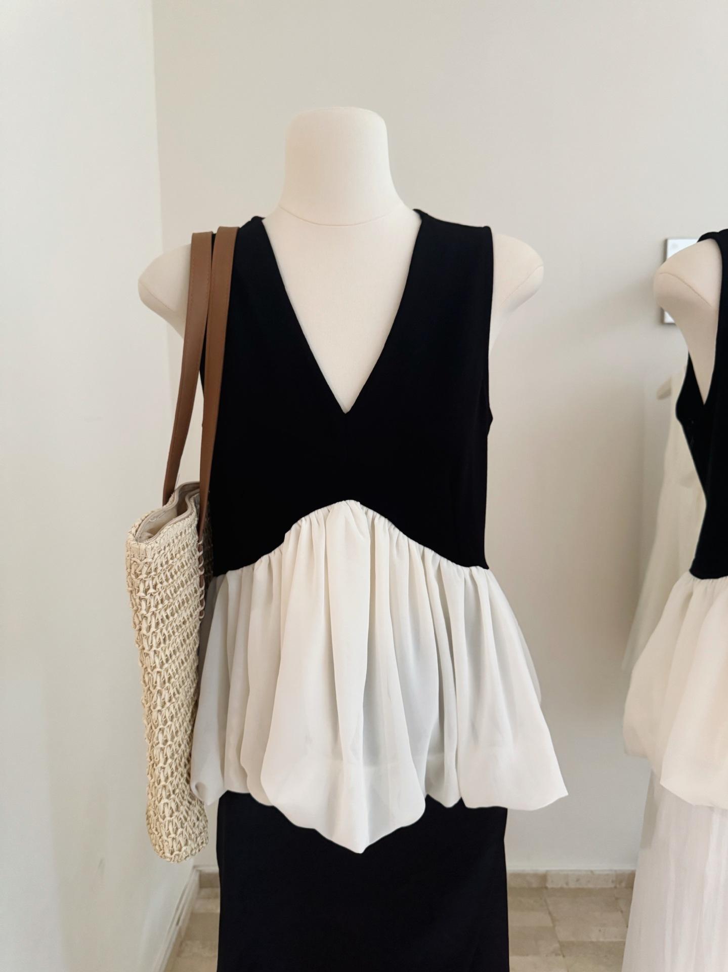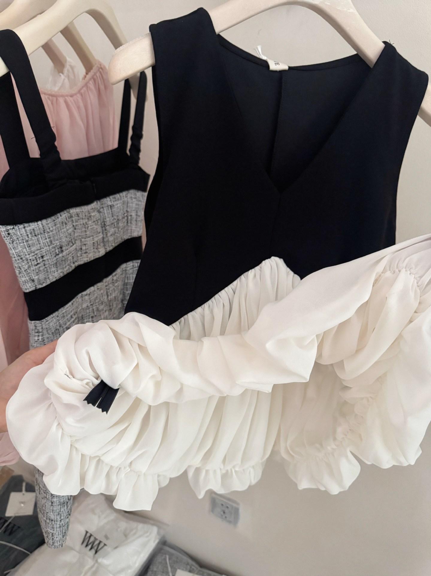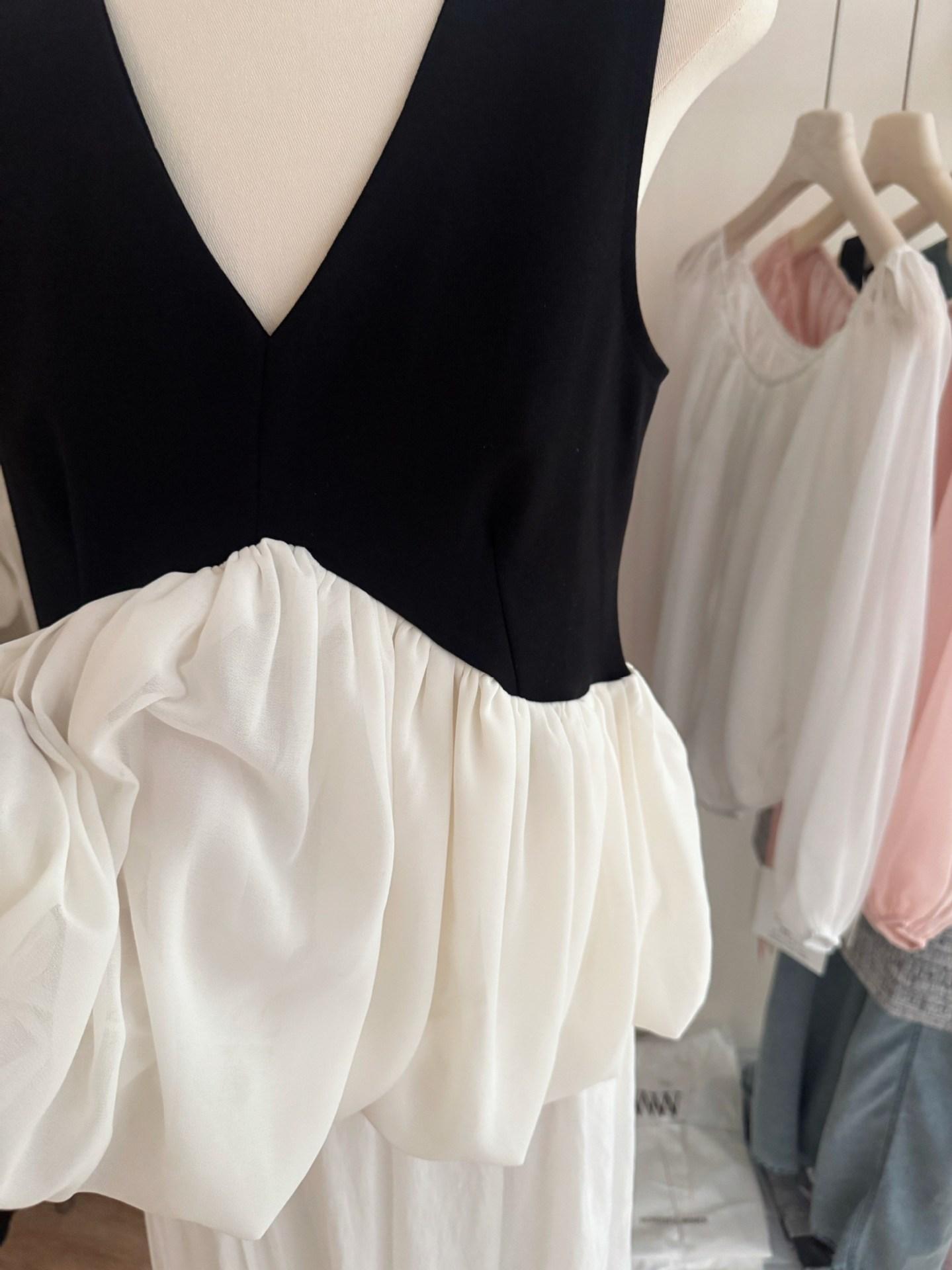 Verano 2025 Estilo Francés Cuello en V Jersey Sin Mangas Adelgazante Patchwork Color Contraste Crop Top para Mujer Trendy