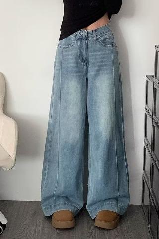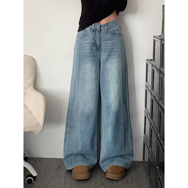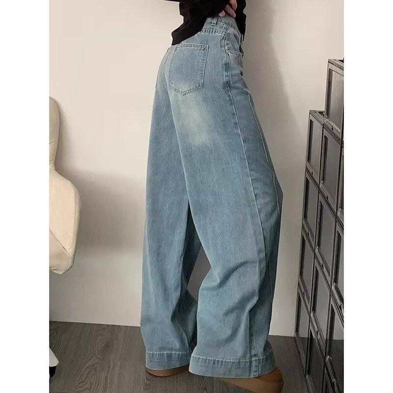 Pantalones vaqueros vintage de pierna ancha para mujer 2025 Nuevo talle alto talla grande holgados adelgazantes cuerpo en forma de pera pantalones de pierna recta ropa de mujer