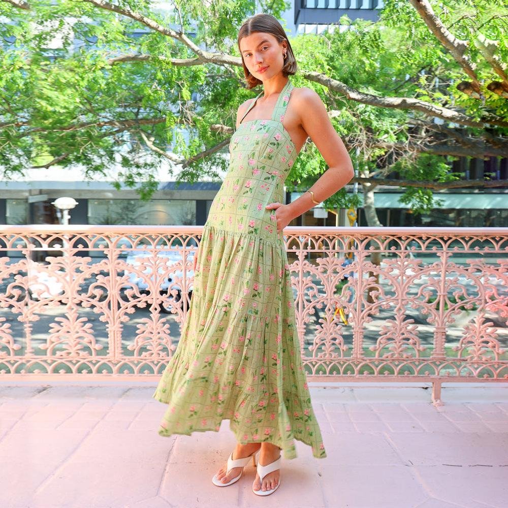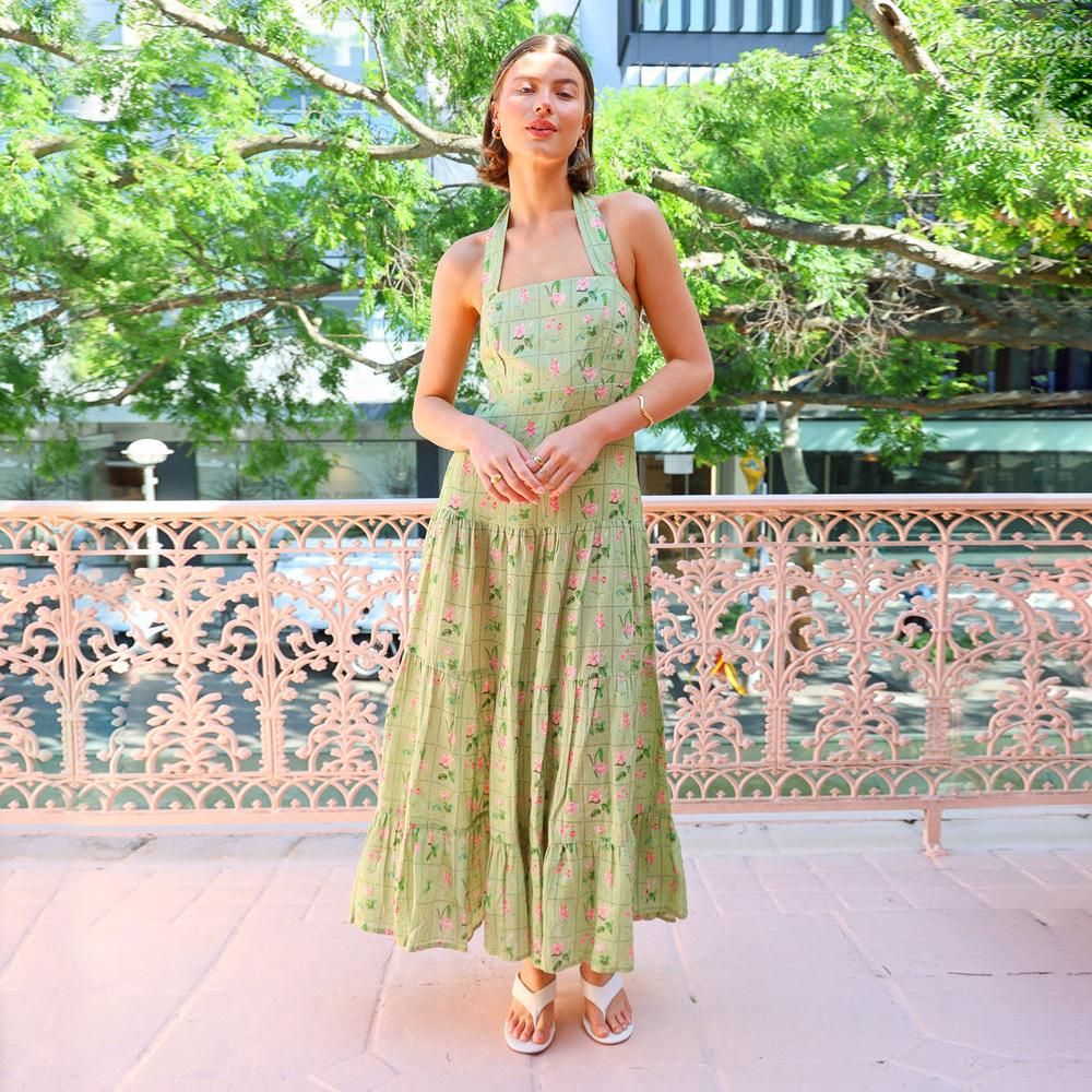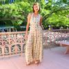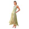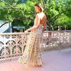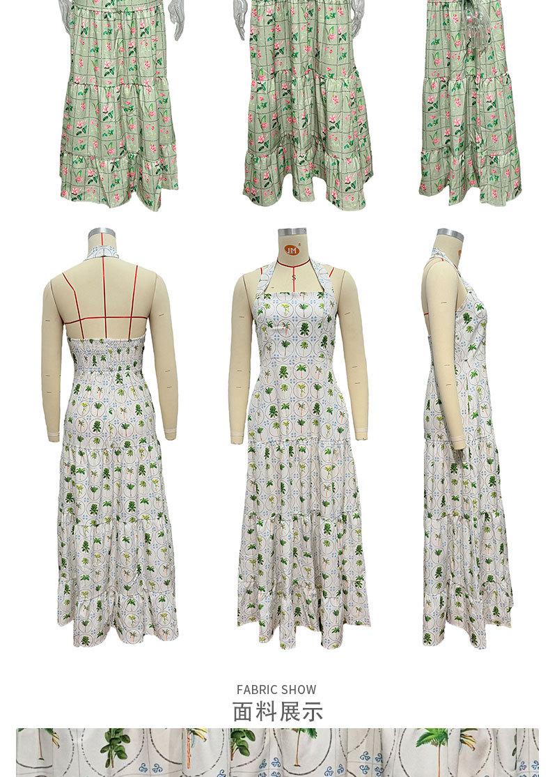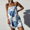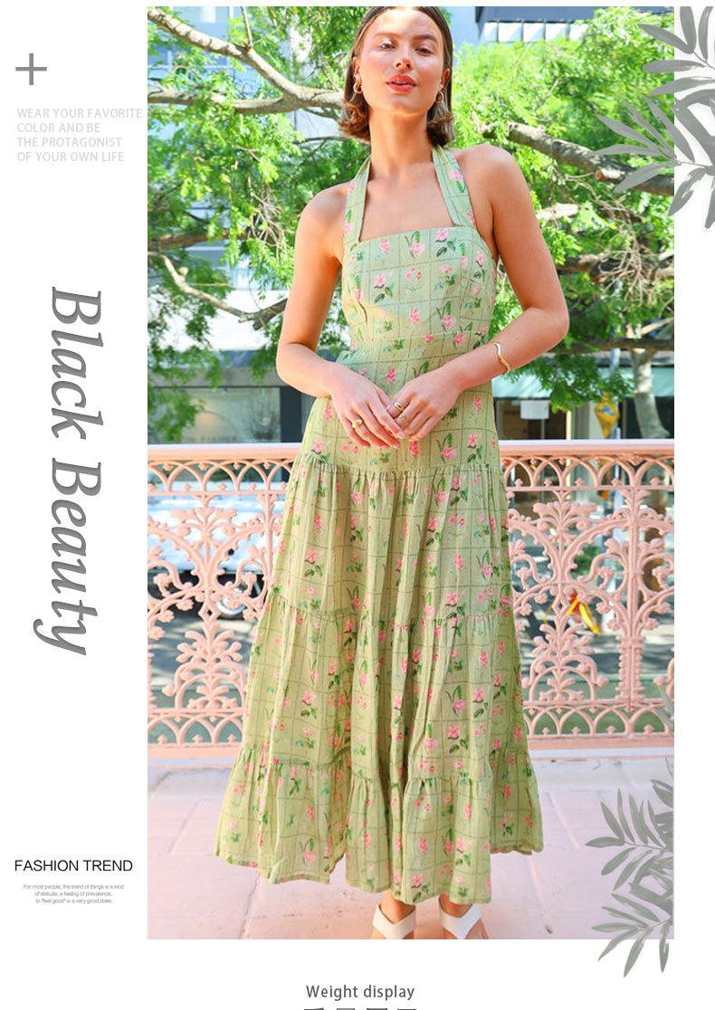 Vestido de cuello sin mangas estampado dulce y elegante de estilo europeo y americano transfronterizo 2025 Vestido sexy de línea A con espalda descubierta grande para mujer
