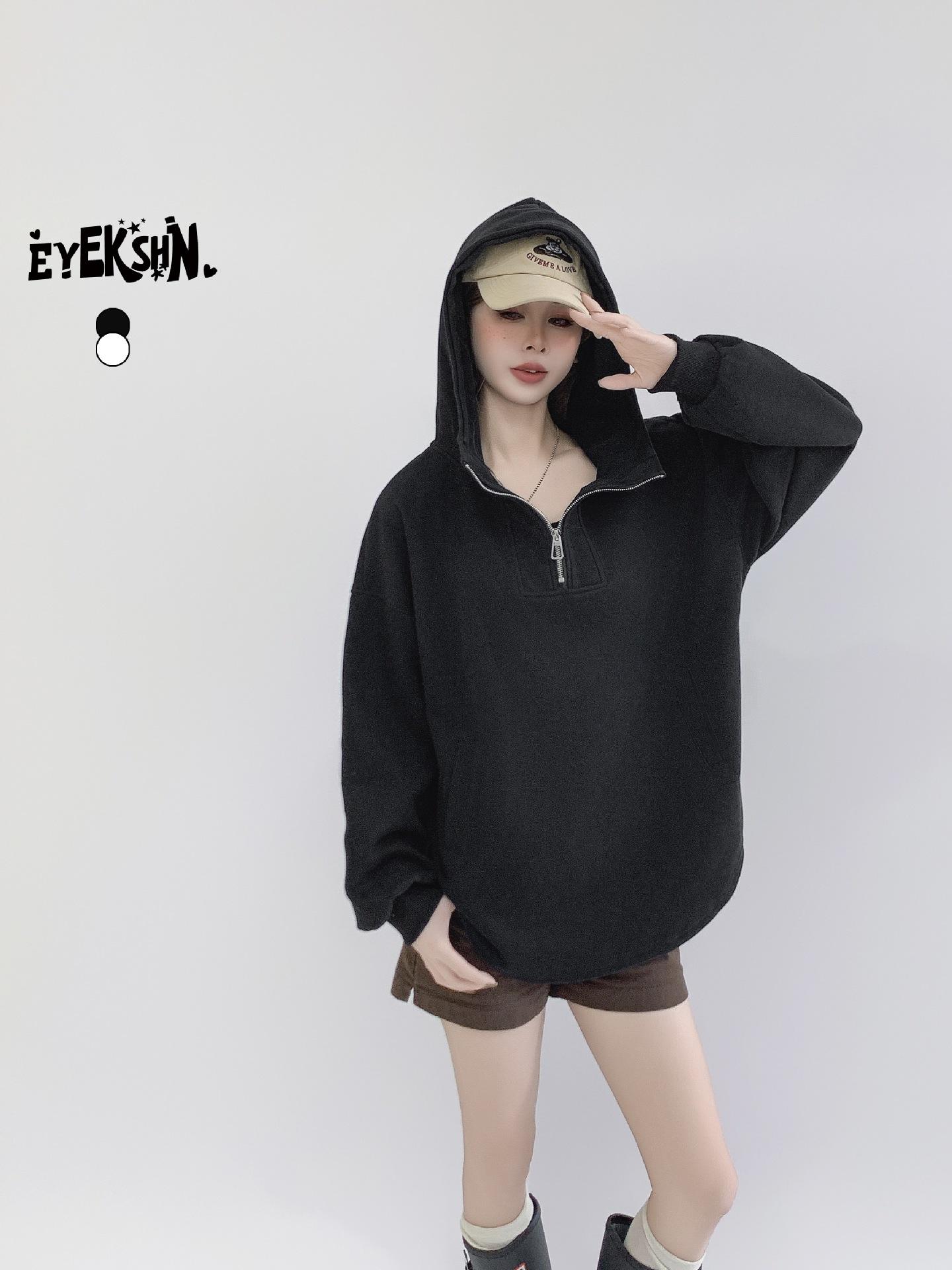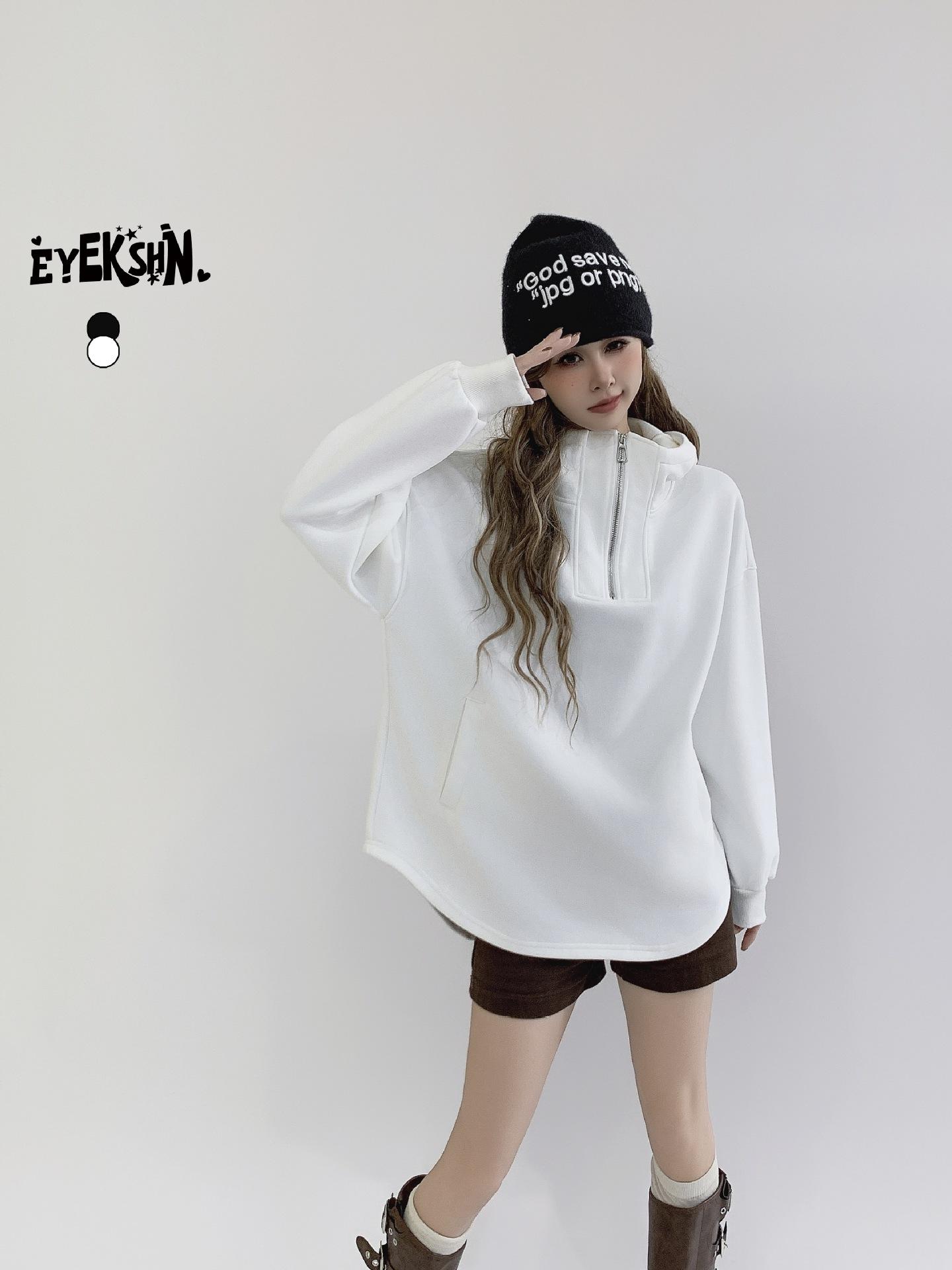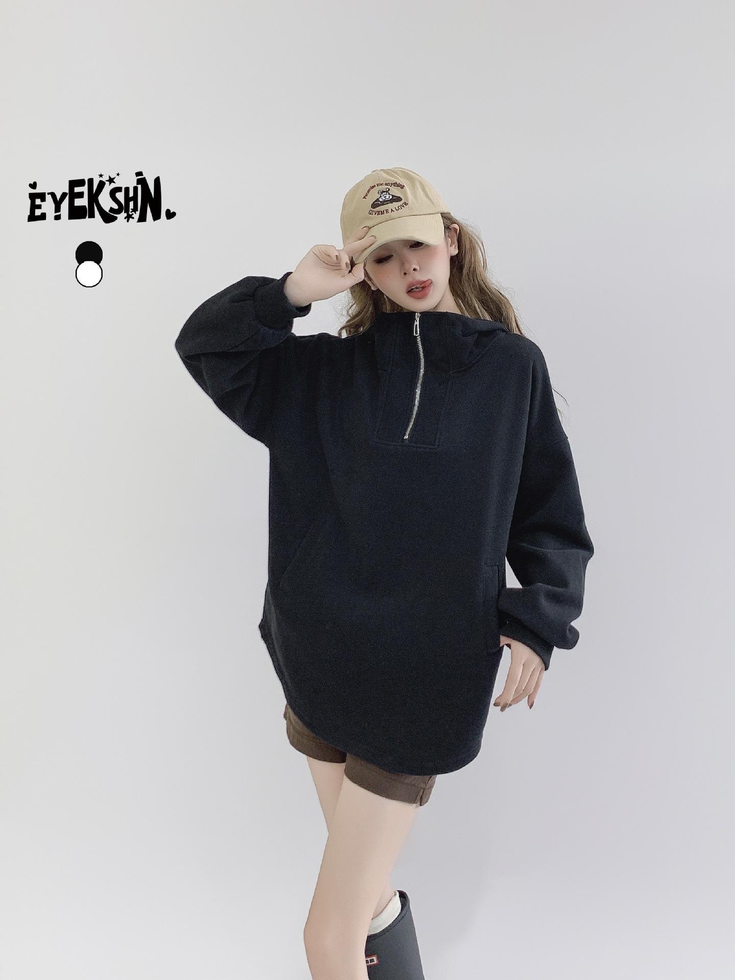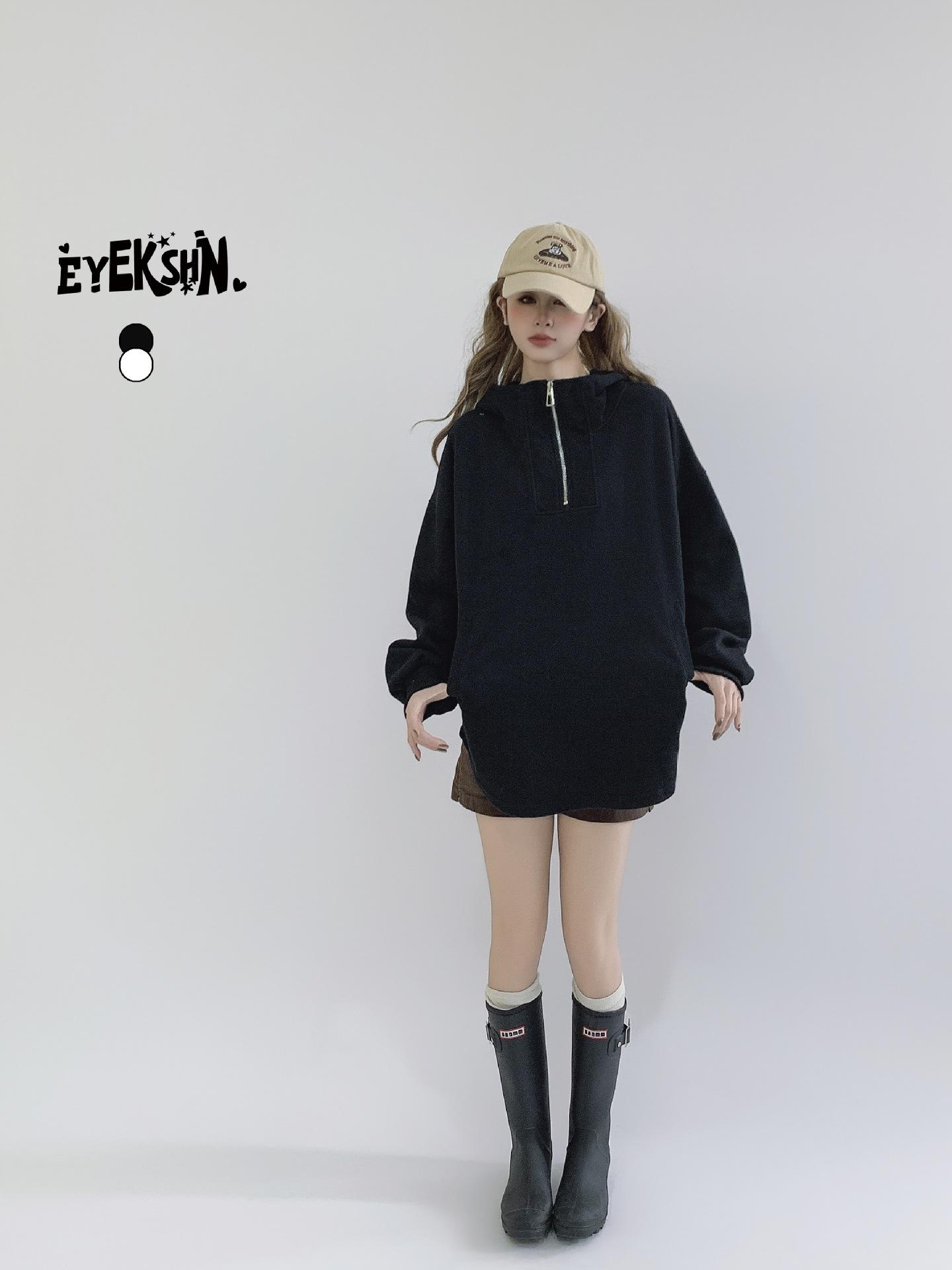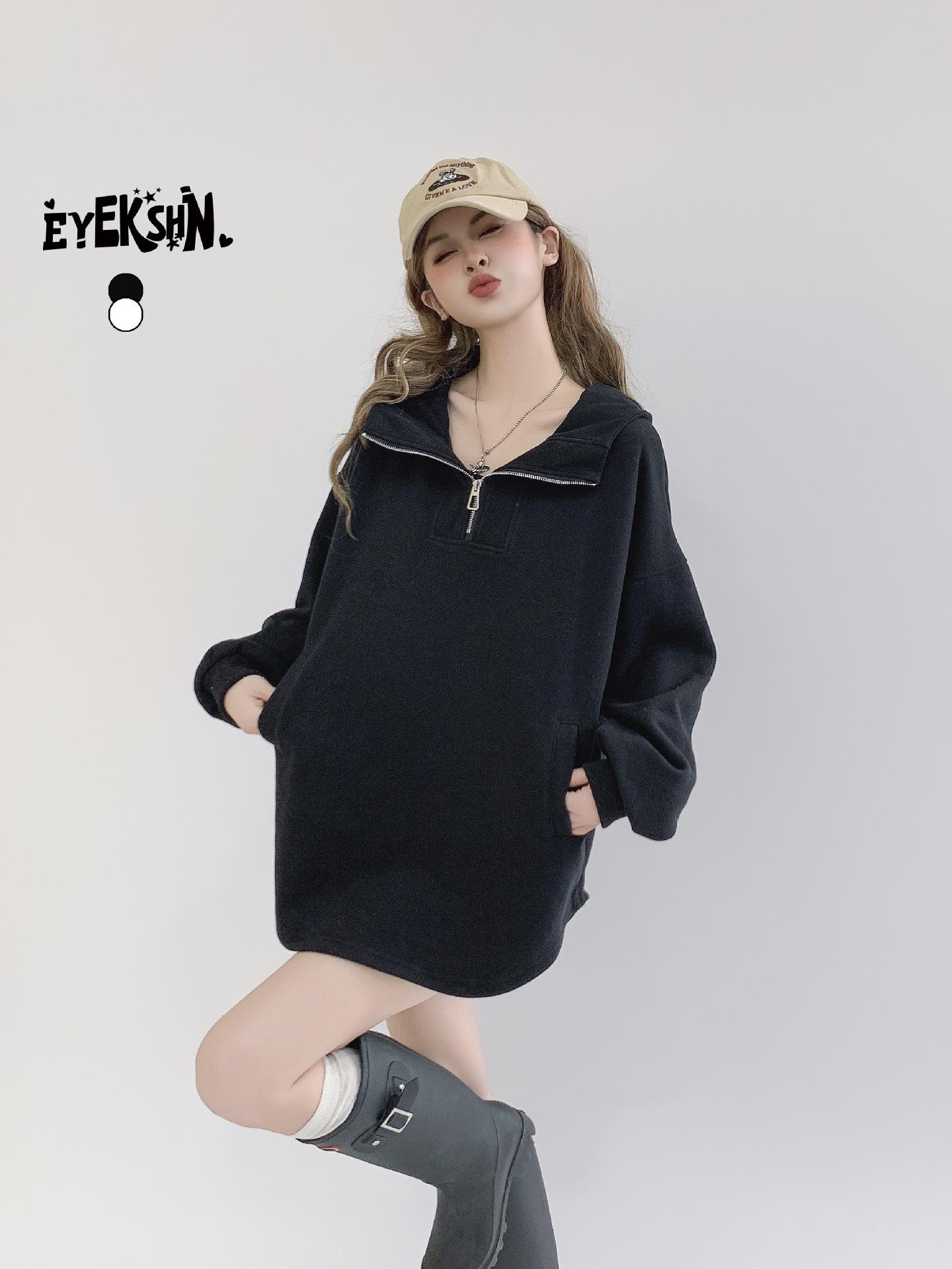 Jimo moda coreana abrigo largo con capucha y media cremallera europea nuevo otoño 2024 abrigo holgado con forro polar