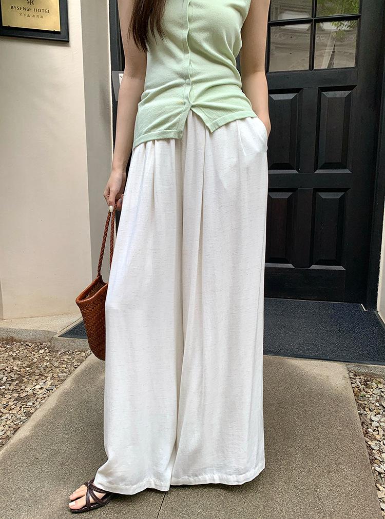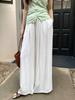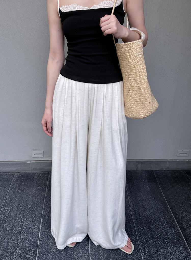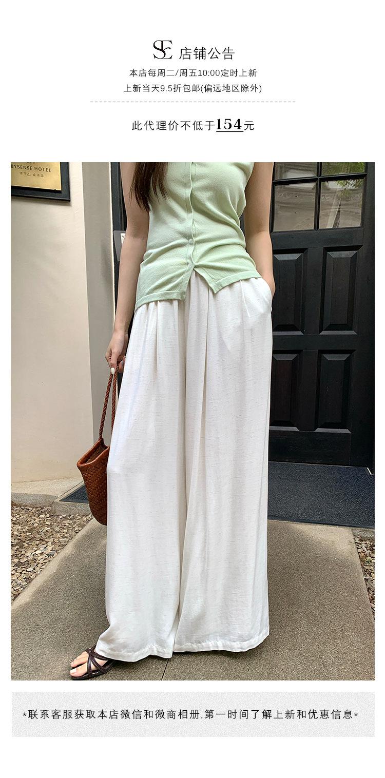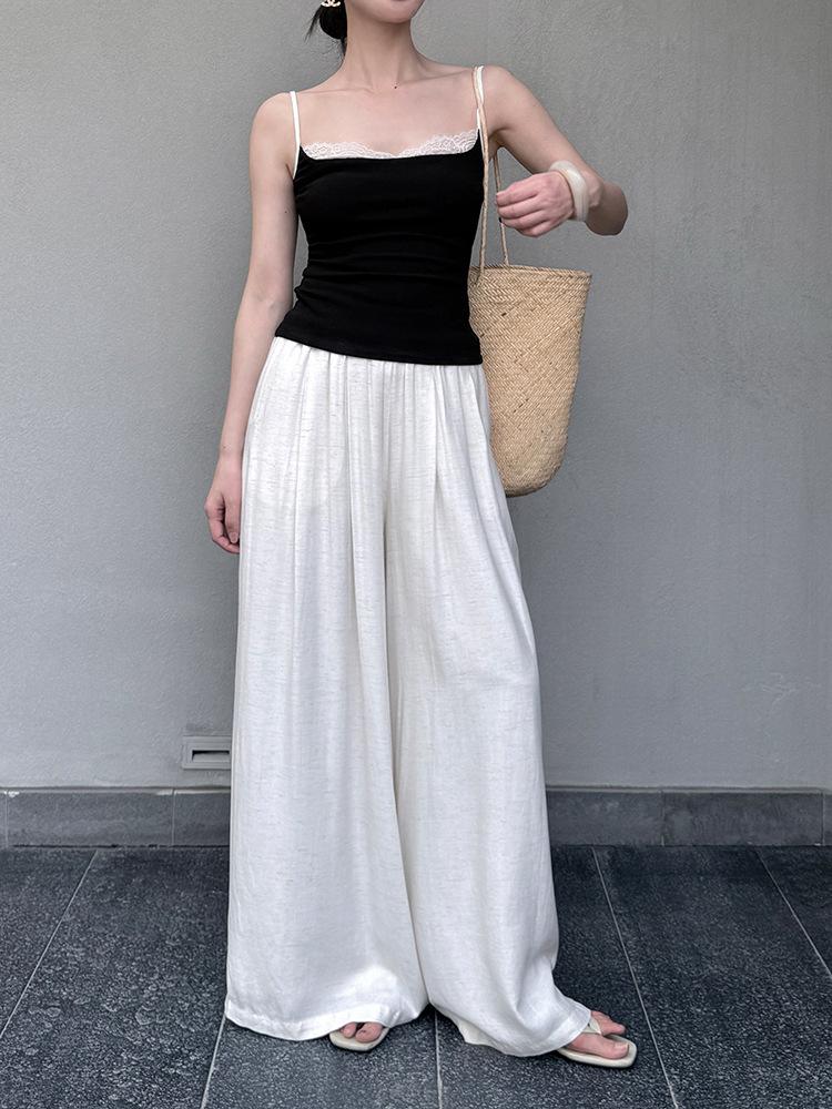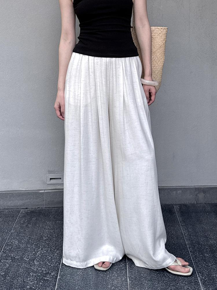 Xiuxi 2025 Verano Elegante Combinable Cintura Alta Lino Casual Recto Pierna Ancha Pantalones Casuales de Mujer 85177