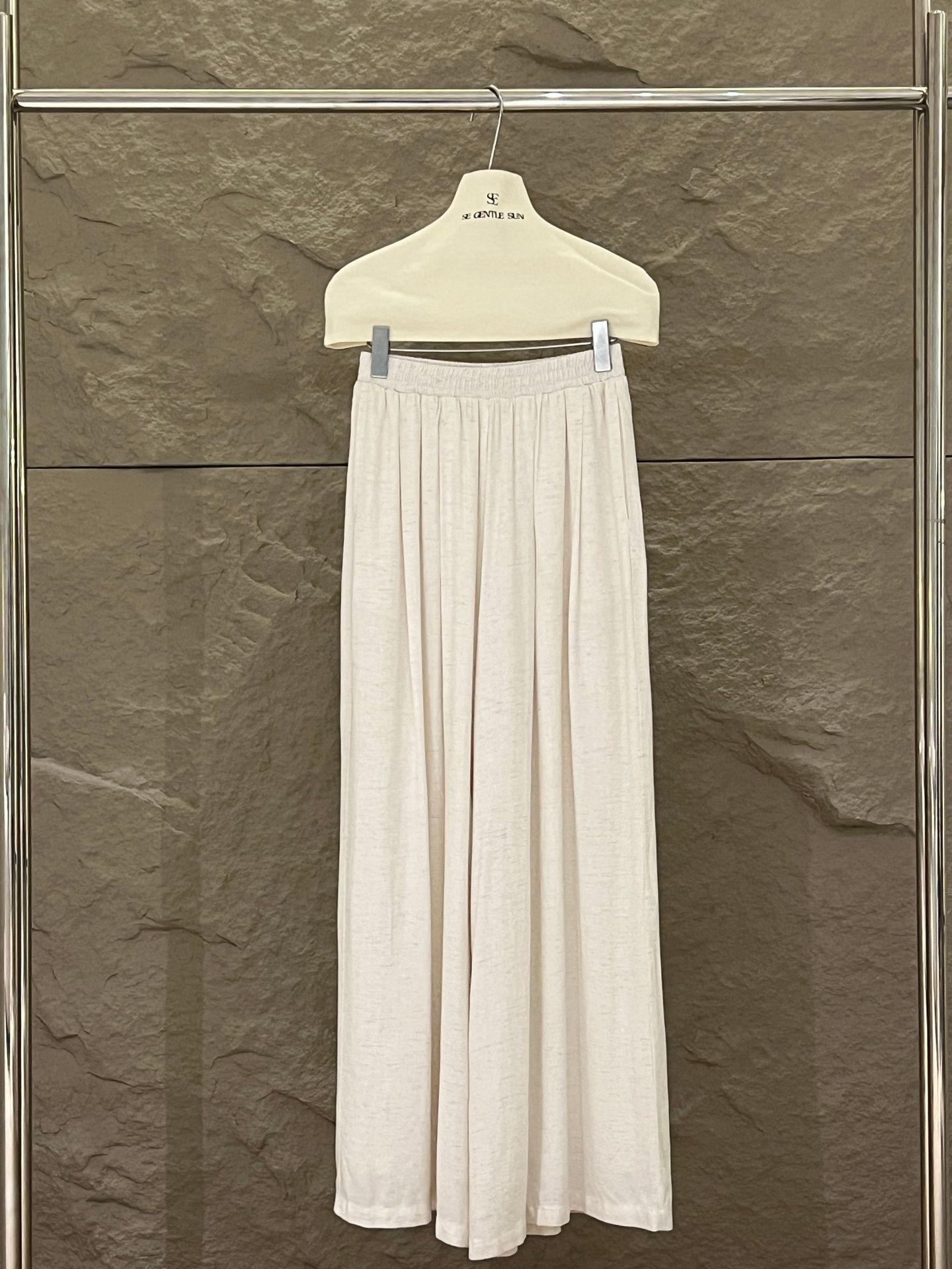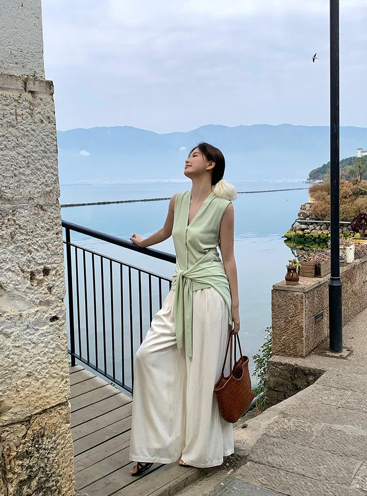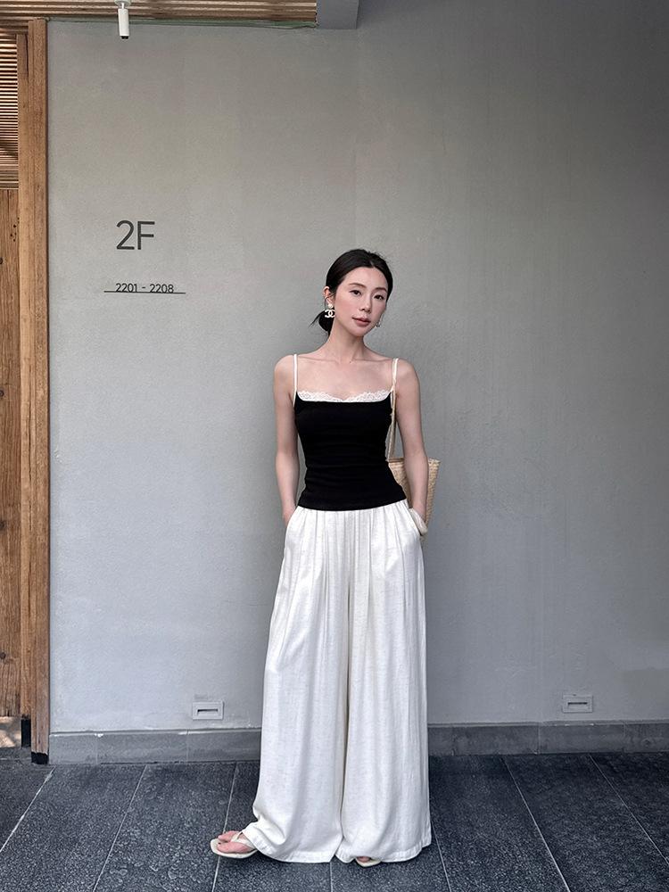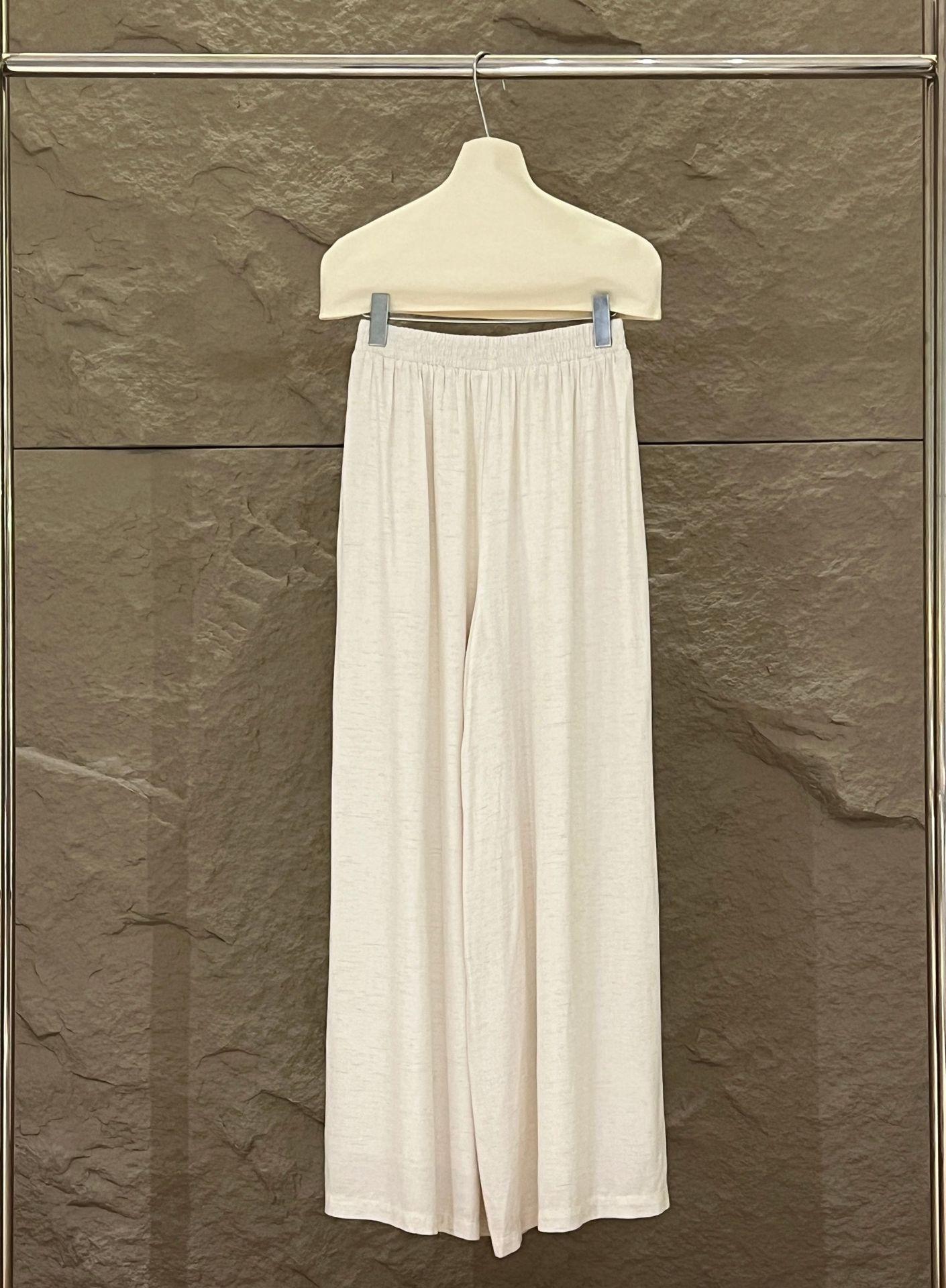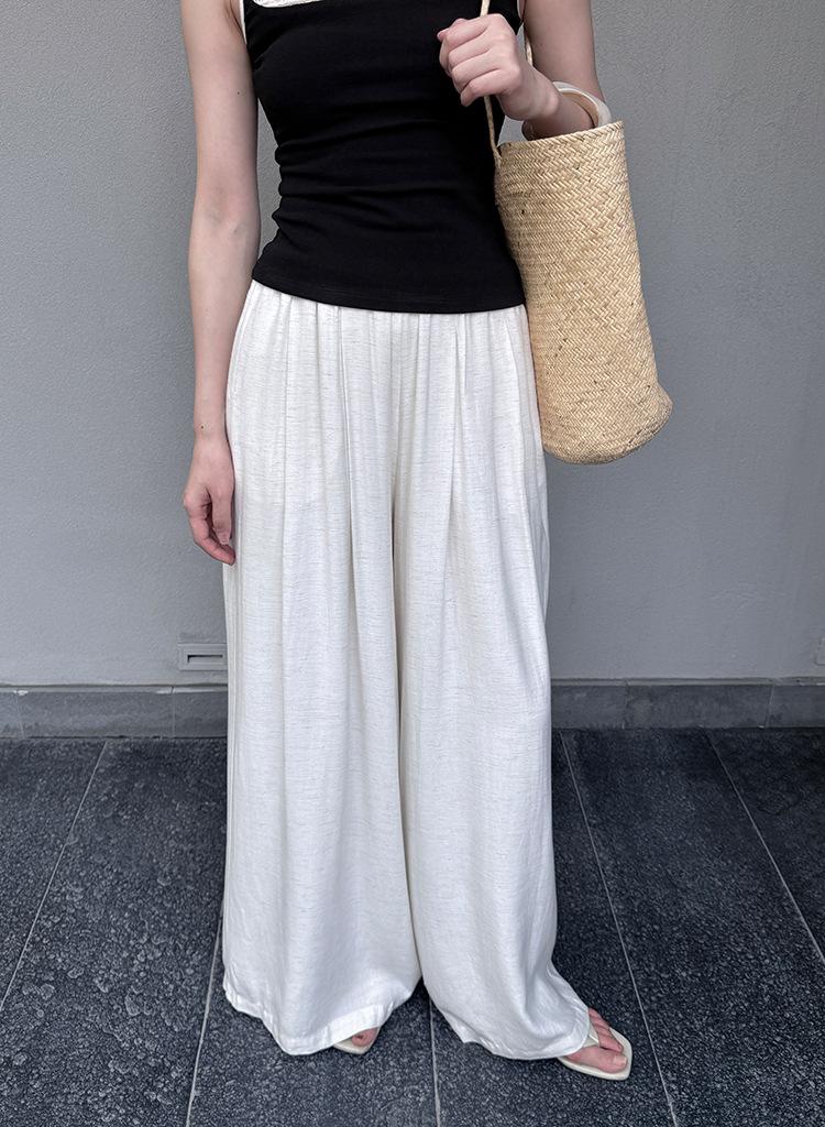 Xiuxi 2025 Verano Elegante Combinable Cintura Alta Lino Casual Recto Pierna Ancha Pantalones Casuales de Mujer 85177