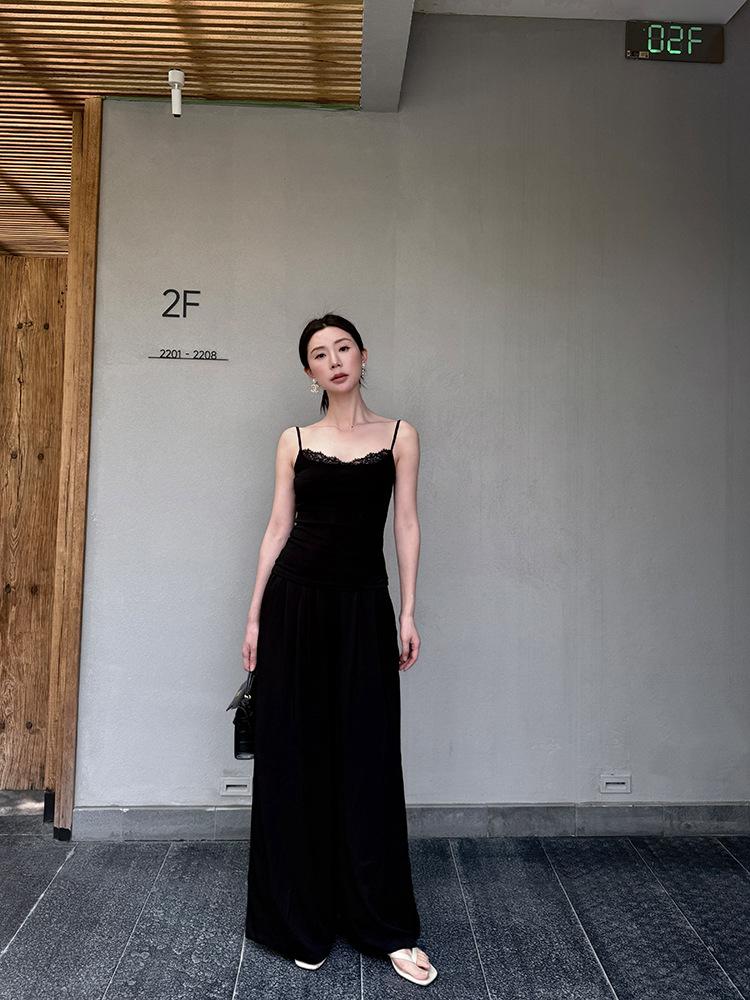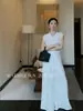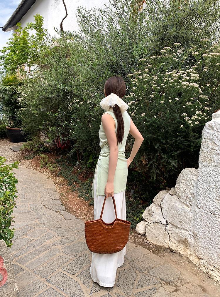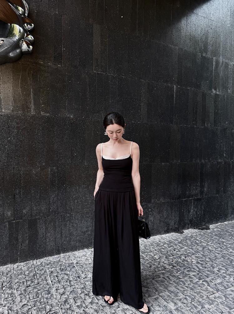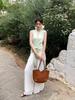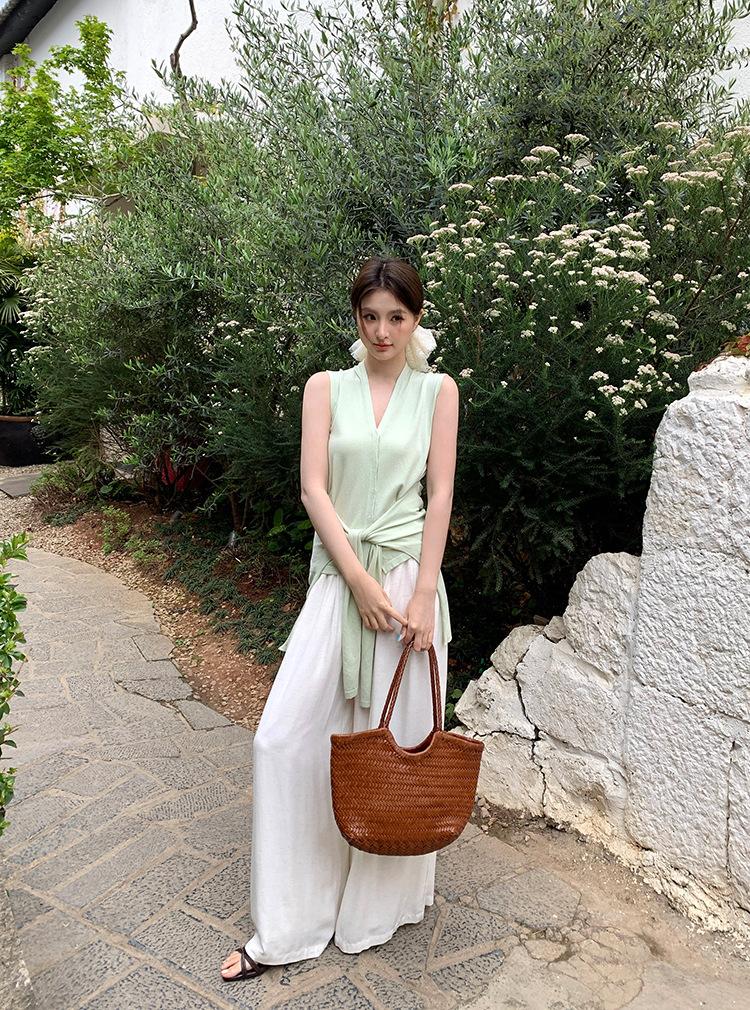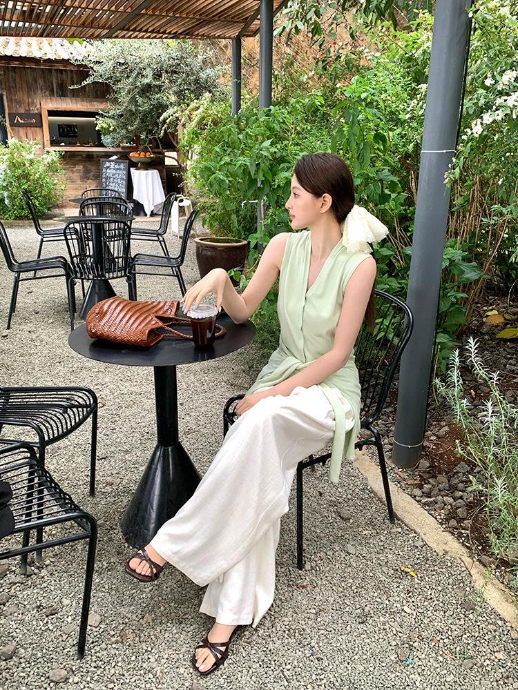 Xiuxi 2025 Verano Elegante Combinable Cintura Alta Lino Casual Recto Pierna Ancha Pantalones Casuales de Mujer 85177