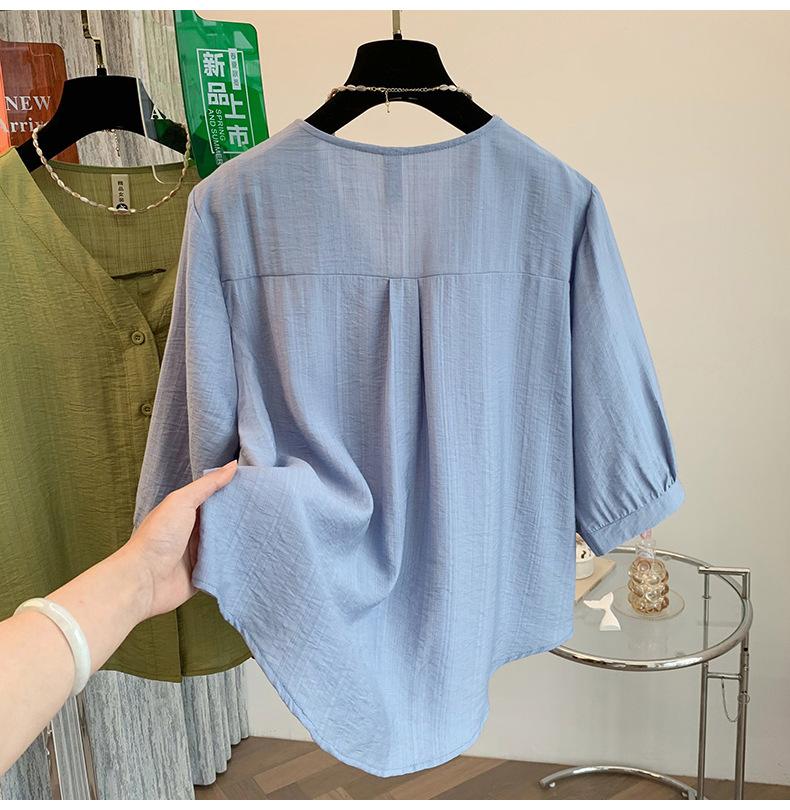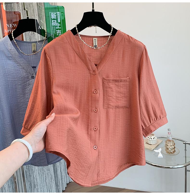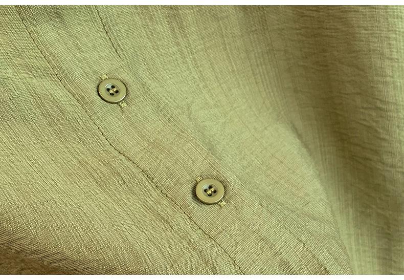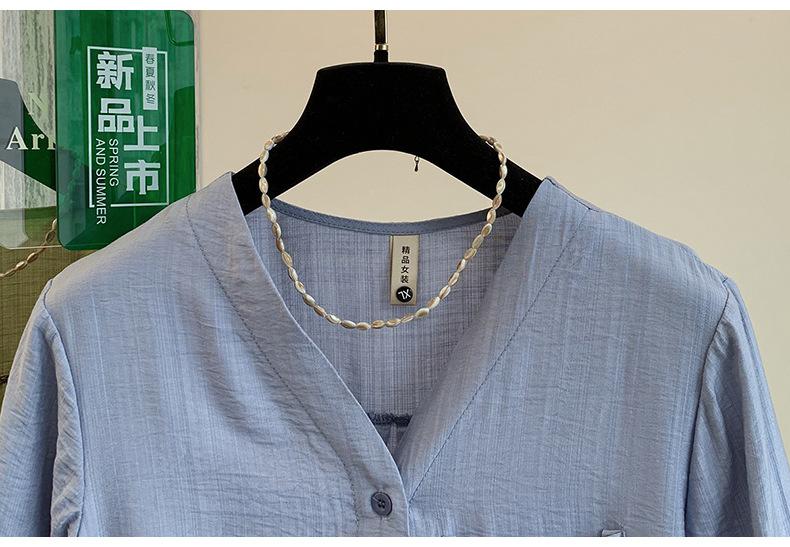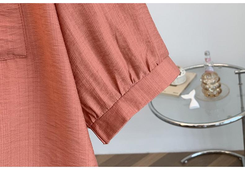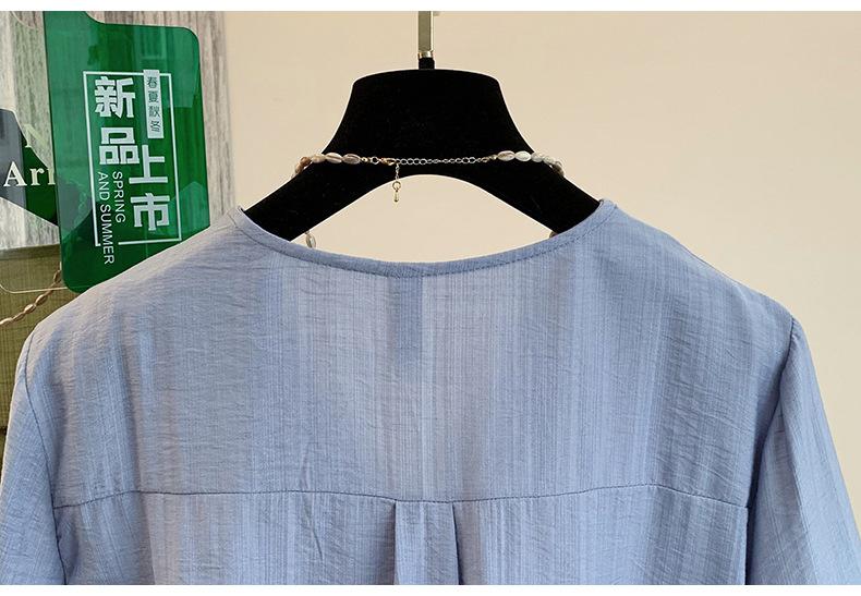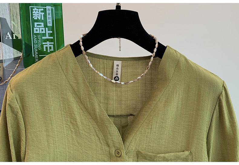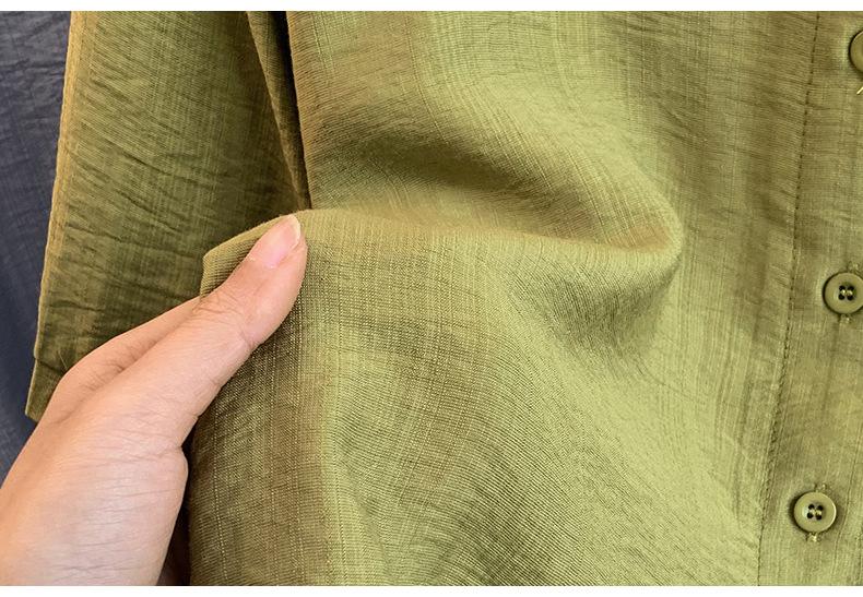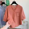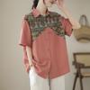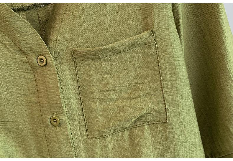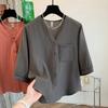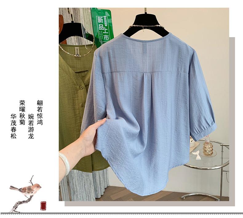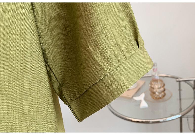 Camisa de Verano de Algodón Lino de Manga Corta para Mujer 2025 Holgada de Manga Media Artística Combinable Color Sólido Top Camisa Ropa de Mujer para Madre