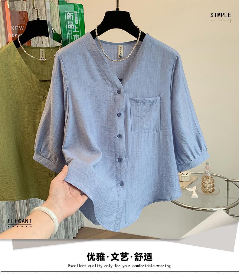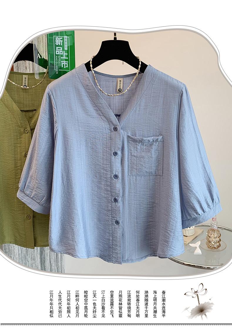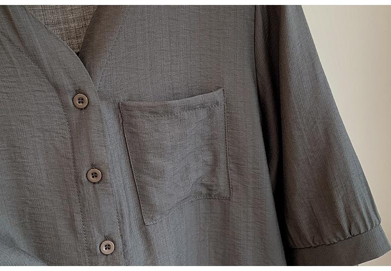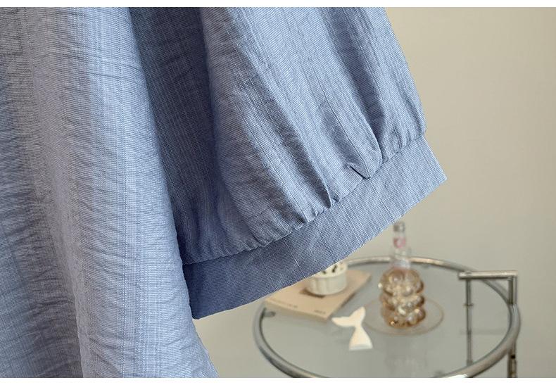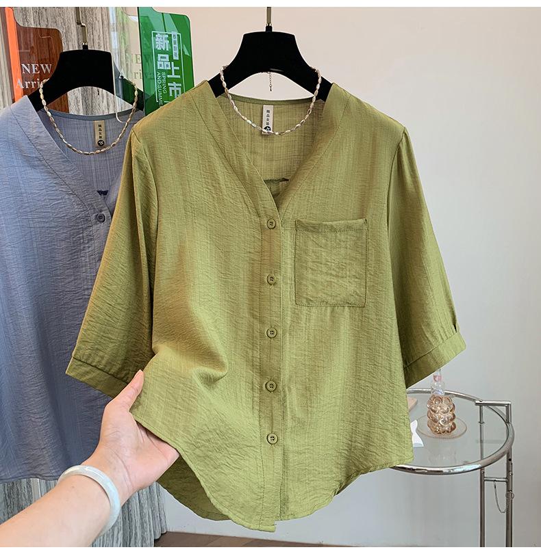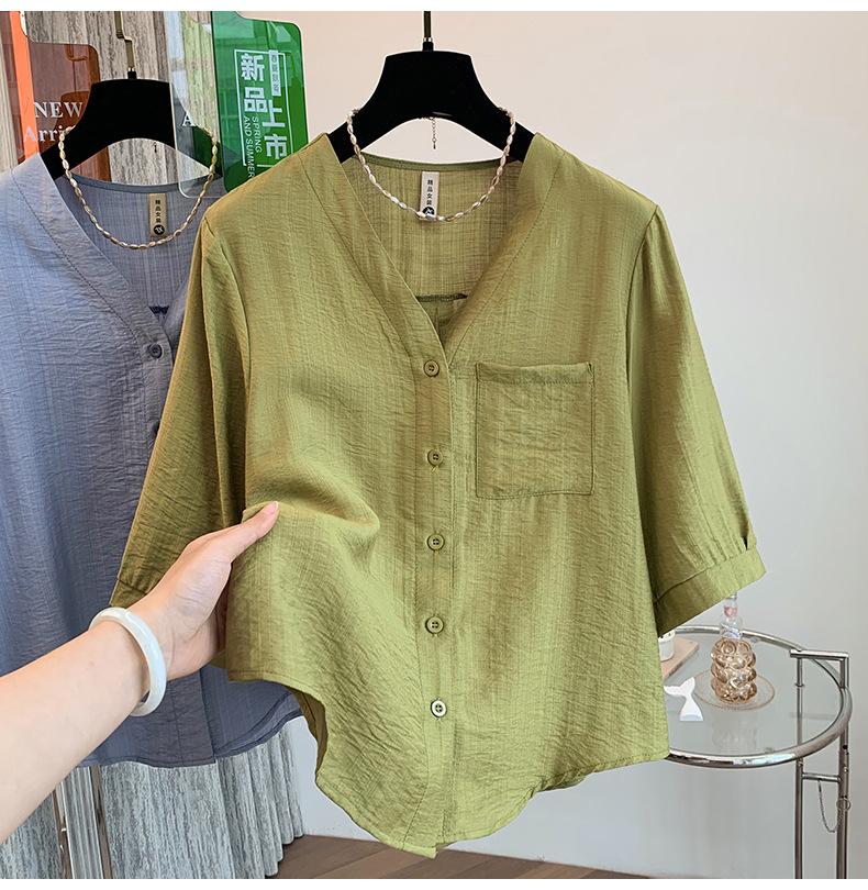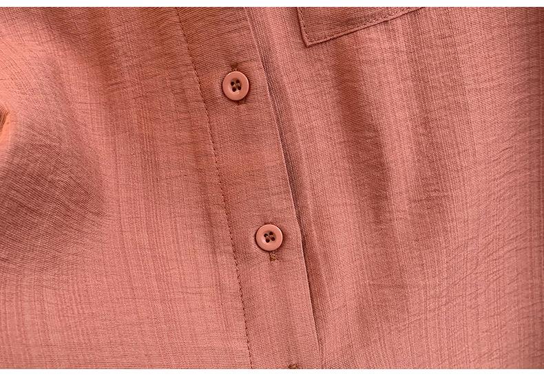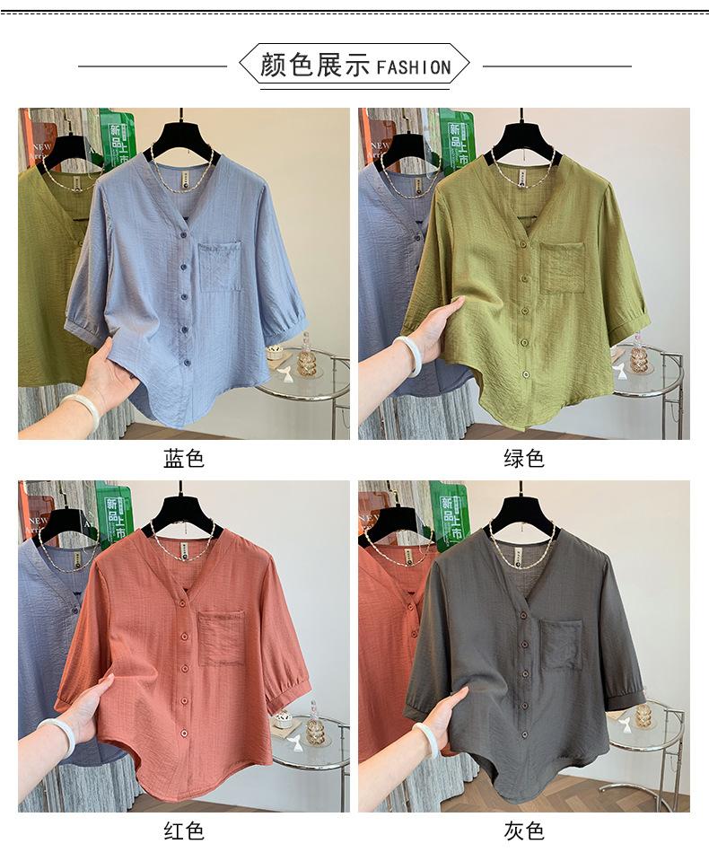 Camisa de Verano de Algodón Lino de Manga Corta para Mujer 2025 Holgada de Manga Media Artística Combinable Color Sólido Top Camisa Ropa de Mujer para Madre