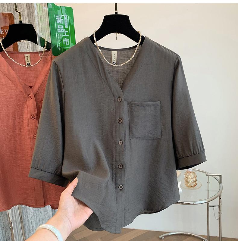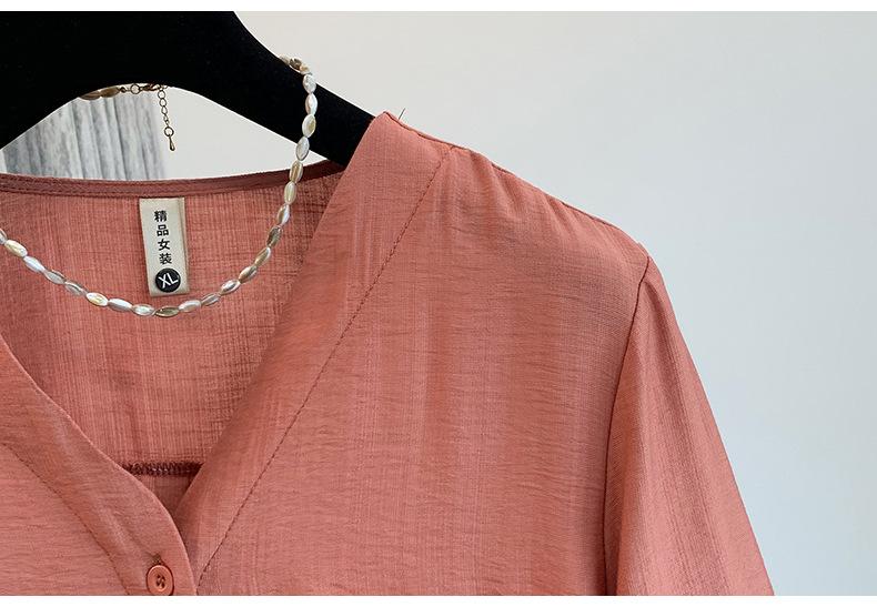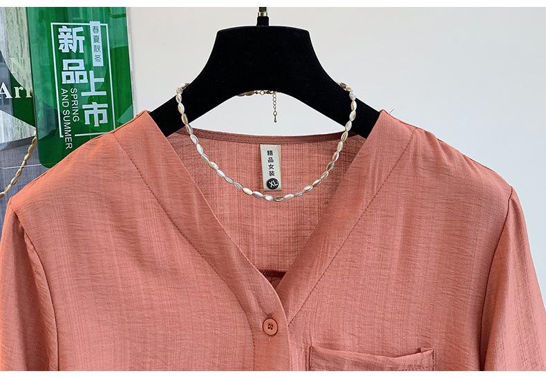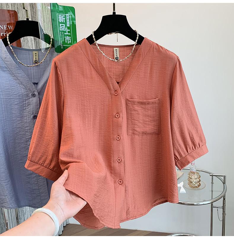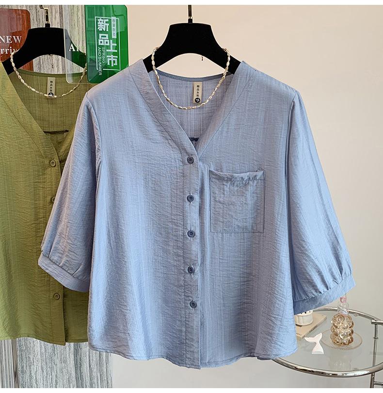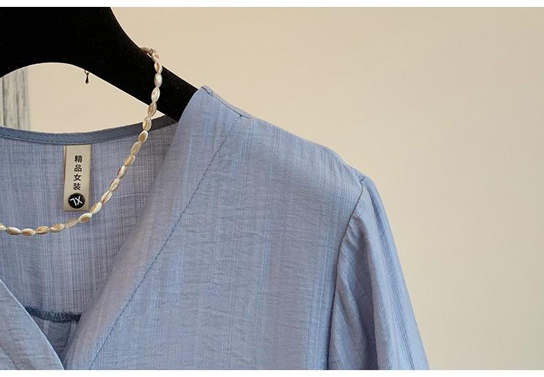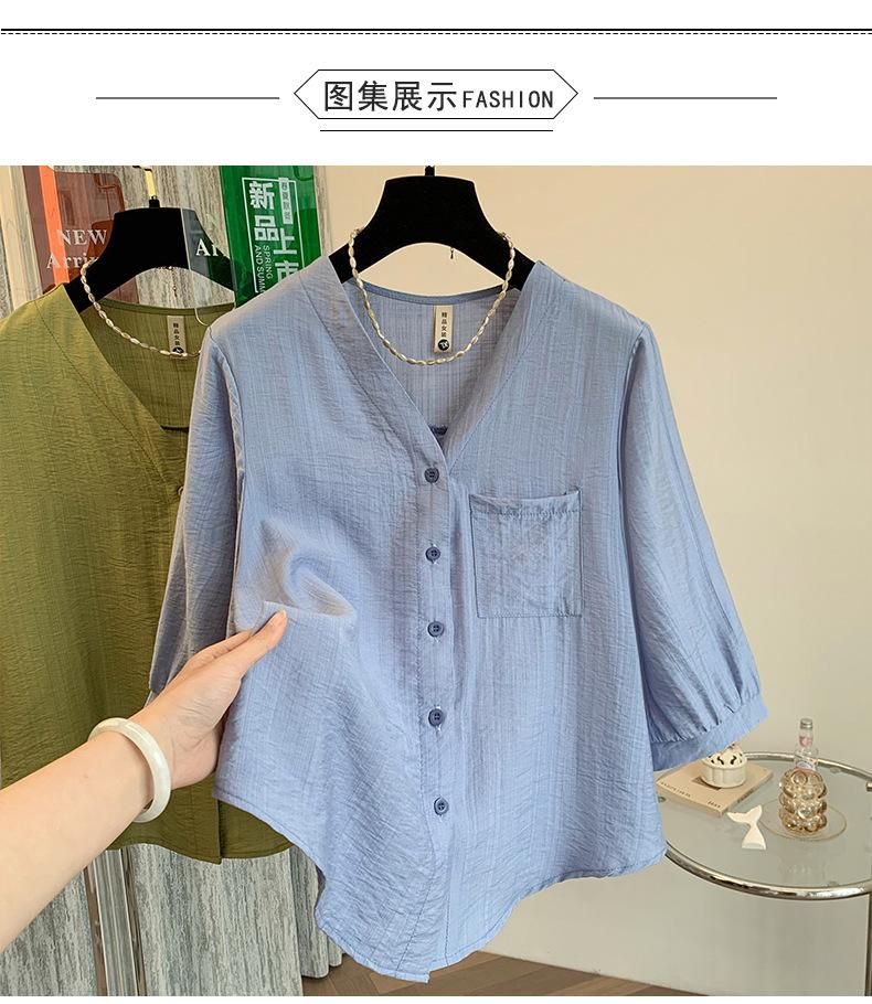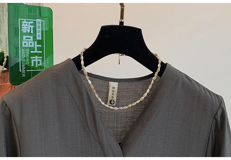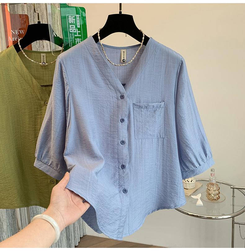 Camisa de Verano de Algodón Lino de Manga Corta para Mujer 2025 Holgada de Manga Media Artística Combinable Color Sólido Top Camisa Ropa de Mujer para Madre