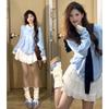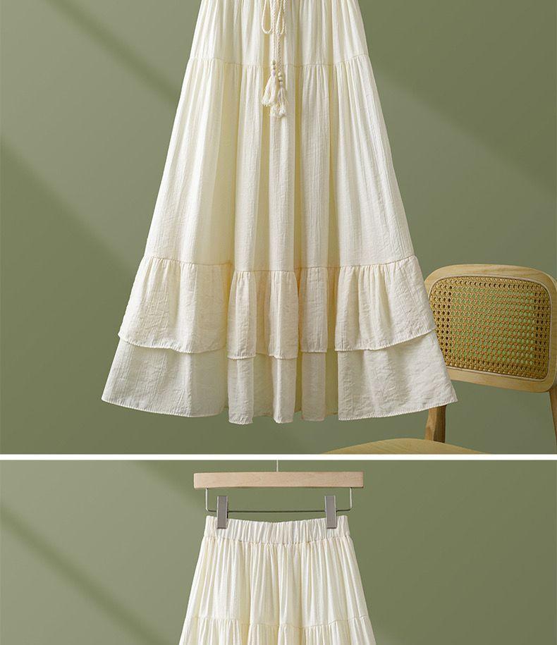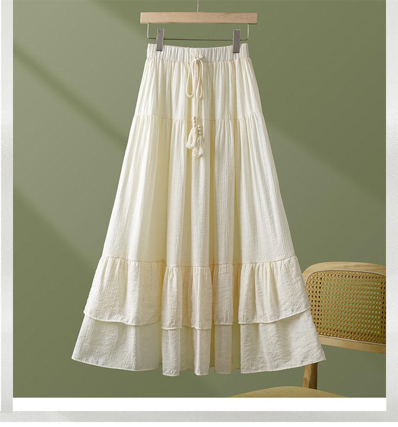 Falda Adelgazante de Primavera para Mujer 2025 Falda de Pastel con Cordones de Encaje con Flecos de Cintura Alta Falda Larga Línea A