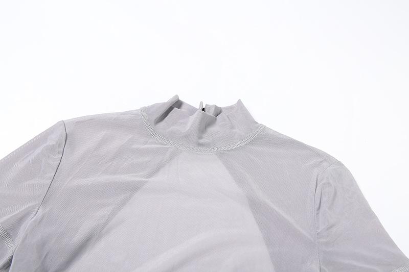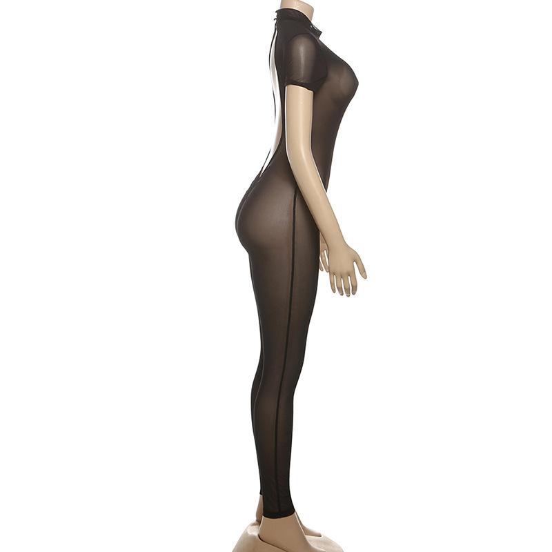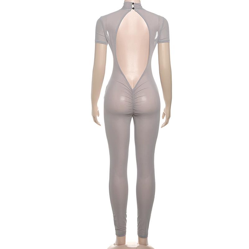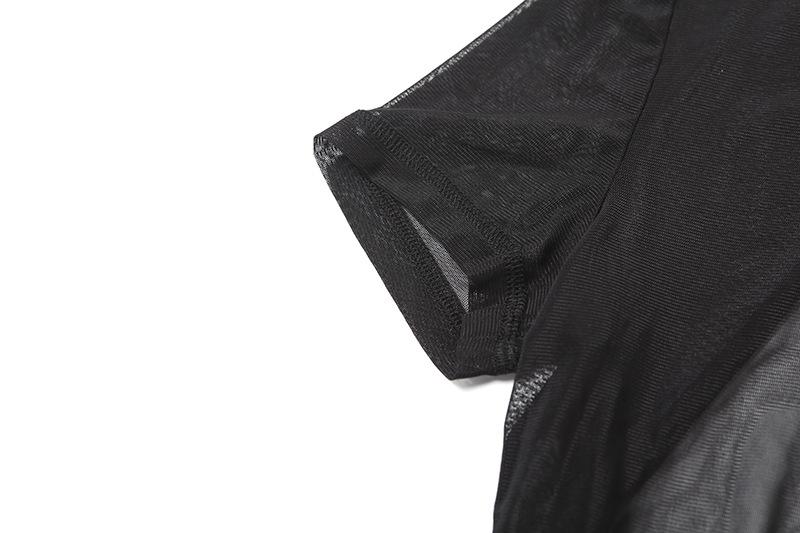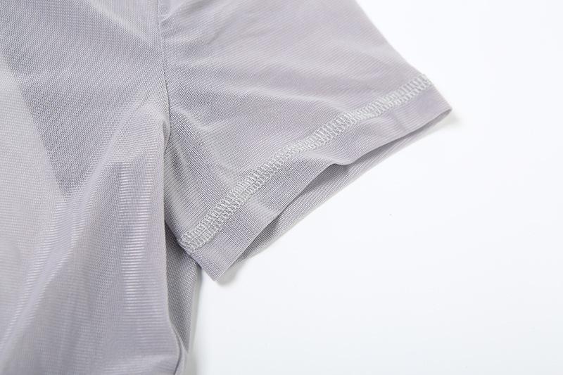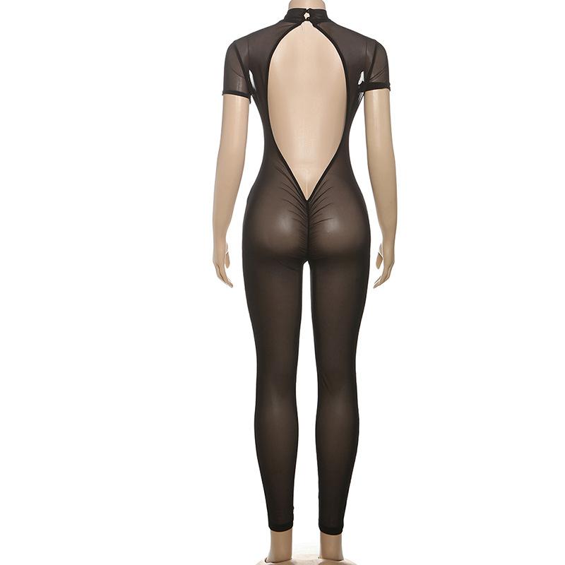 Mono ajustado sexy de manga corta con espalda descubierta de malla transparente estilo europeo y americano transfronterizo 2025 verano nuevo para mujer