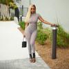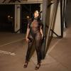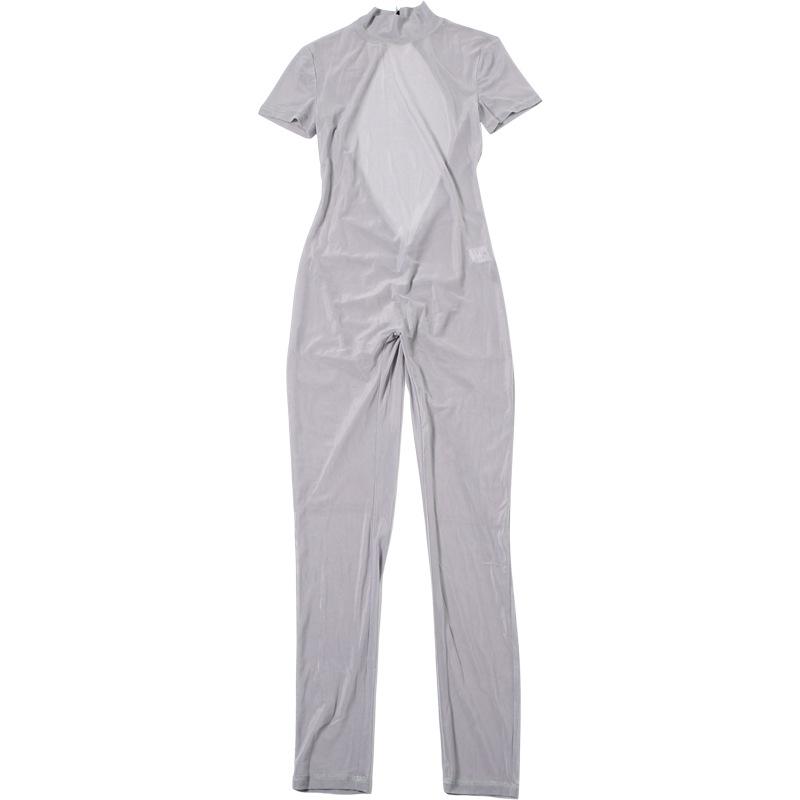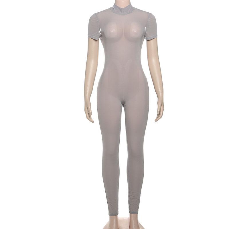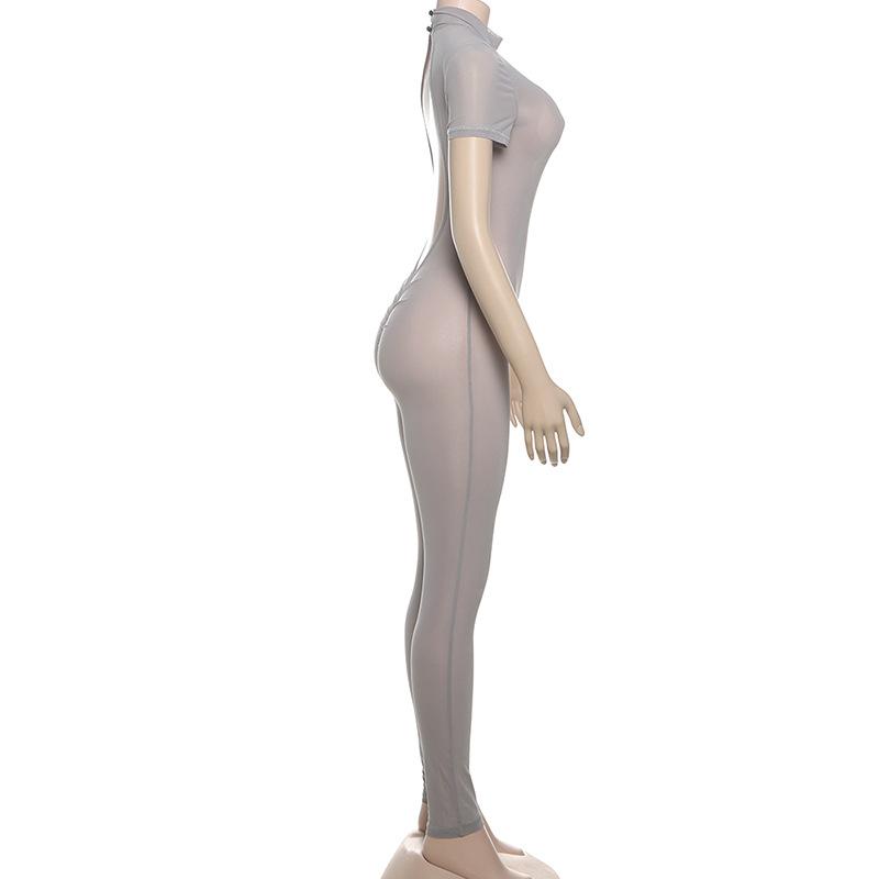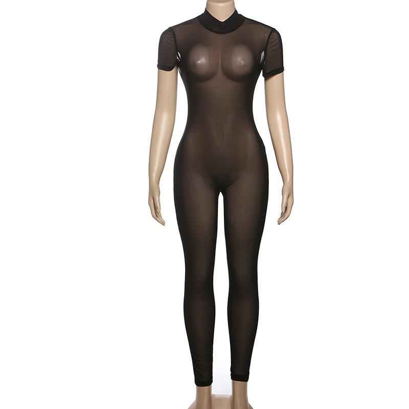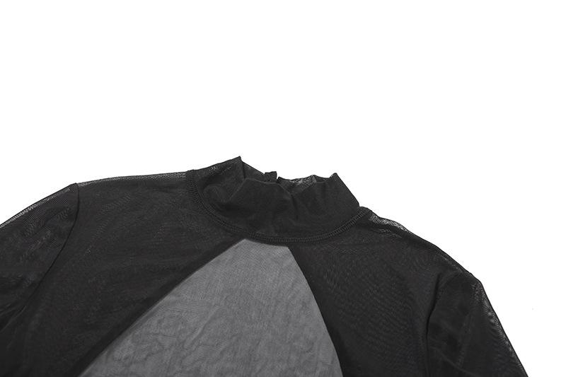 Mono ajustado sexy de manga corta con espalda descubierta de malla transparente estilo europeo y americano transfronterizo 2025 verano nuevo para mujer