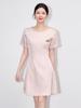 2509611-Vestido Elegante de Gama Alta Elegante de Cuello Redondo Jacquard Rayón Manga Corta Ajustado Nanyou para Mujer Verano Nuevo Estilo