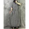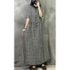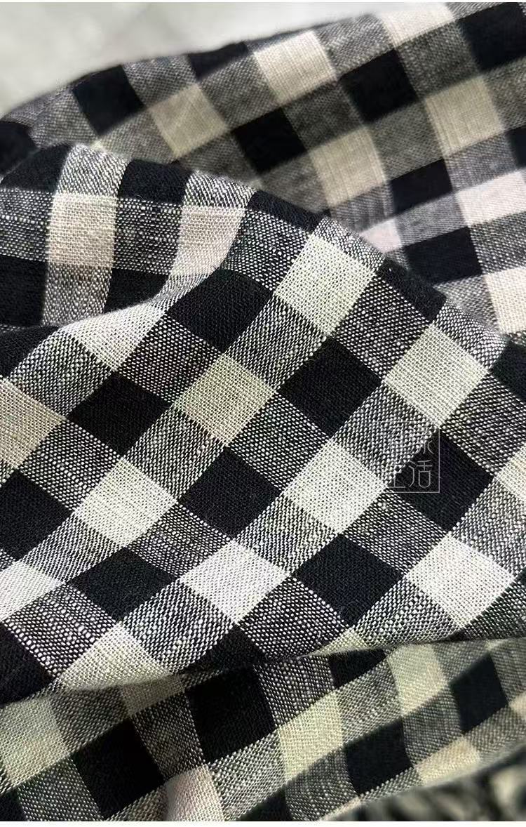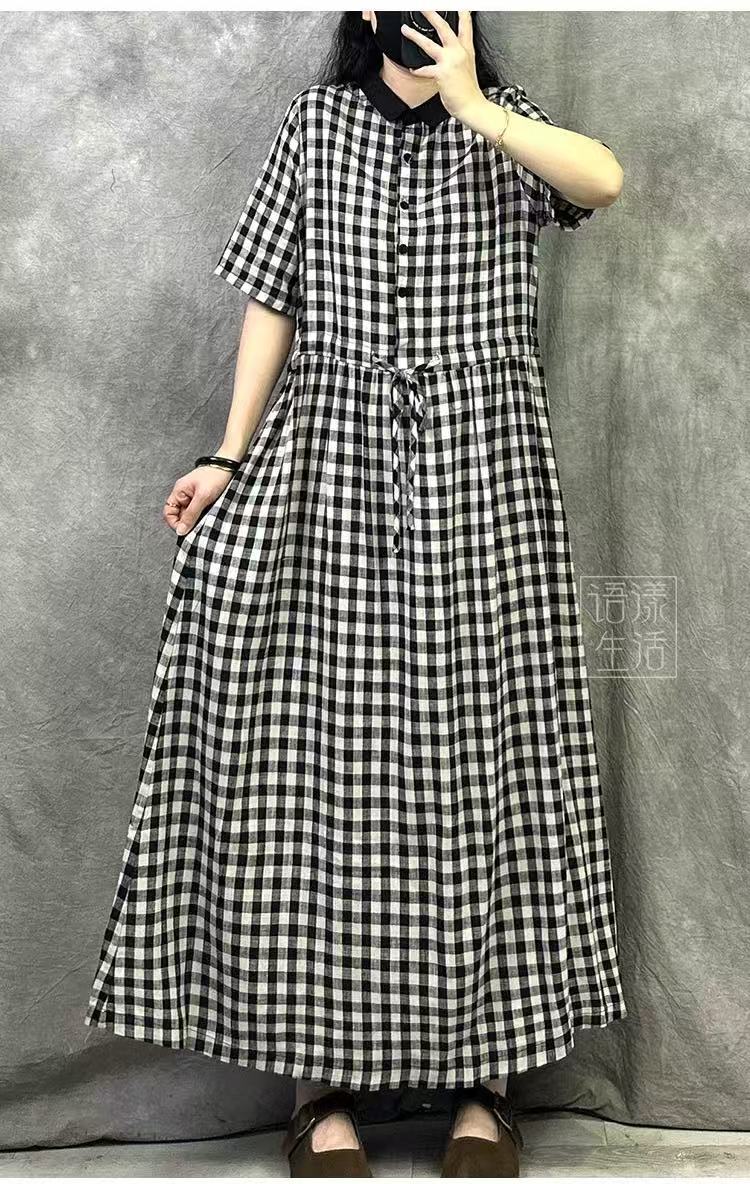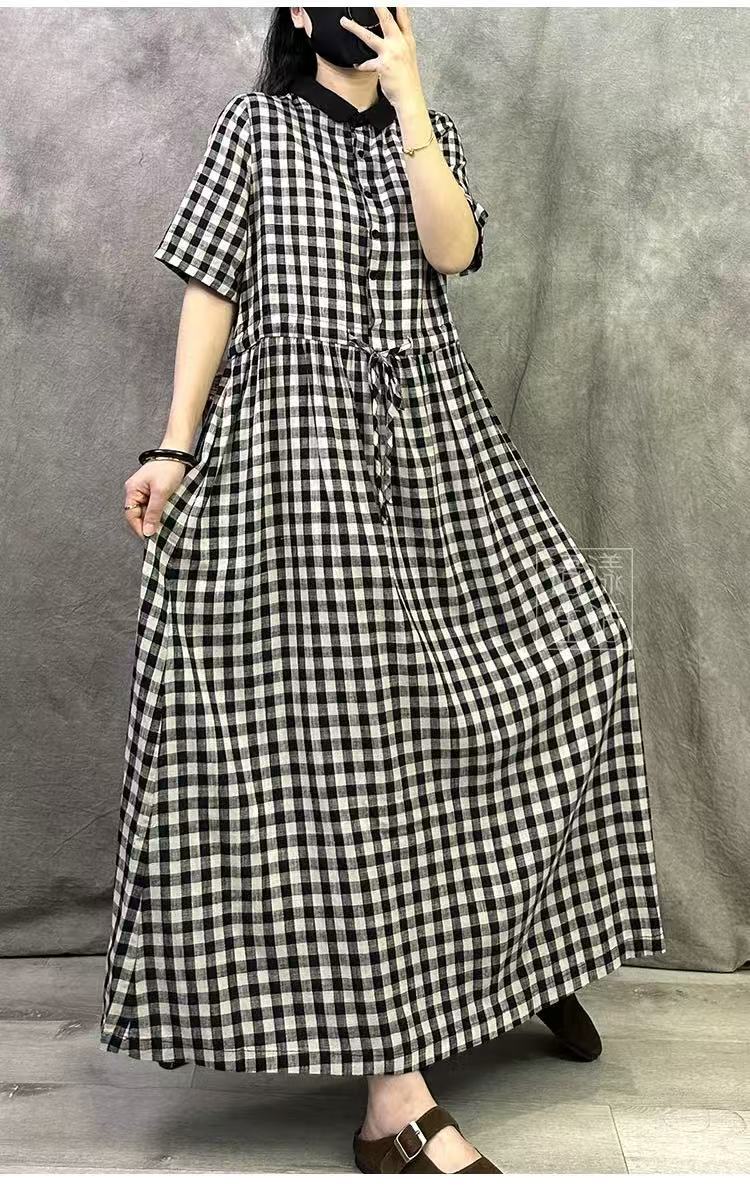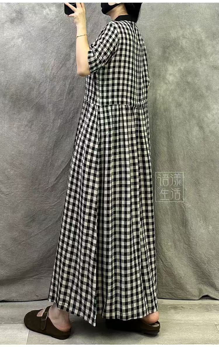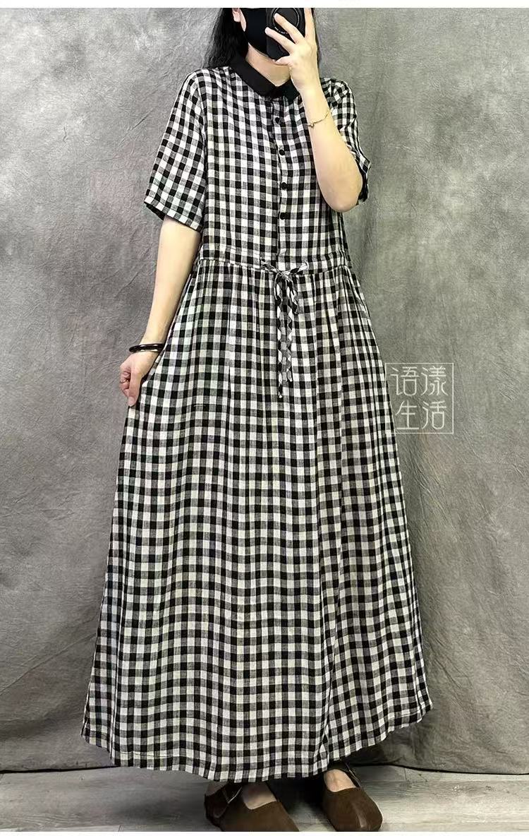 Vestido Retro de Cuadros de Algodón y Lino para Mujer Verano Nuevo 2025 Talla Grande Elegante Look Adelgazante Cintura Lino Falda Larga