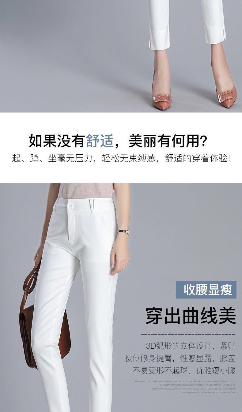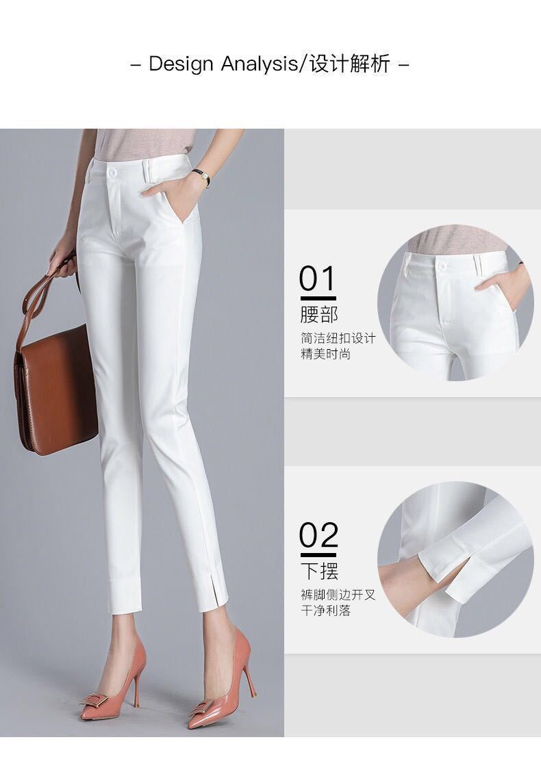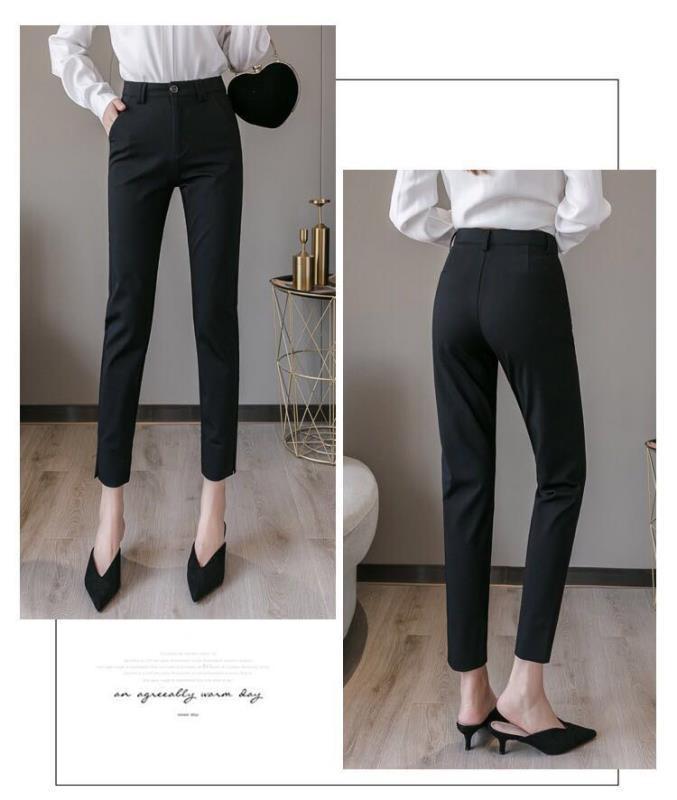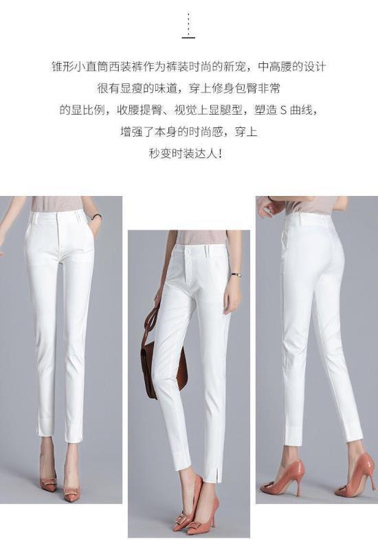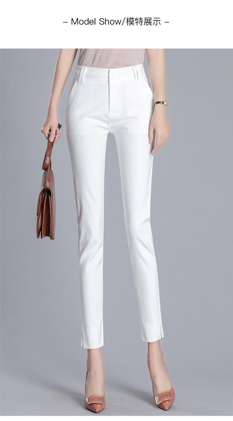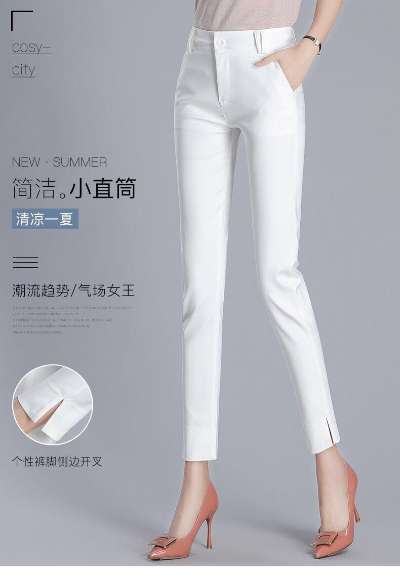 White cropped trousers with slits spring and summer, Black cropped trousers with slits xia, Apricot cropped tr...