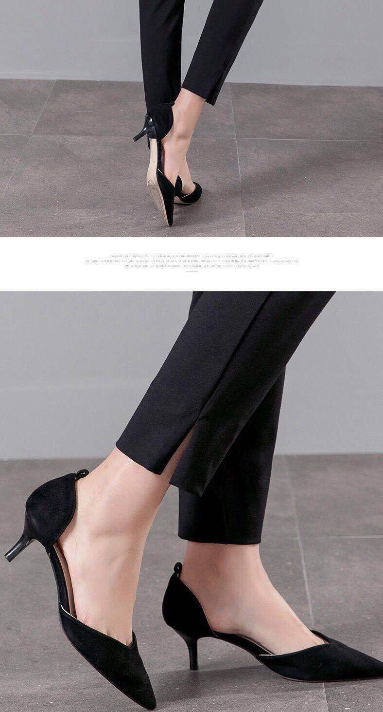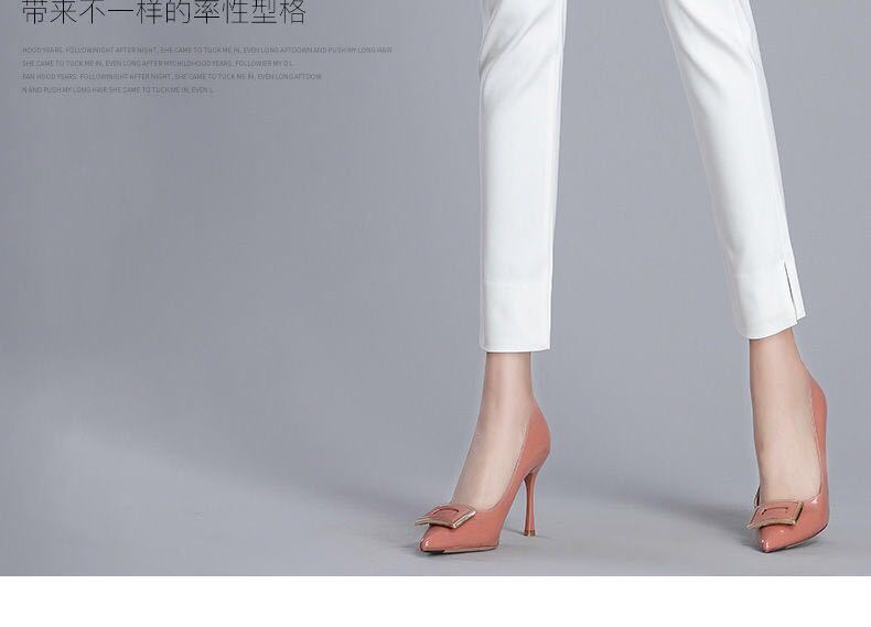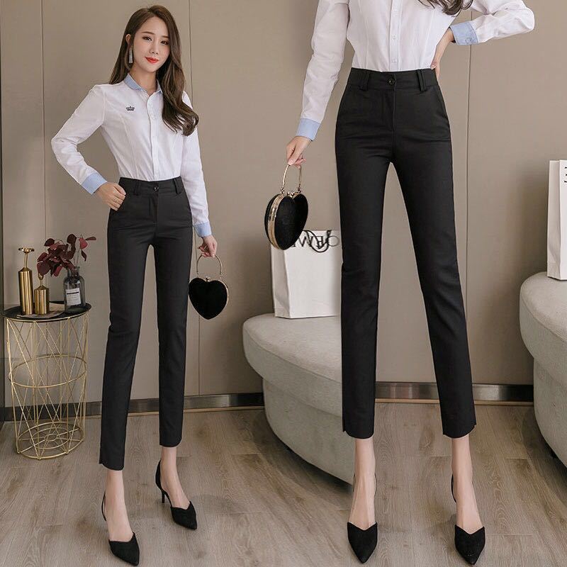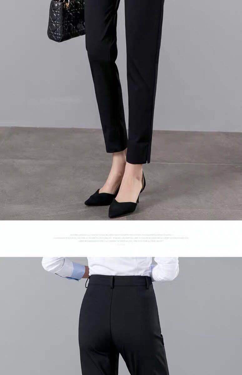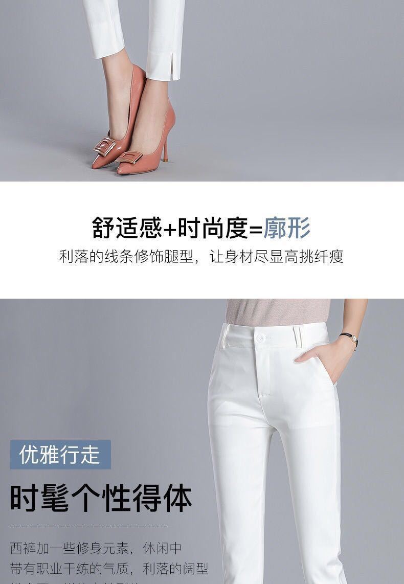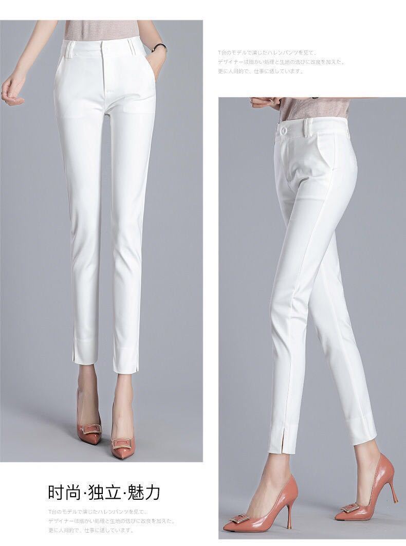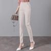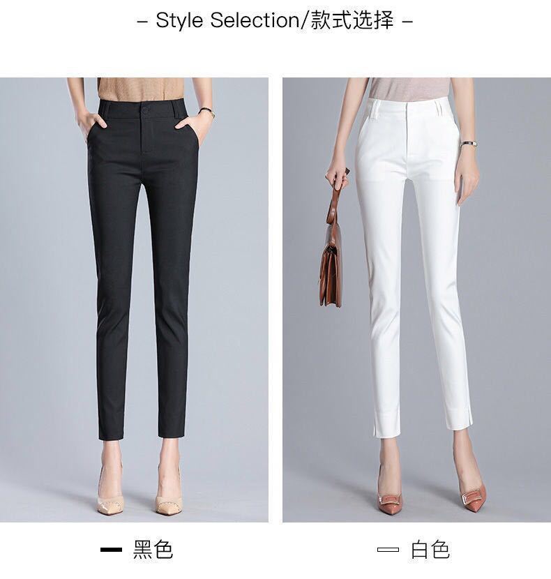 White cropped trousers with slits spring and summer, Black cropped trousers with slits xia, Apricot cropped tr...