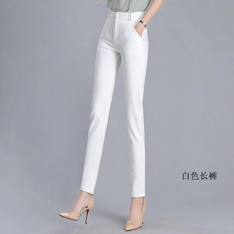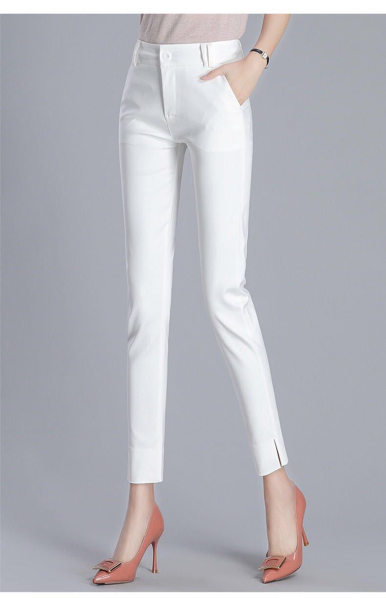 Pantalones blancos adelgazantes de cintura alta 2024 Primavera Verano Otoño Nuevos Pantalones pitillo capri de pierna recta Pantalones de traje casual holgados para mujer