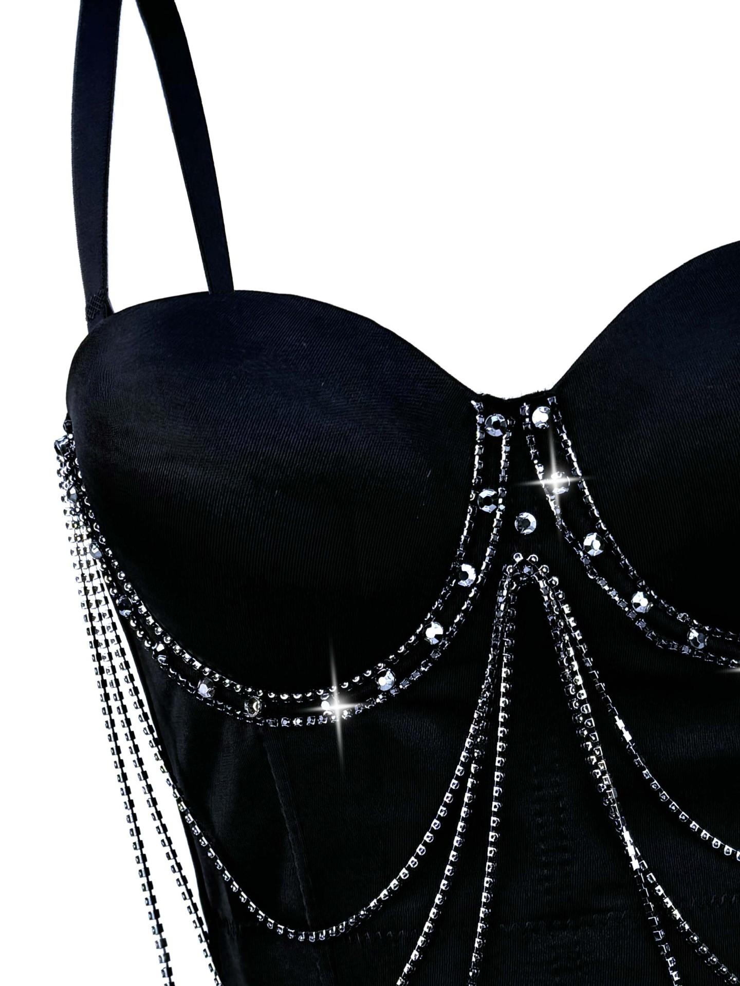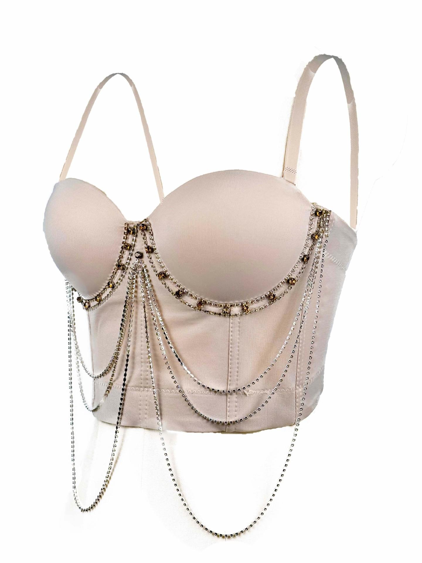Camisola de Cadena con Borlas Transfronteriza Europea y Americana Verano Actuación Escénica Sexy y Elegante Corsé Adelgazante Sujetador con Varillas