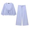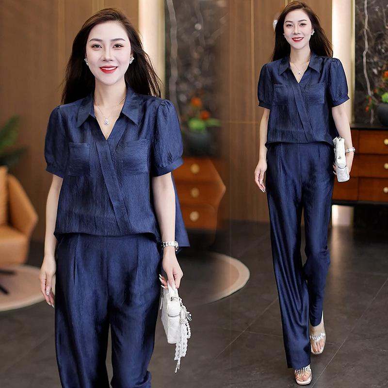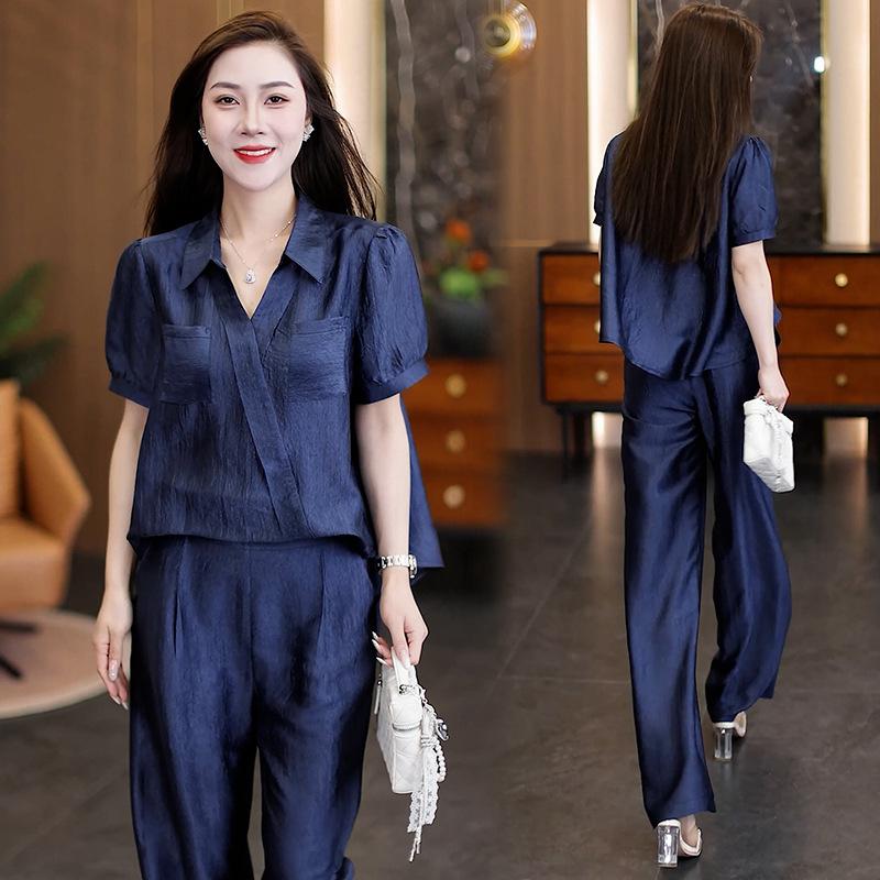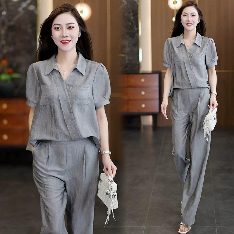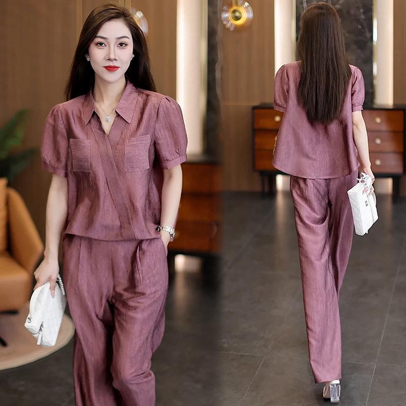 Traje de Moda para Mujer 2025 Verano Nuevo Estilo Diseño Moderno y Elegante Camisa de Manga Corta Pantalones de Pierna Ancha Conjunto Elegante de Dos Piezas