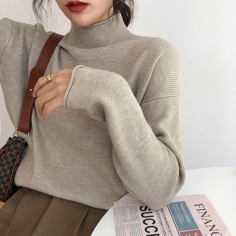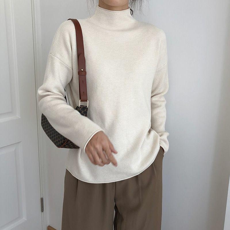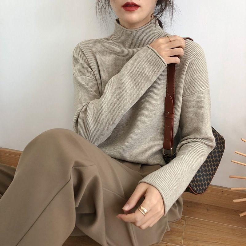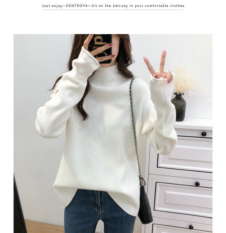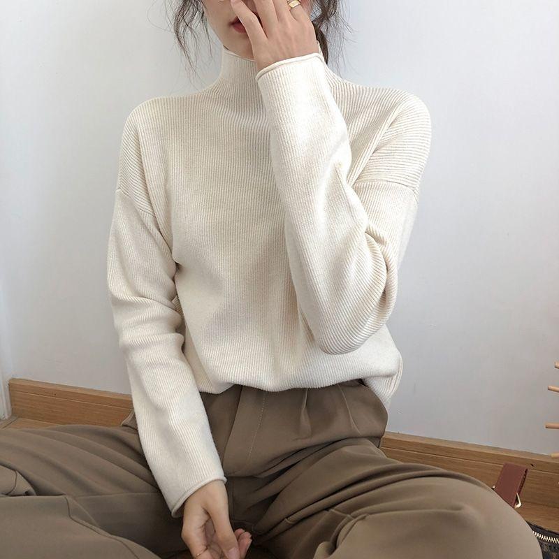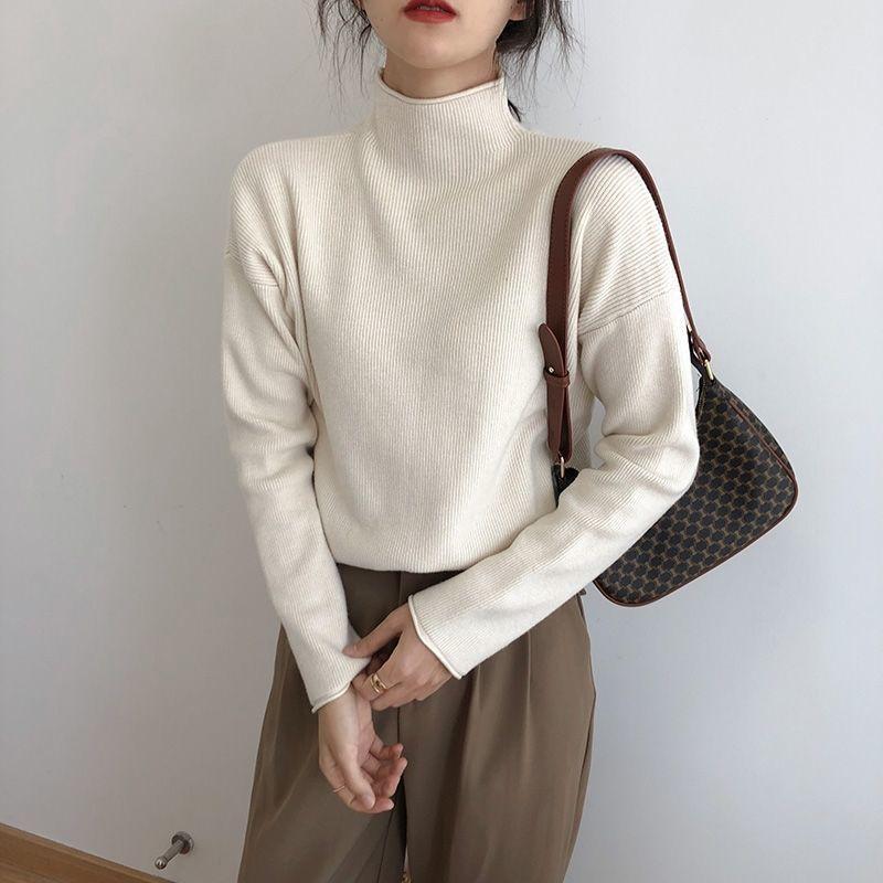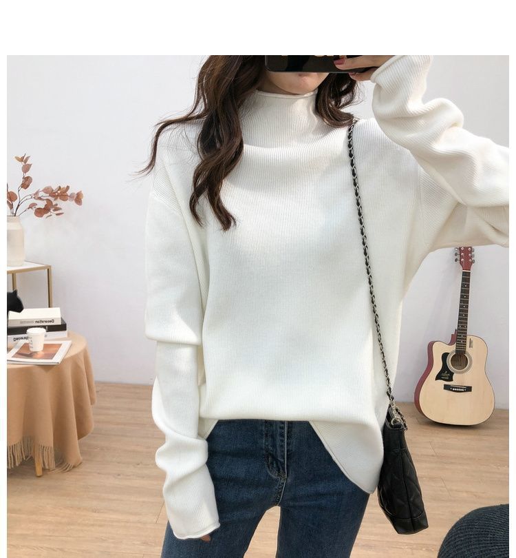 2024 Nuevos Tejidos de Punto para Otoño e Invierno para Mujer, Tejidos de Punto de Estilo Holgado y Relajado, Cuello Alto Medio, Tops Versátiles, Camisas de Fondo, Modernos
