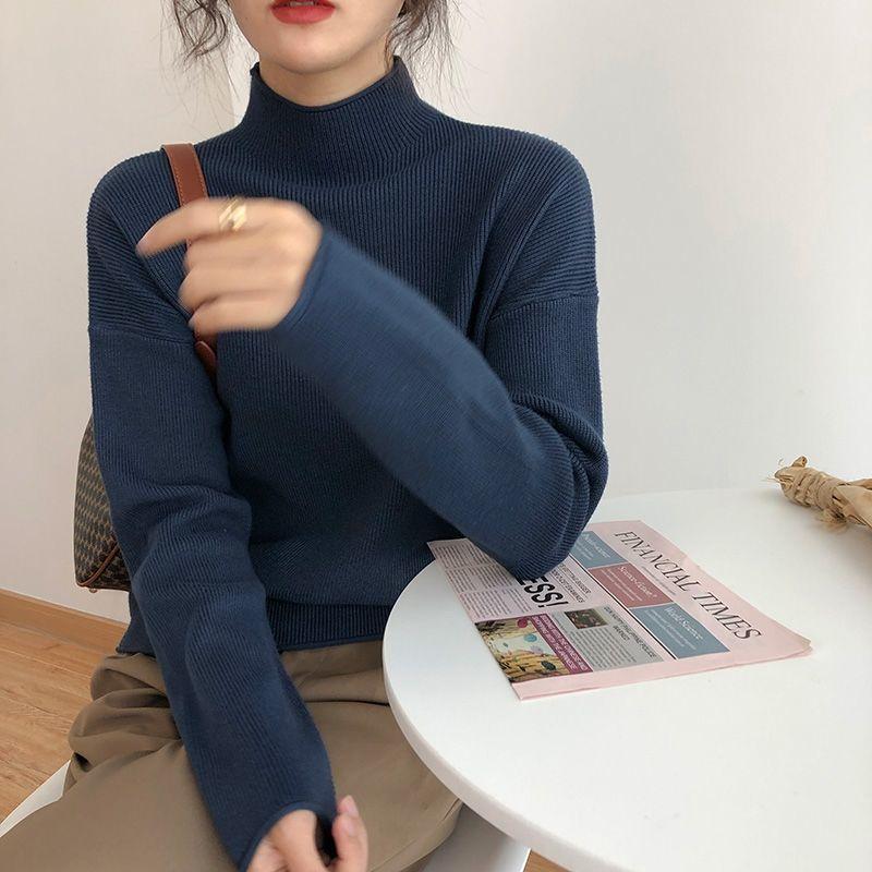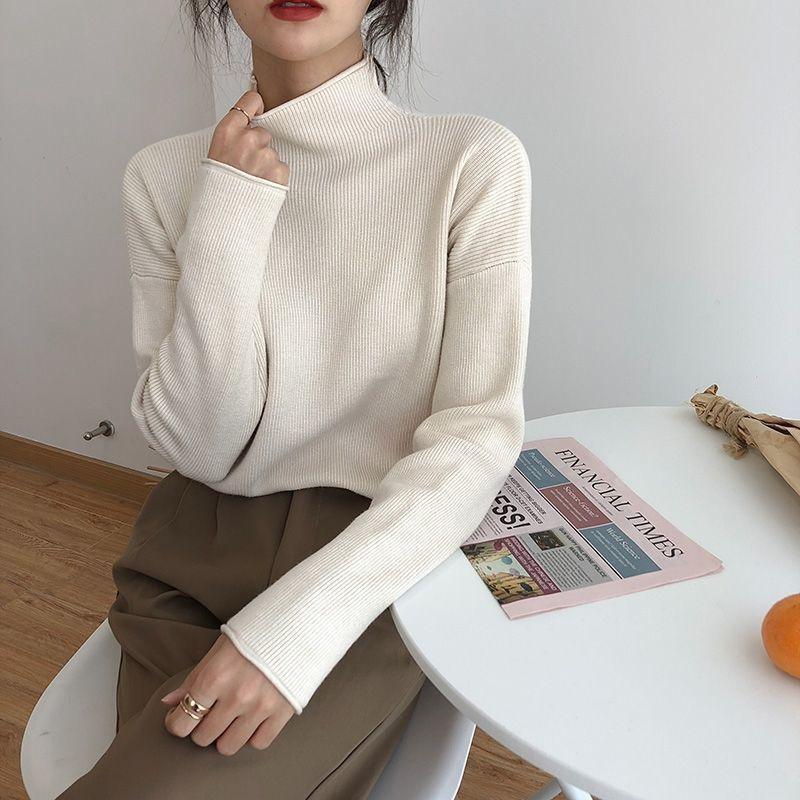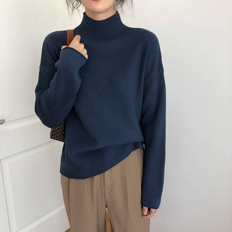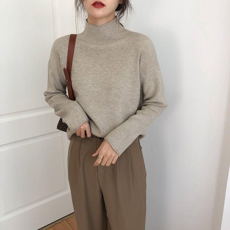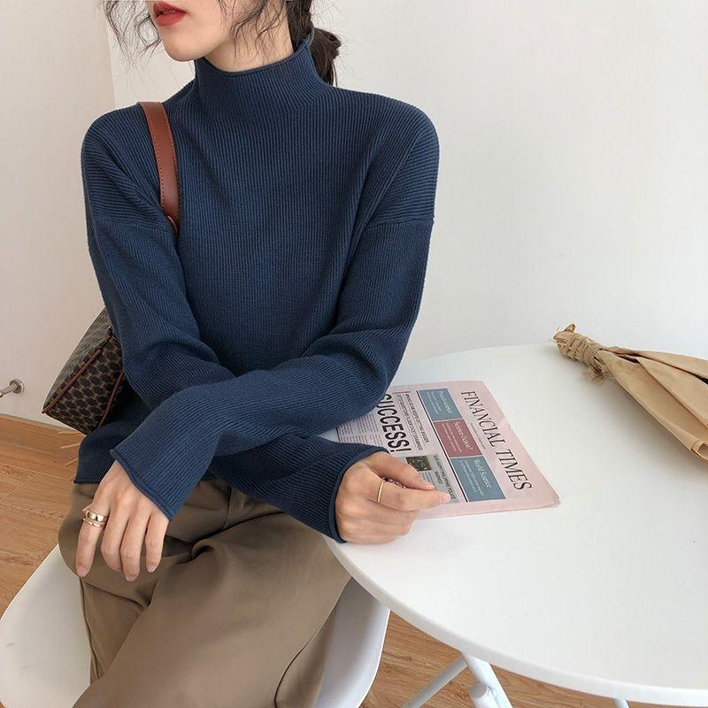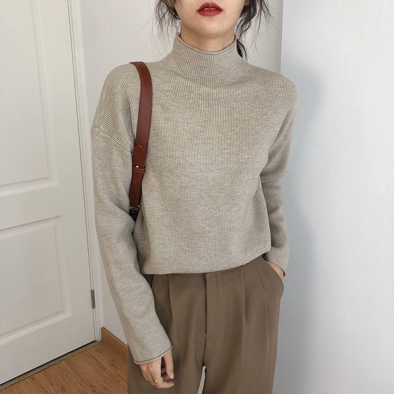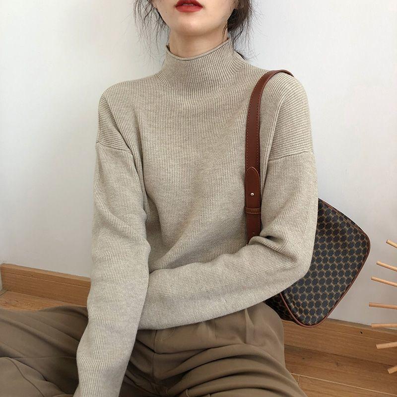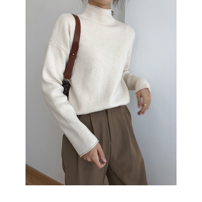 2024 Nuevos Tejidos de Punto para Otoño e Invierno para Mujer, Tejidos de Punto de Estilo Holgado y Relajado, Cuello Alto Medio, Tops Versátiles, Camisas de Fondo, Modernos