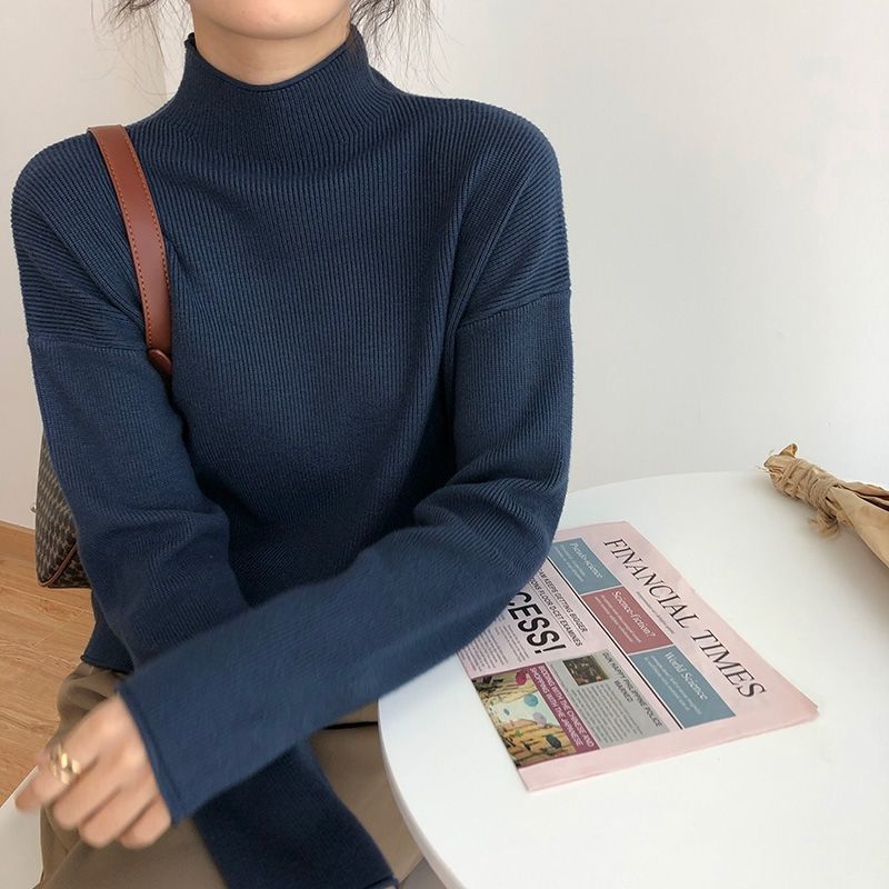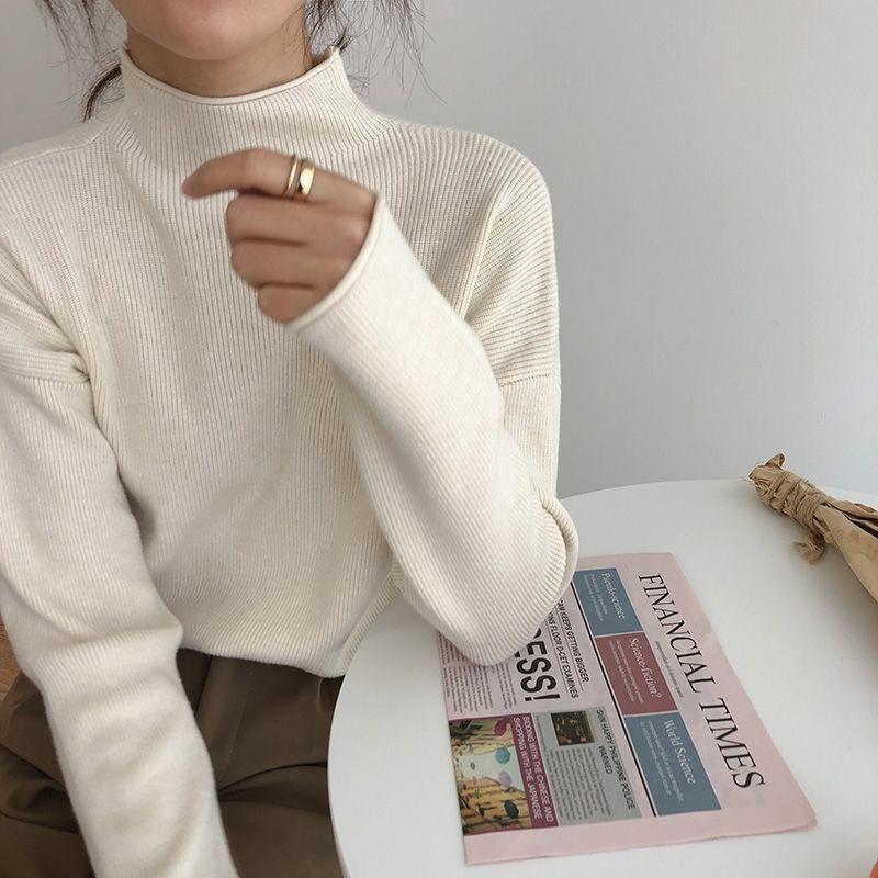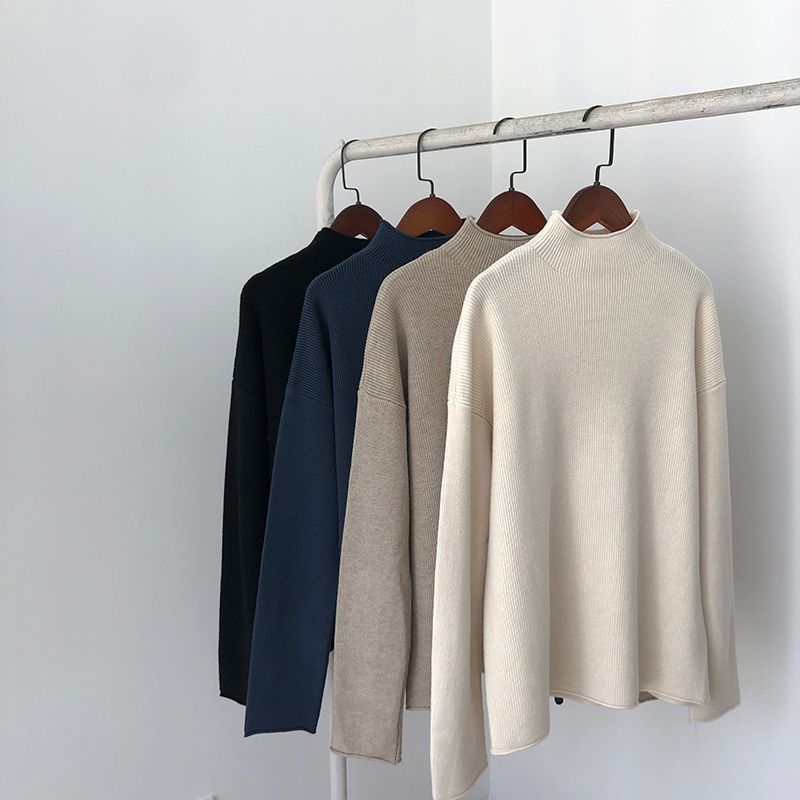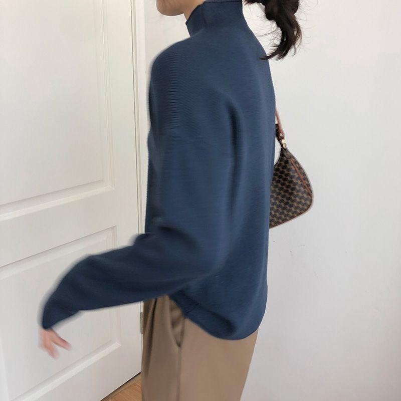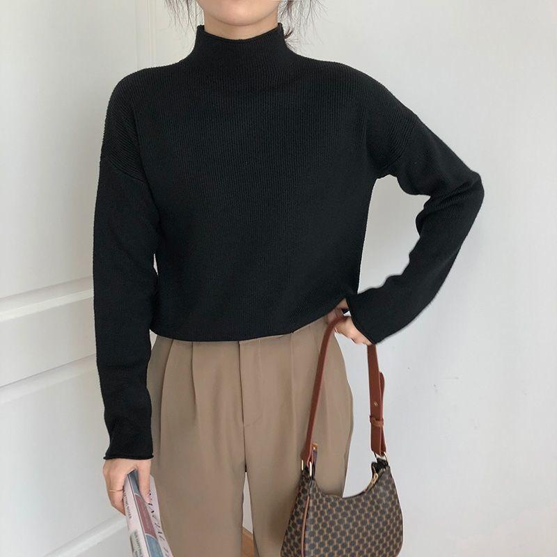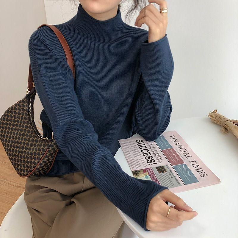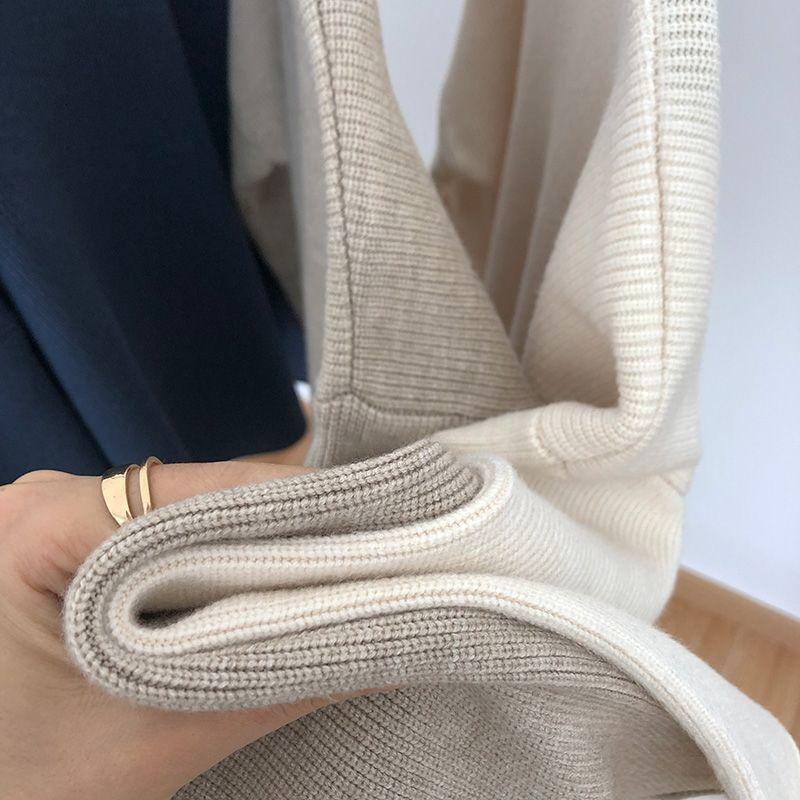 2024 Nuevos Tejidos de Punto para Otoño e Invierno para Mujer, Tejidos de Punto de Estilo Holgado y Relajado, Cuello Alto Medio, Tops Versátiles, Camisas de Fondo, Modernos