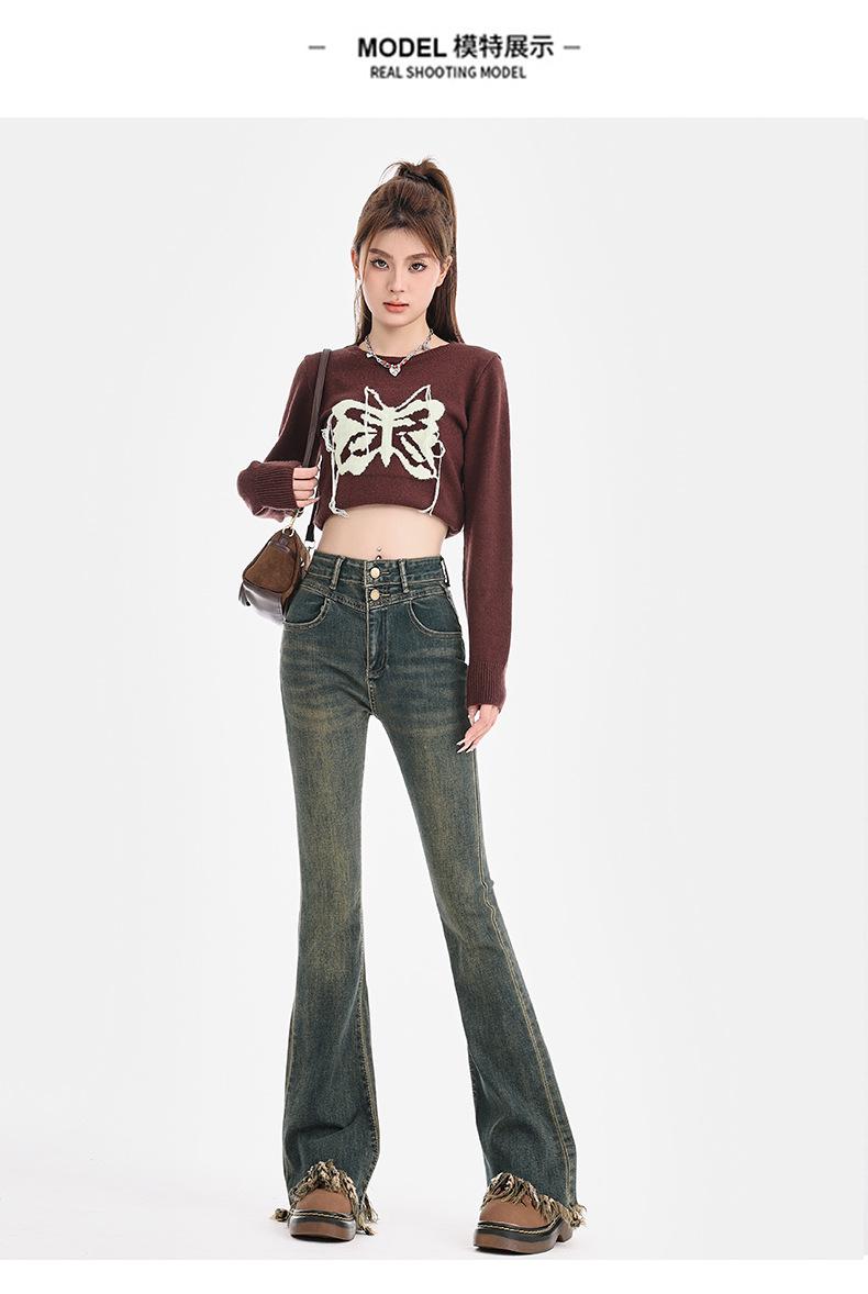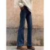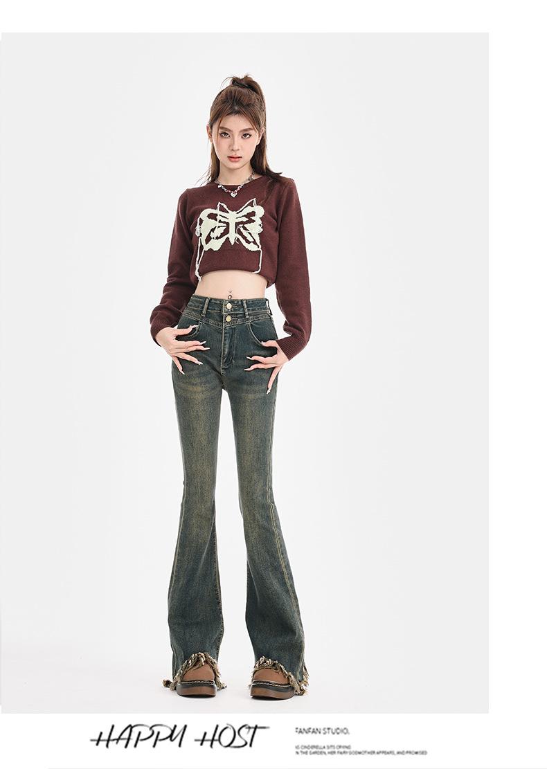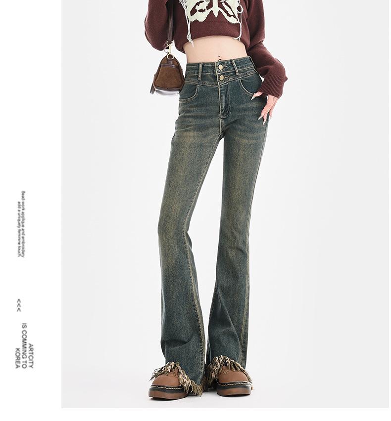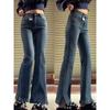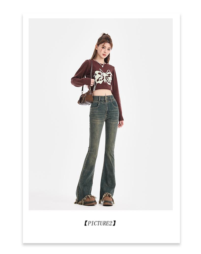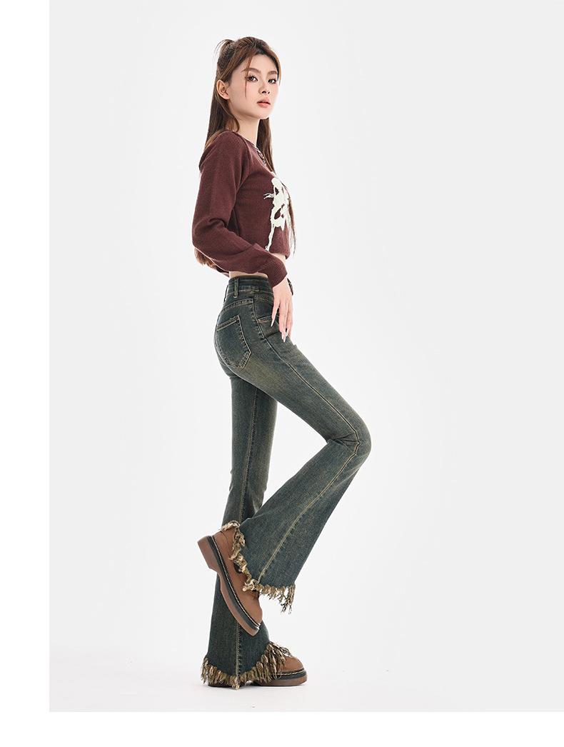 Jeans Americanos Retro de Orilla Cruda con Flecos Delgados Micro Acampanados para Mujer Primavera y Verano Nuevo Cintura Alta Slim Pantalones de Pezuña de Caballo