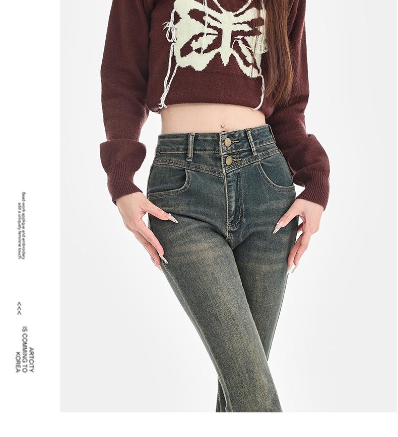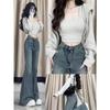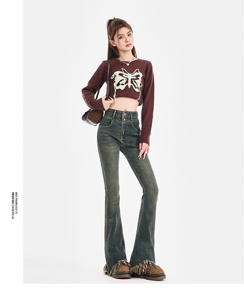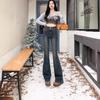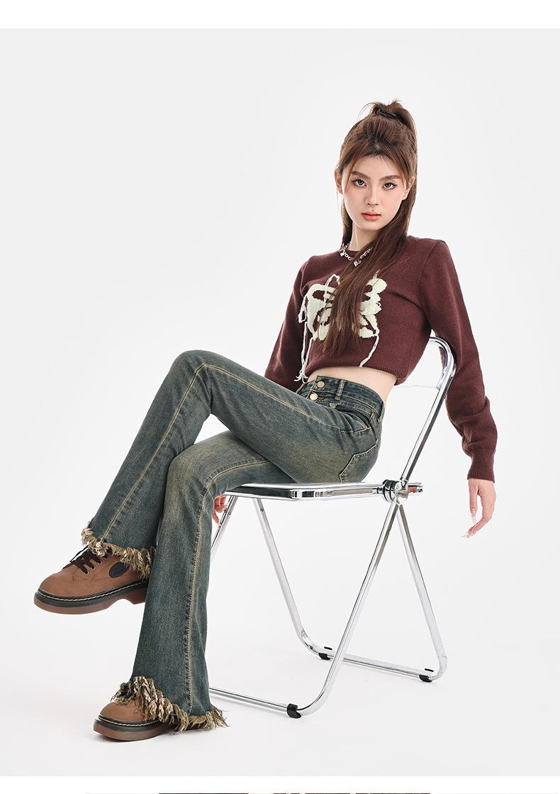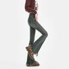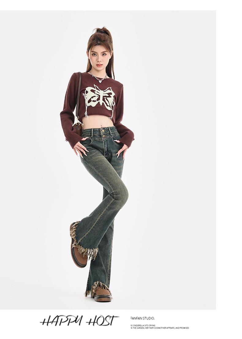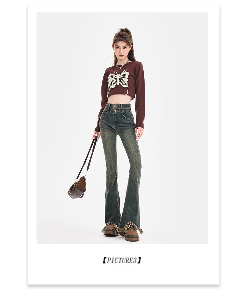 Jeans Americanos Retro de Orilla Cruda con Flecos Delgados Micro Acampanados para Mujer Primavera y Verano Nuevo Cintura Alta Slim Pantalones de Pezuña de Caballo